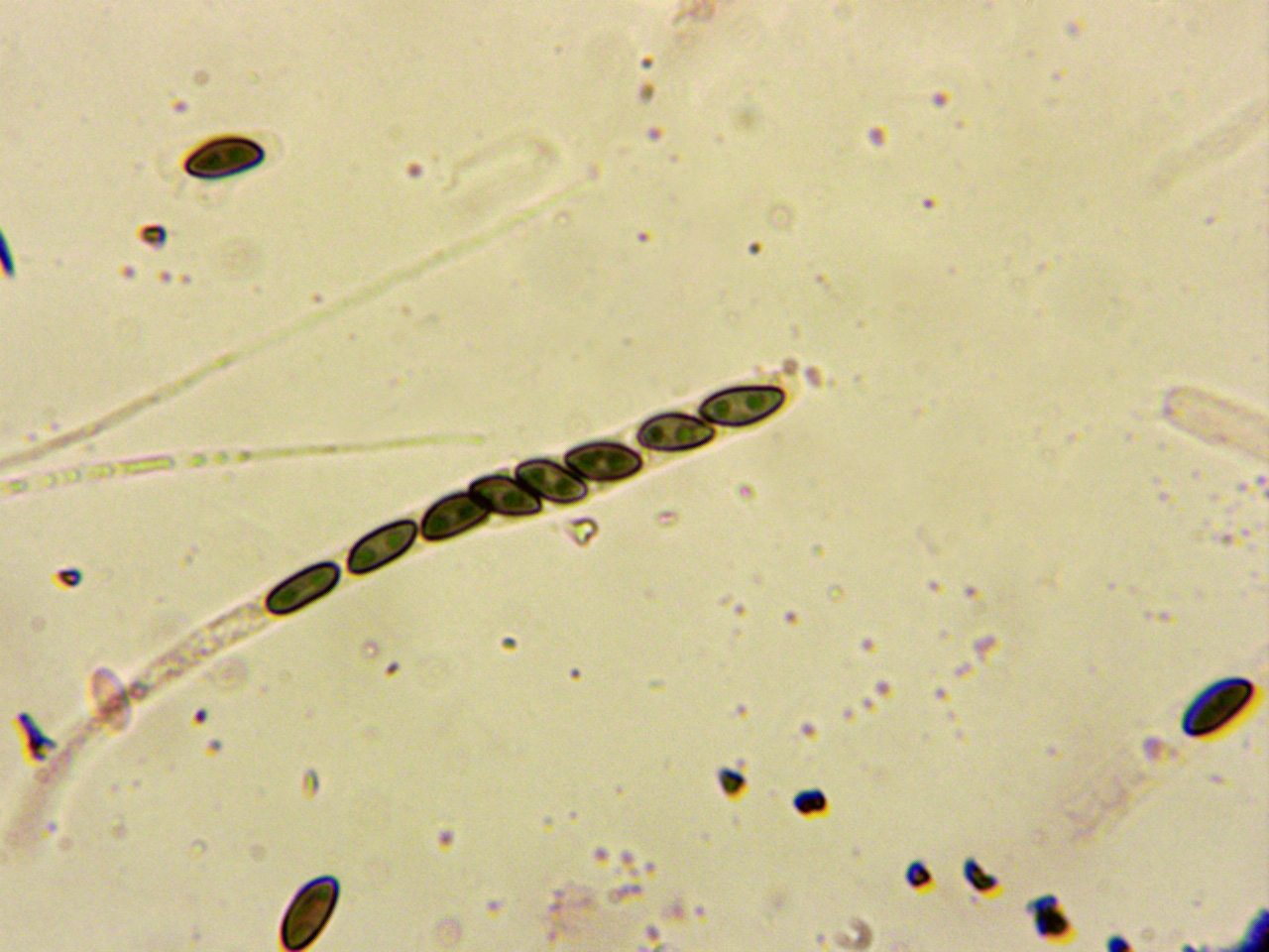 Himenio en Reactivo de Melzer a 400 aumentos: