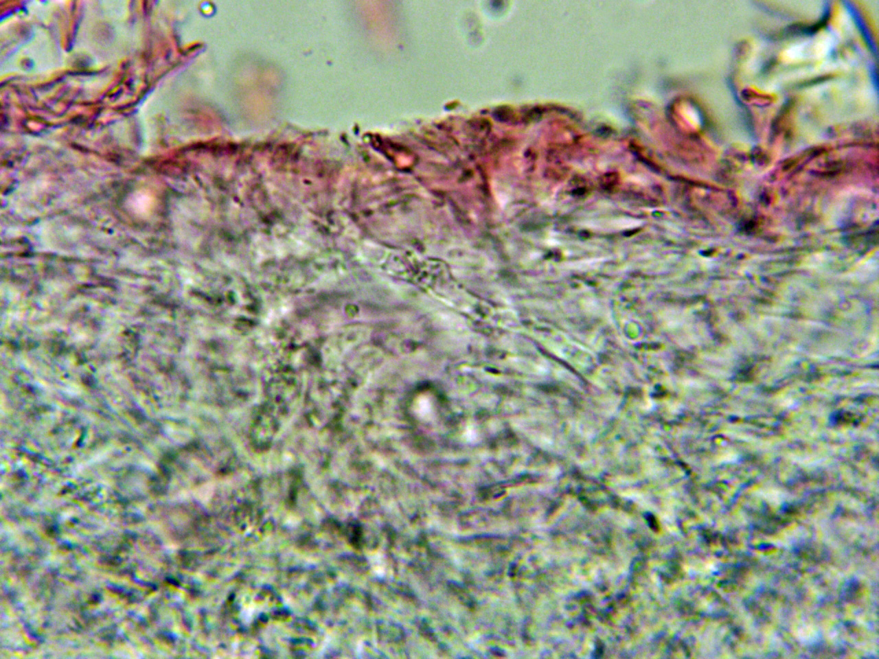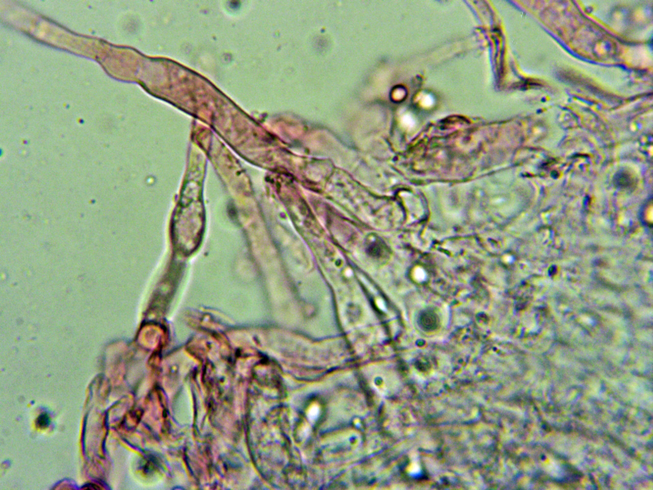 Pileipellis filamentosa con fíbulas.