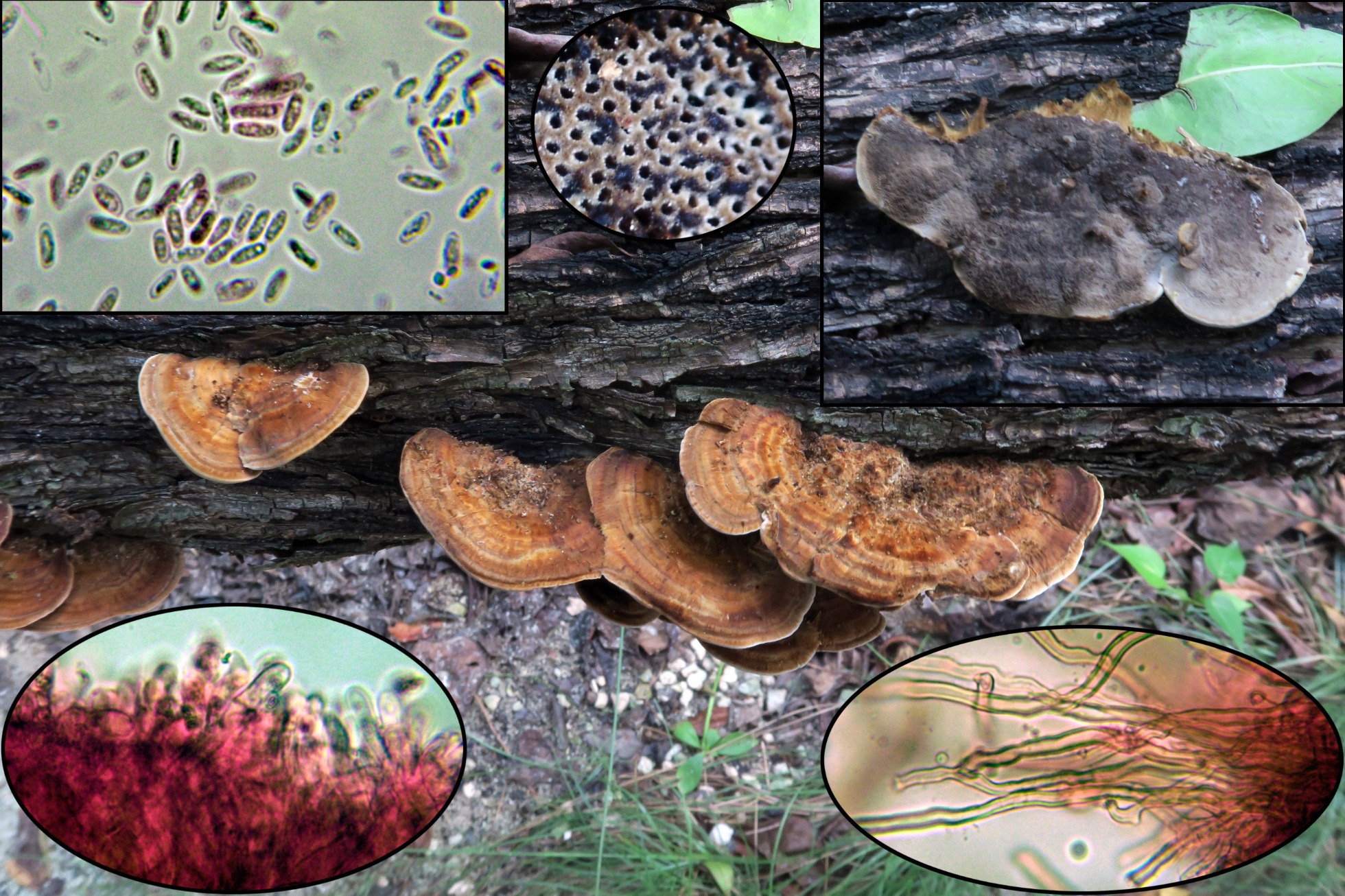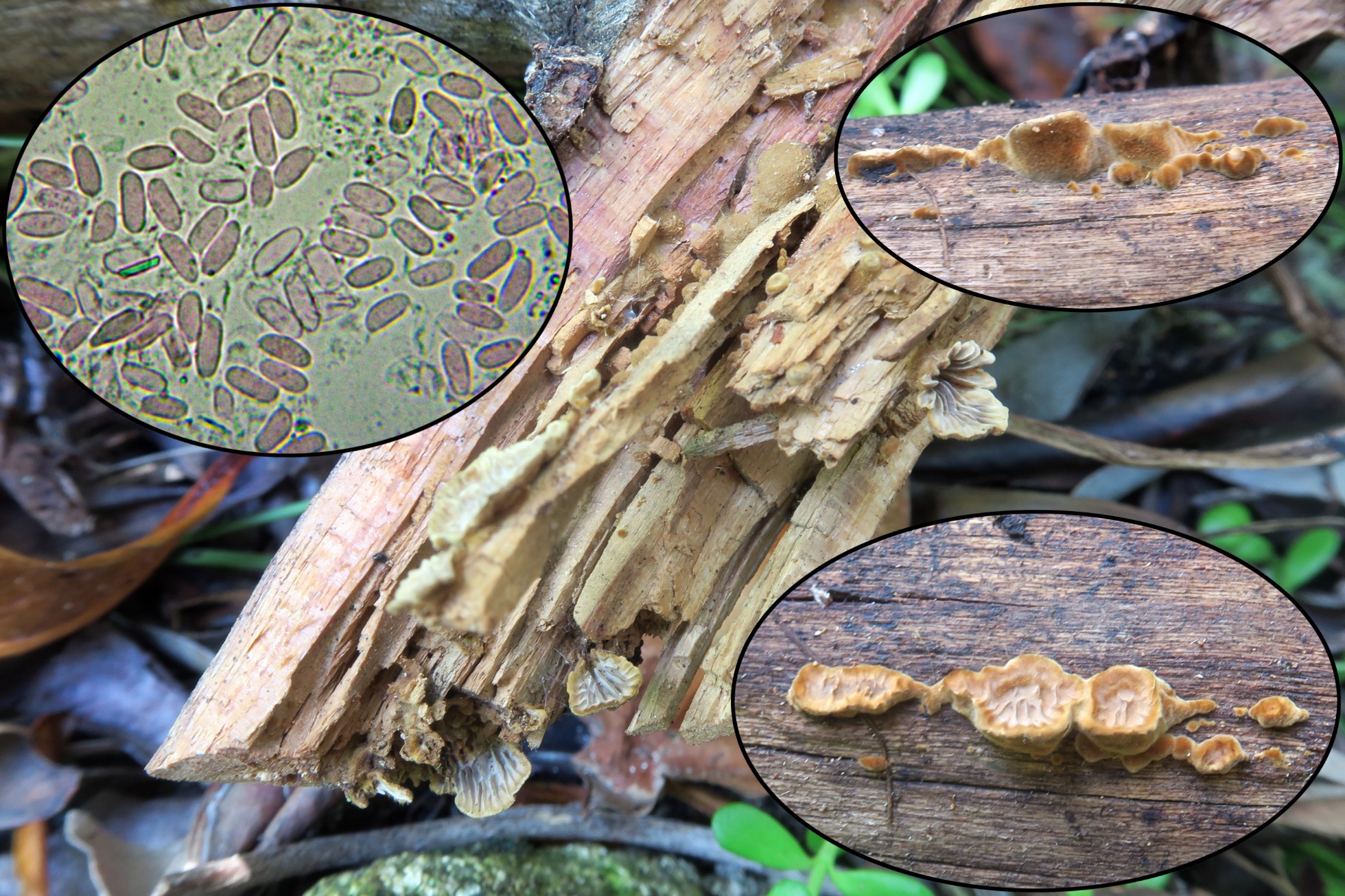 Aunque en sus primeras fases de desarrollo, los ejemplares ya estaban esporulando de manera abundante, el Gloeophyllum striatum.