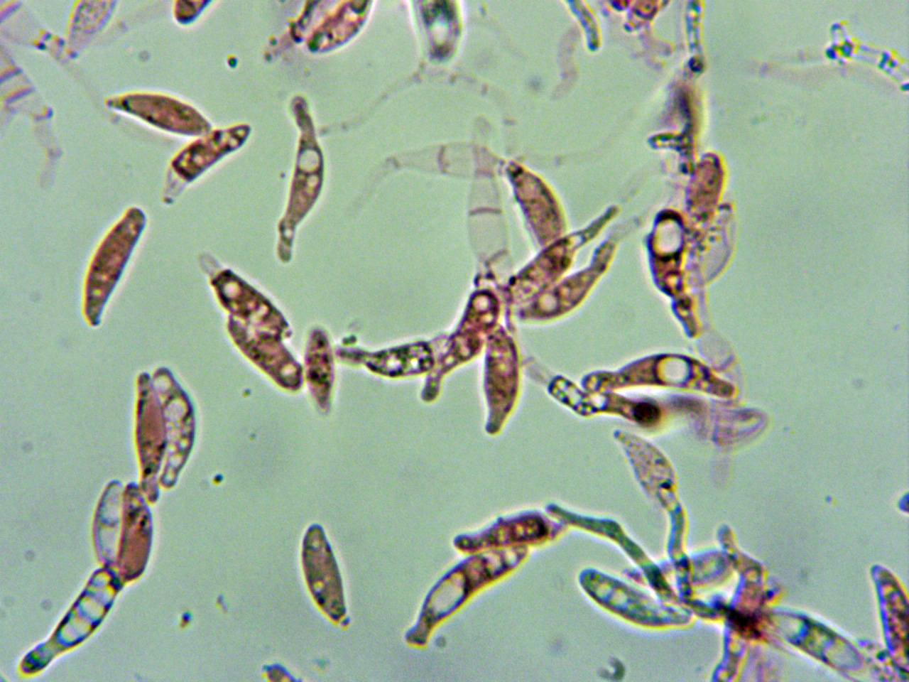 Este estudio con unas medidas de sus esporas en agua de: