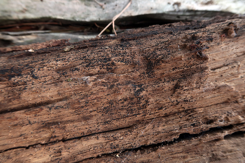 Un Piremomyceto recogido este pasado domingo brotando de manara masiva sobre la superficie de un tronco cerca de un riachuelo y al lado de un bosque de pinos.