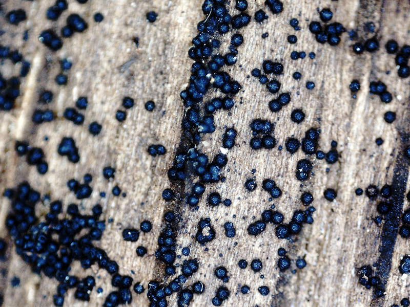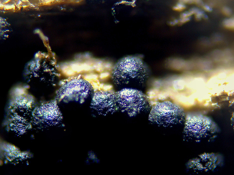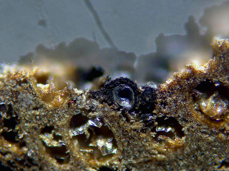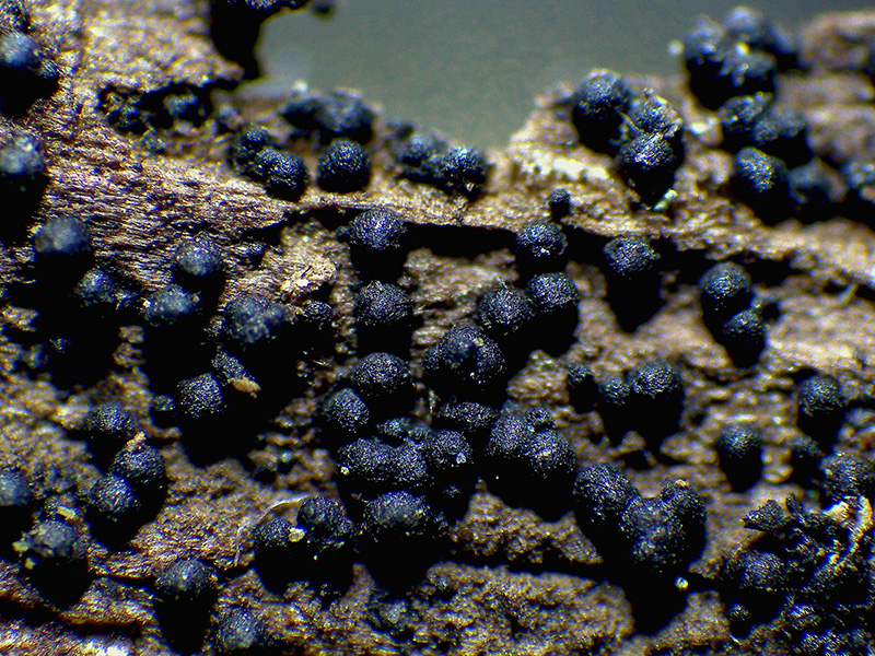 Peritecios negros, globosos, de pared gruesa, con superficie delicadamente verrucosa y una discreta protuberancia en su parte superior. De pequeño tamaño, con un diámetro de entre 0,15 a 0,27 mm.