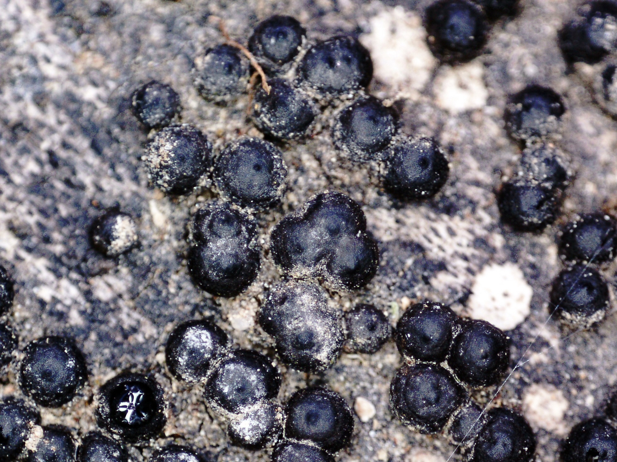 Estromas con peritecios dispersos aislados o en grupos fusionados de entre 2 o 3 peritecios.