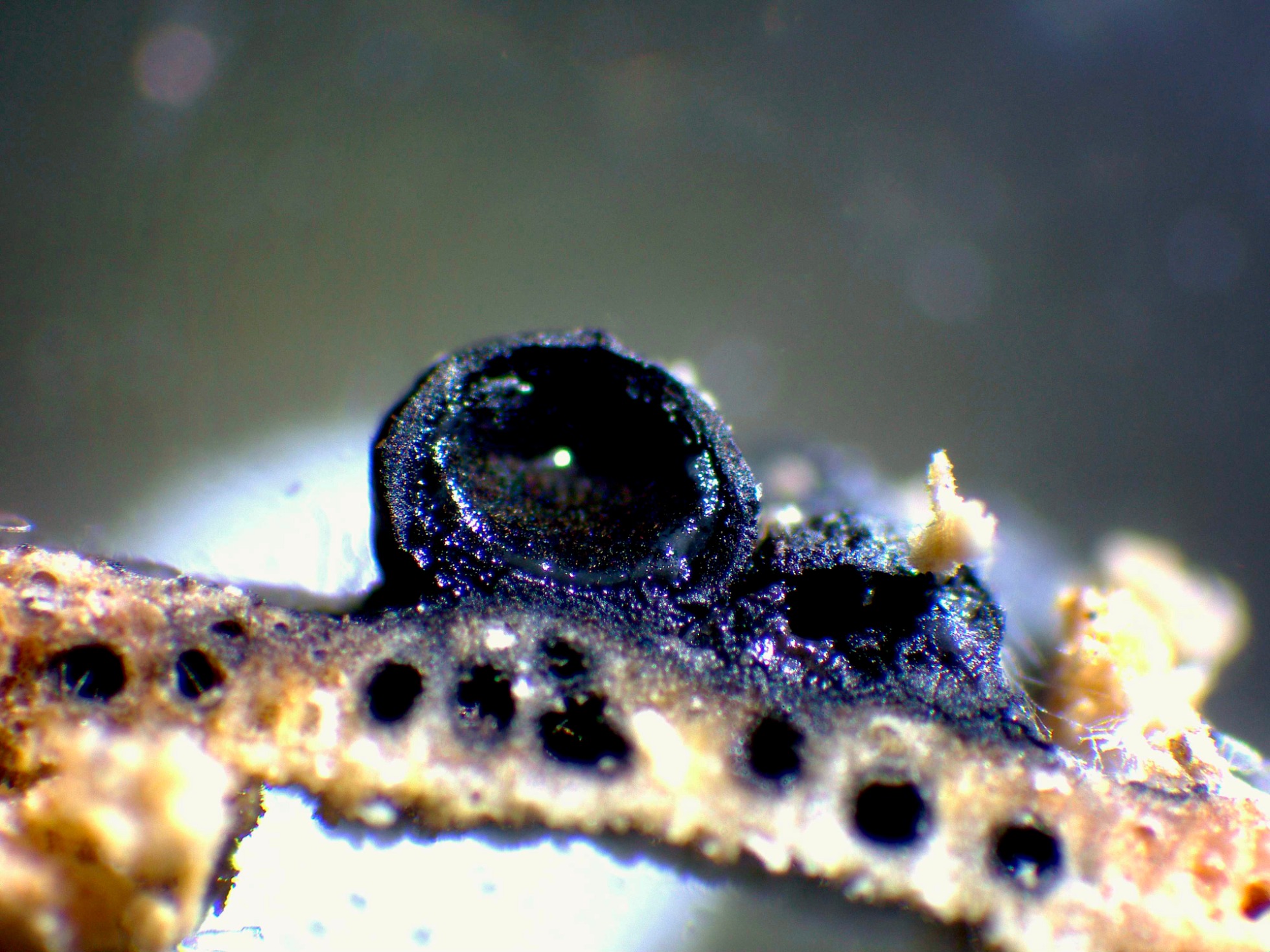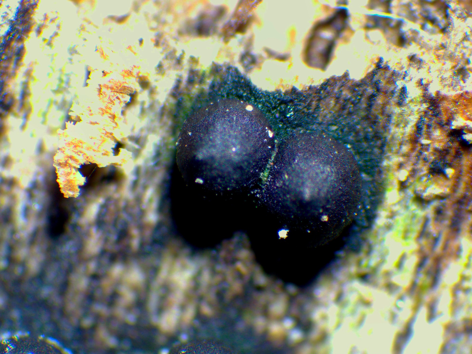 Un estroma con par de peritecios a 40 aumentos, con un diámetro de entre 0,67 y 0,88 mm.