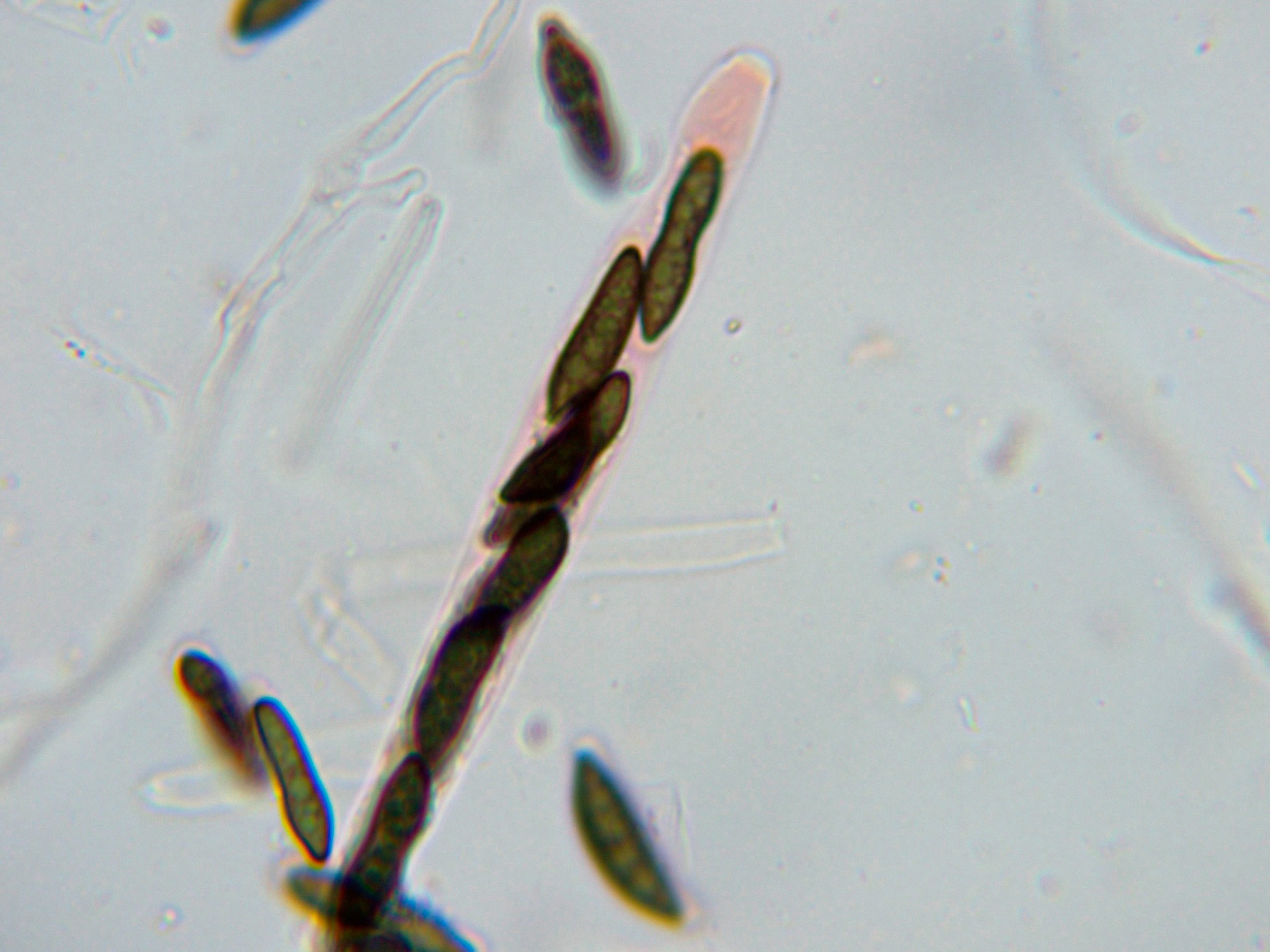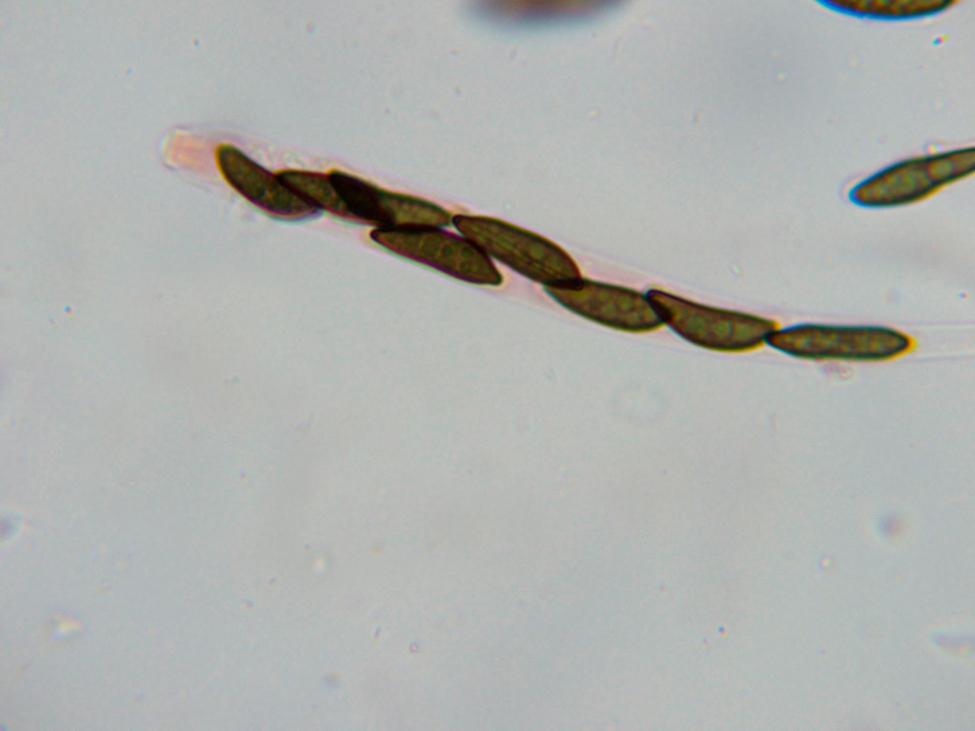 A destacar en sus ascosporas una vaina mucosa en ambos extremos y que además se extiende por el lado más aplanado:
