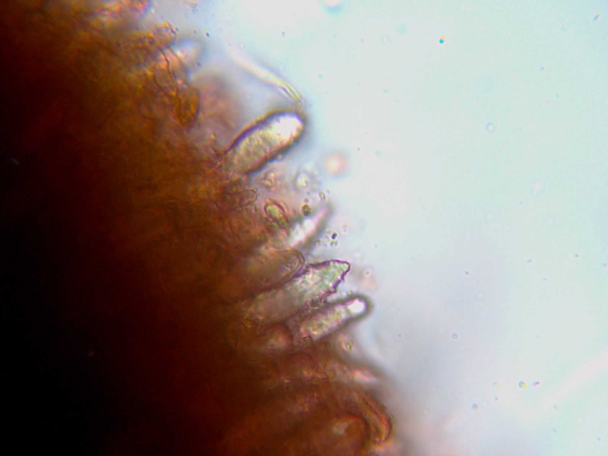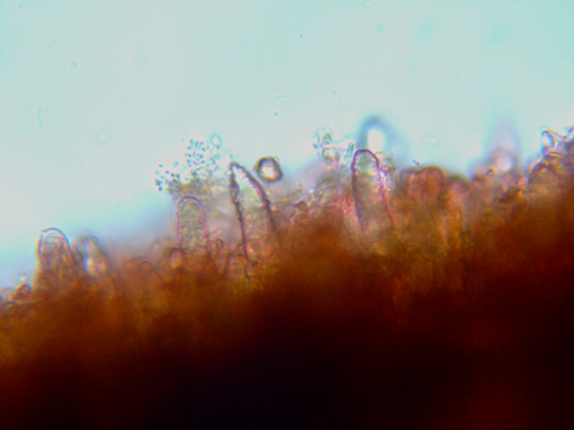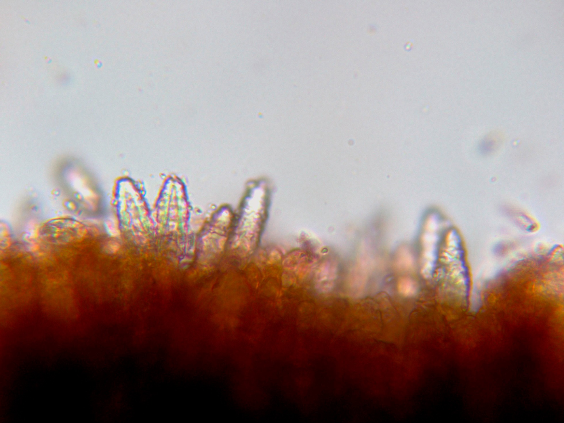 Lamprocistidios muy numerosos, entre cilíndricos y cónicos.
