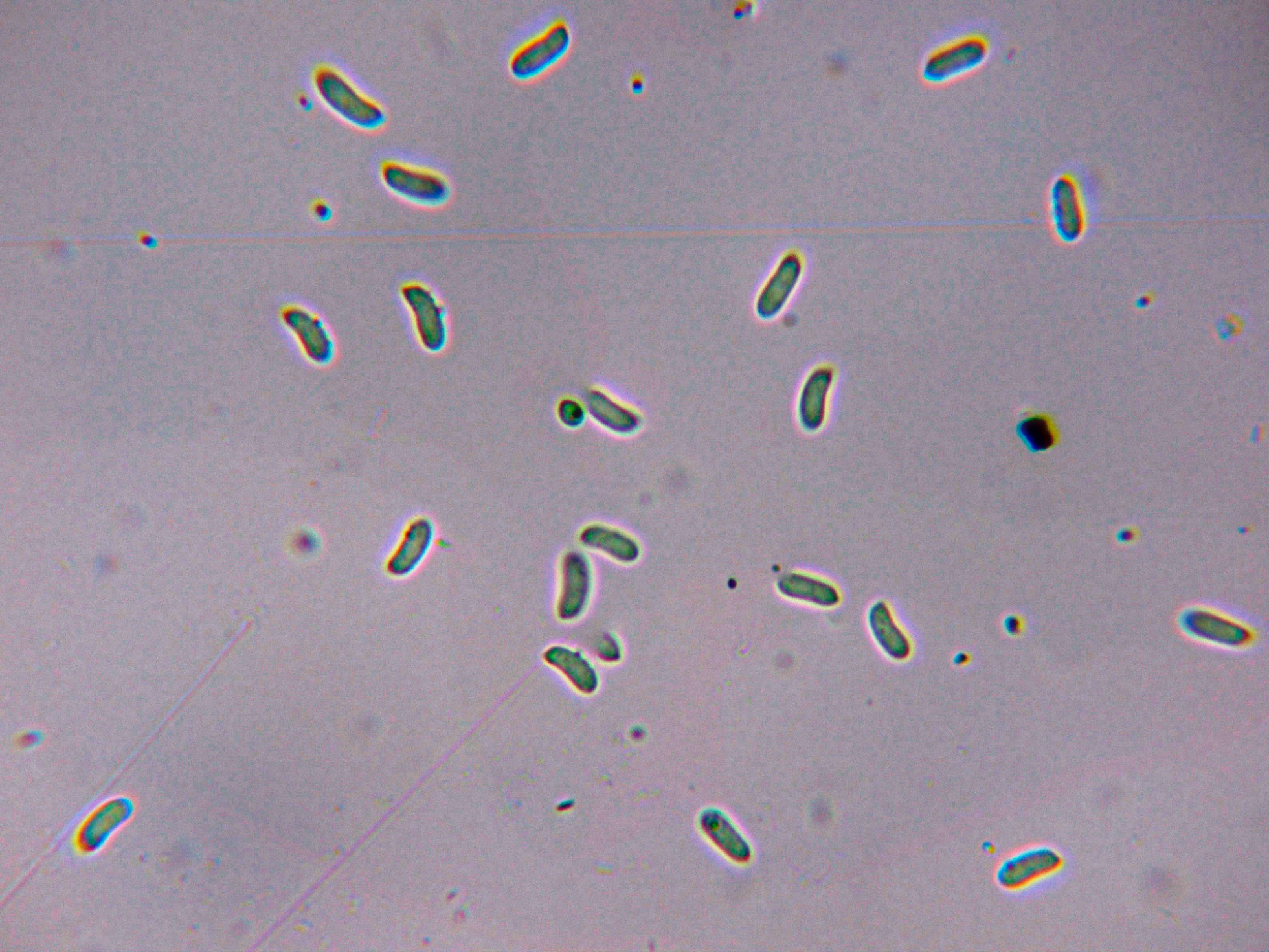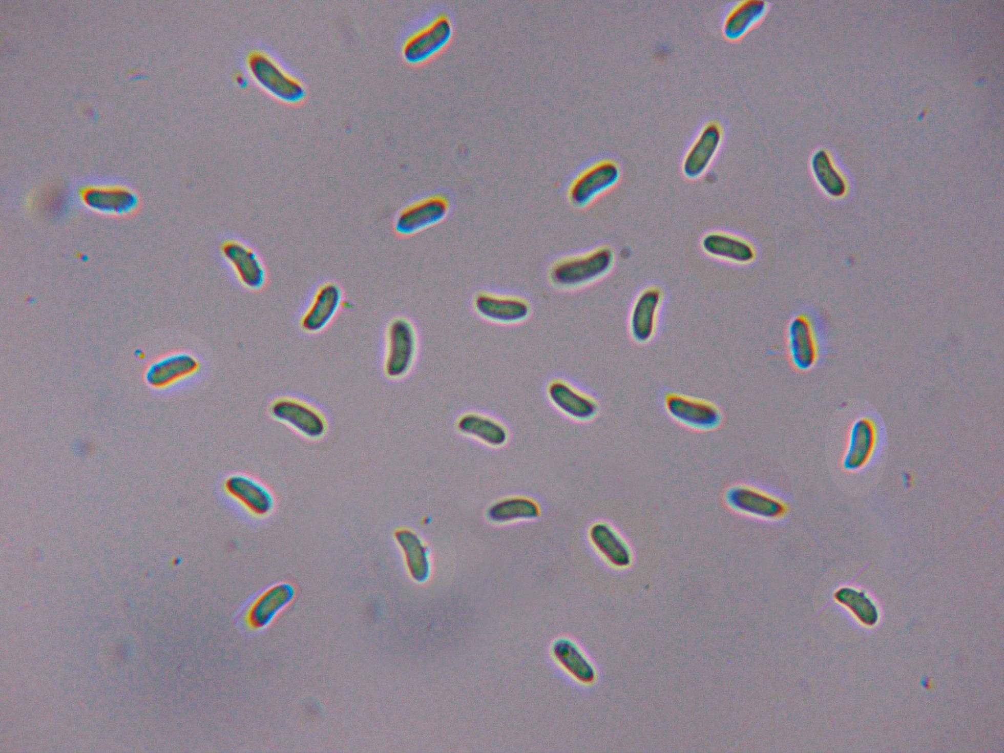 Esporas lisas, hialinas, entre cilíndricas y elipsoides, algunas ligeramente alantoides: