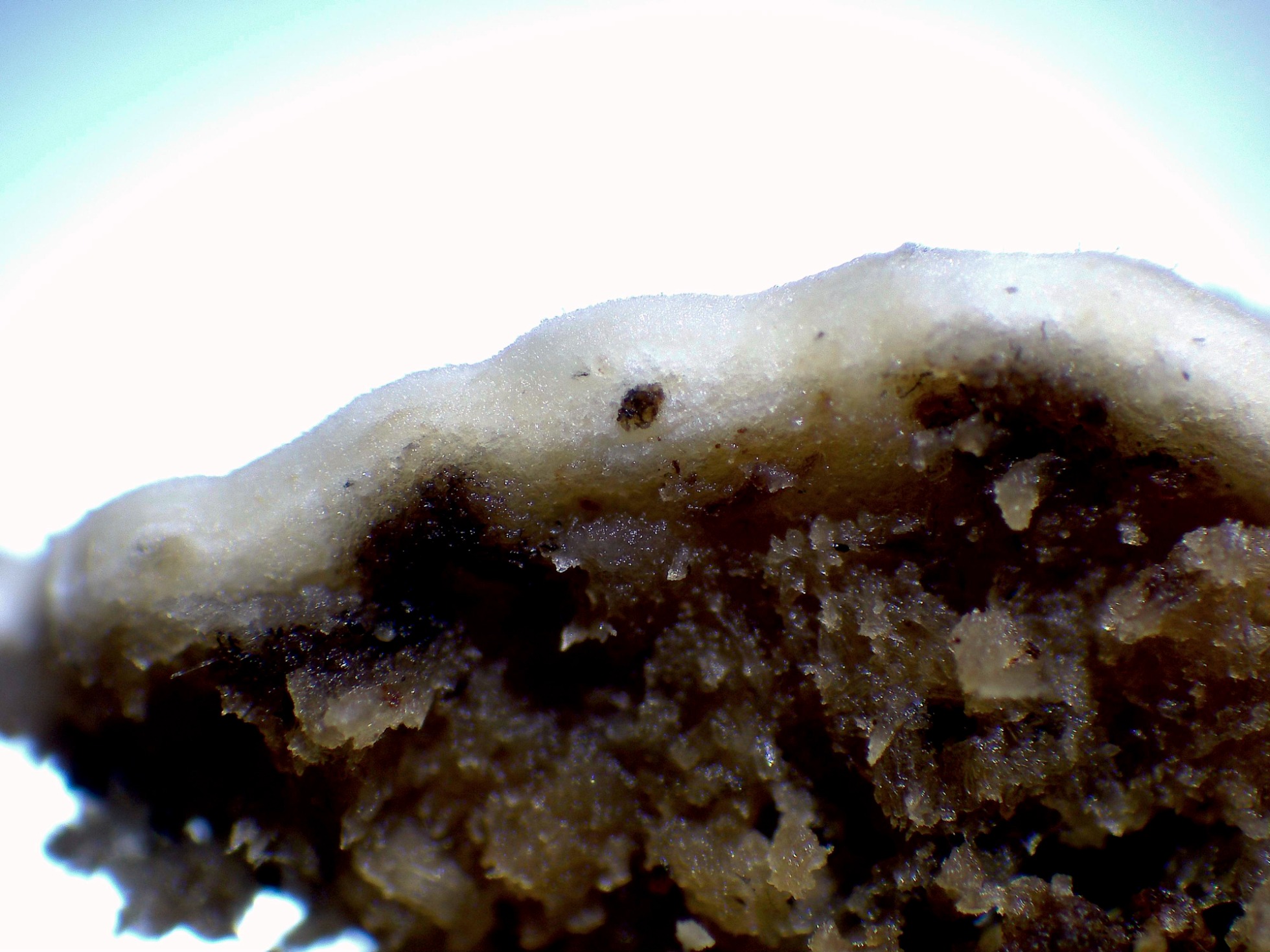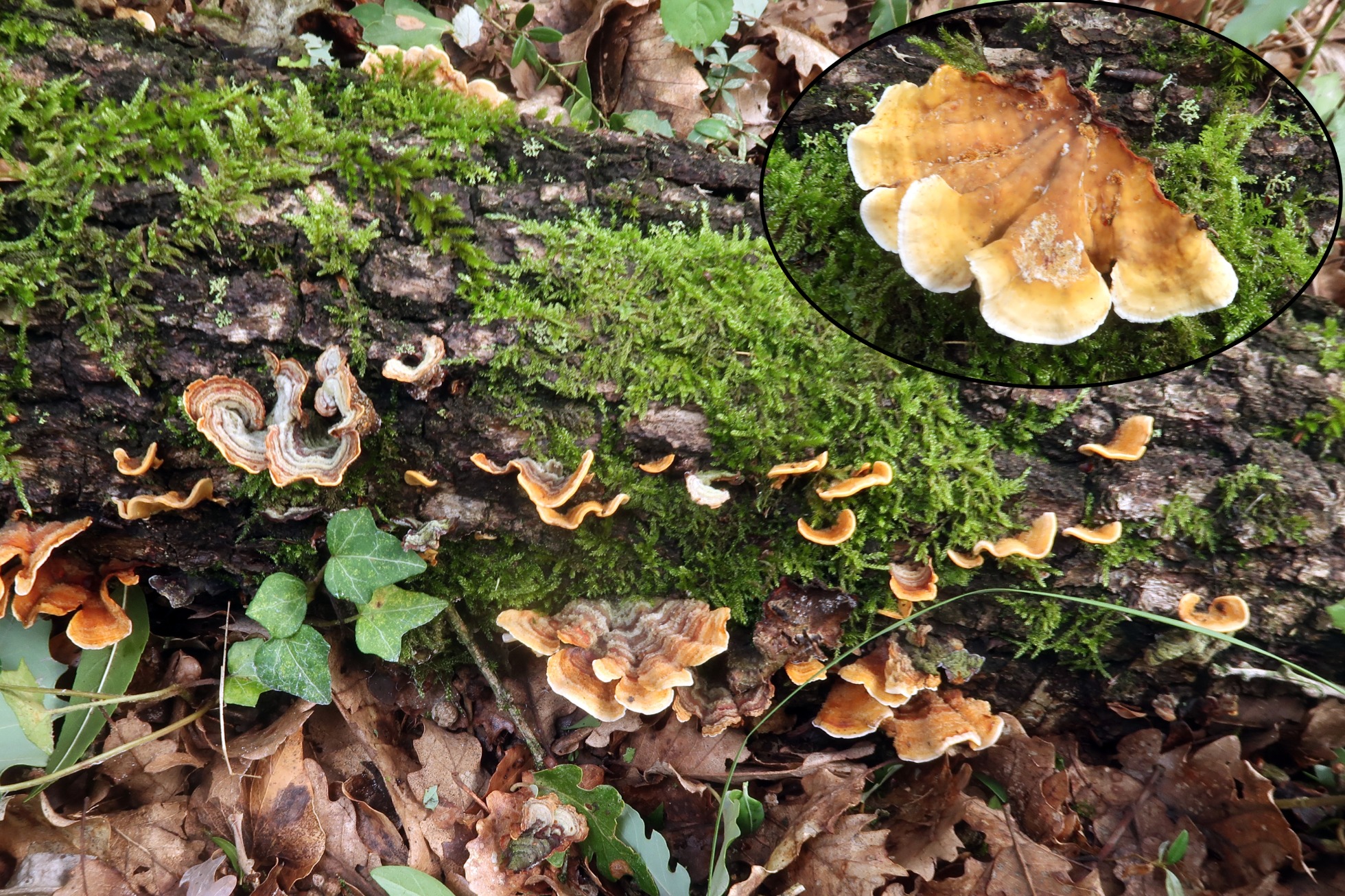 Y ya para terminar un Stereum del que no me llevé ni muestra, con superficie pulverulenta, no hirsuta, probablemente Stereum insignitum.