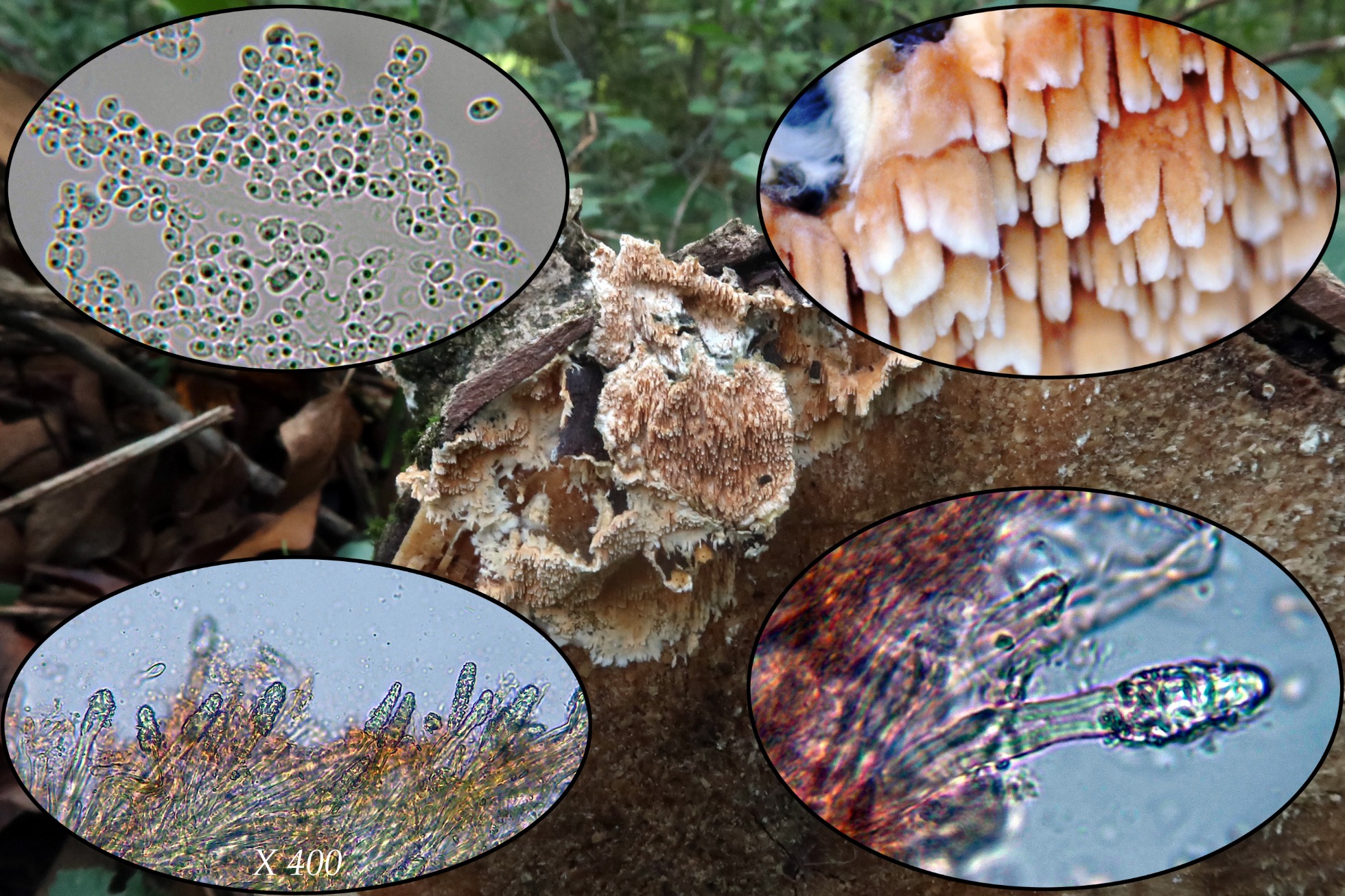 El tamaño considerable de sus aguijones me despistó, aunque la micro no parece dejar lugar a dudas, el Steccherinum ochraceum.