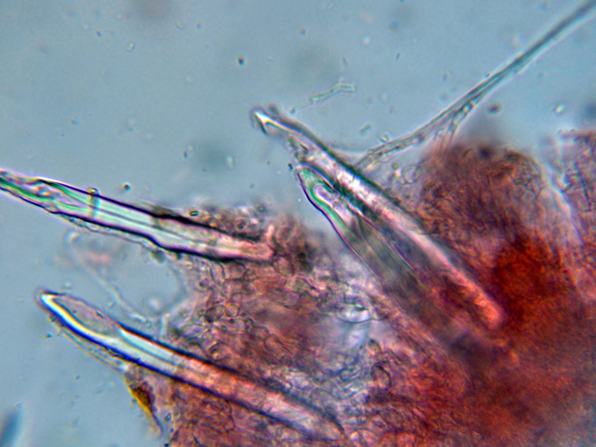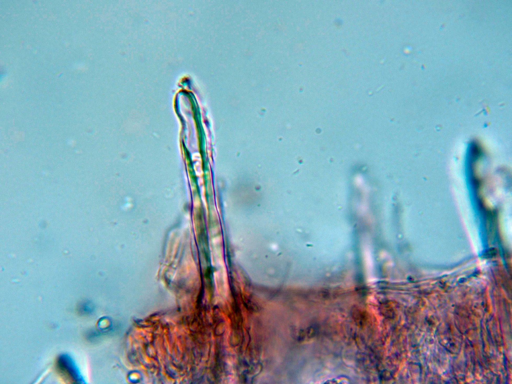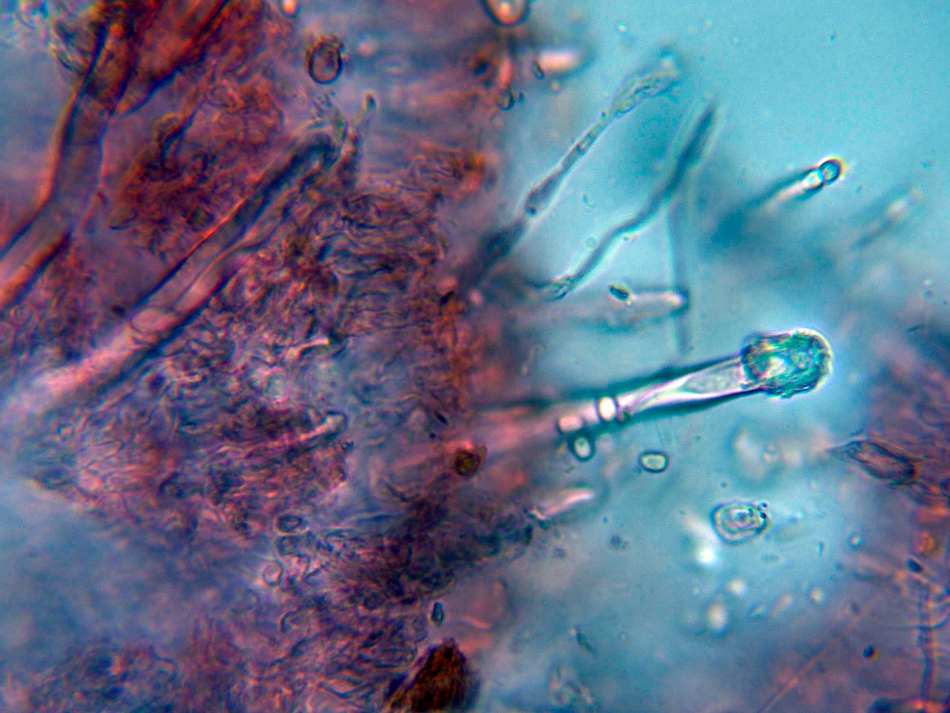 Algunos de estos cistidios con el ápice incrustado de una sustancia amorfa: