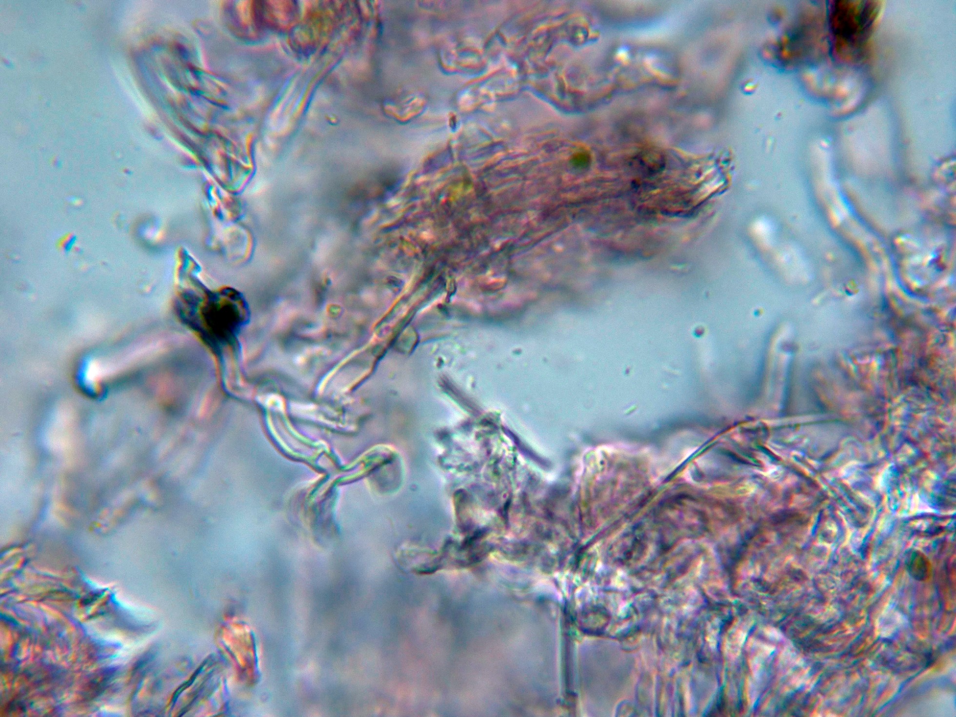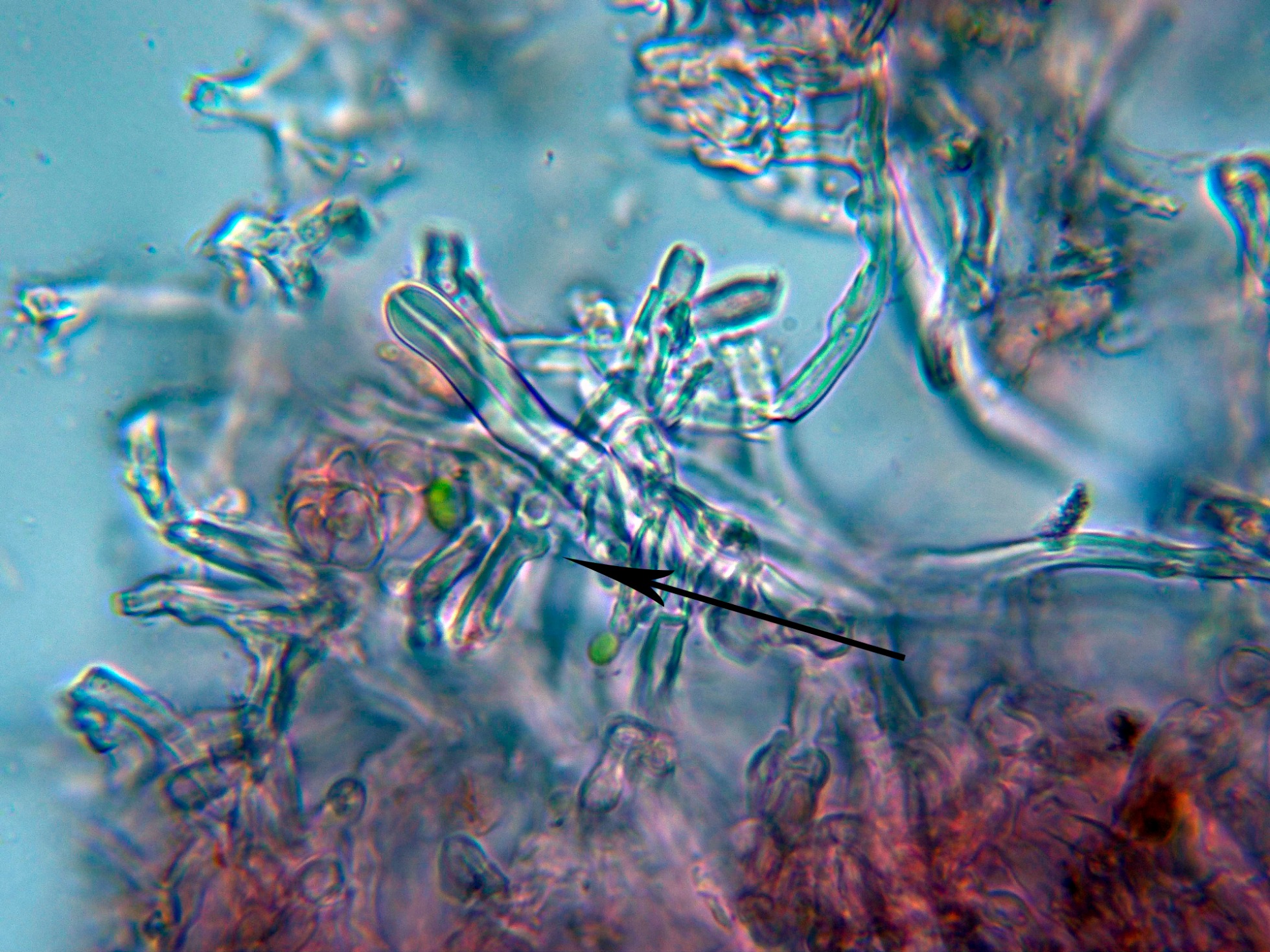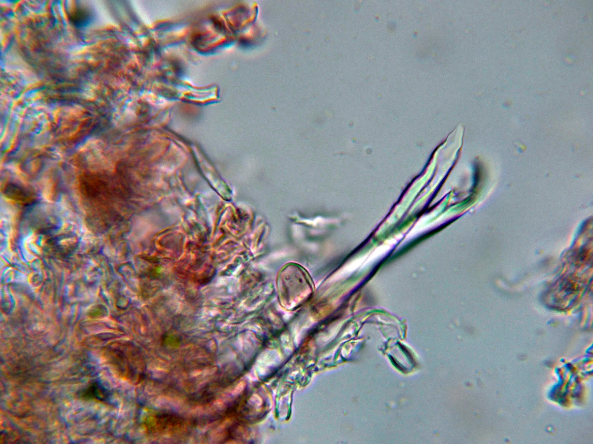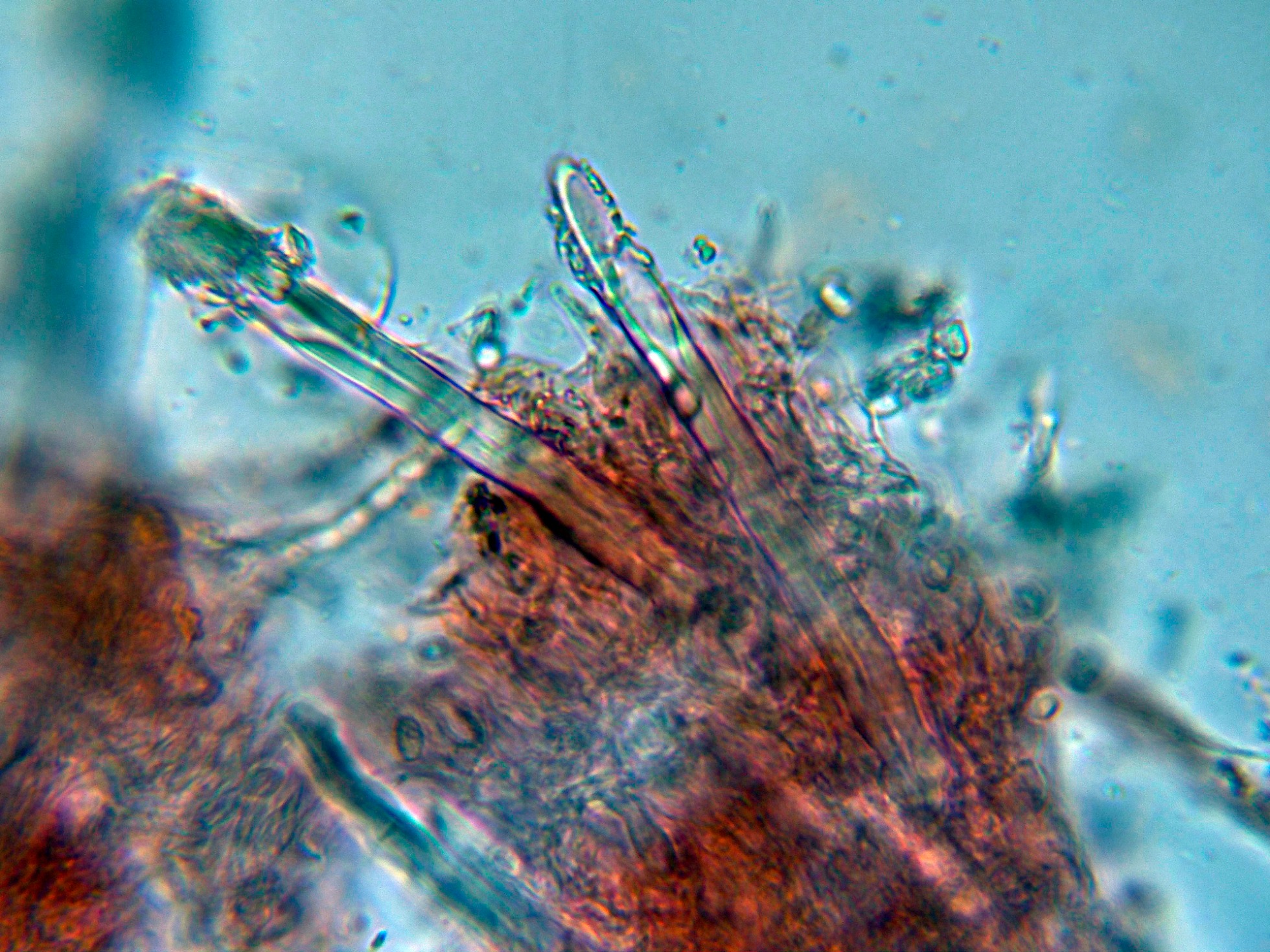 Algunos de estos cistidios con el ápice incrustado de una sustancia amorfa: