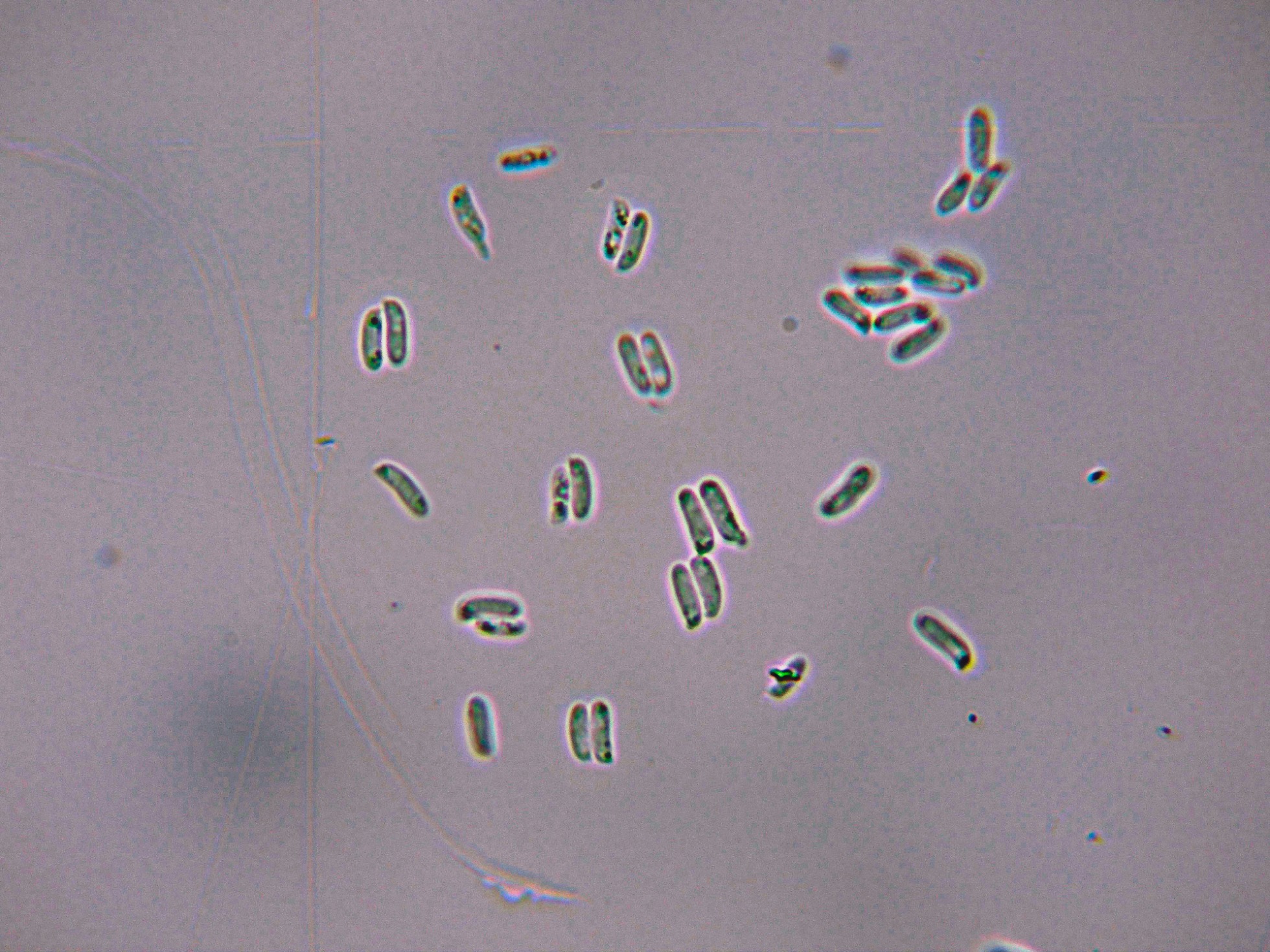 Observaciones: Resultados contrastados con la opinión de "Les Champignons de Suisse" que atribuyen a la Tubulicrinis subulatus unas medidas esporales de 6-7,5 x 1,5-2,5 µm., totalmente acordes con mis mediciones.