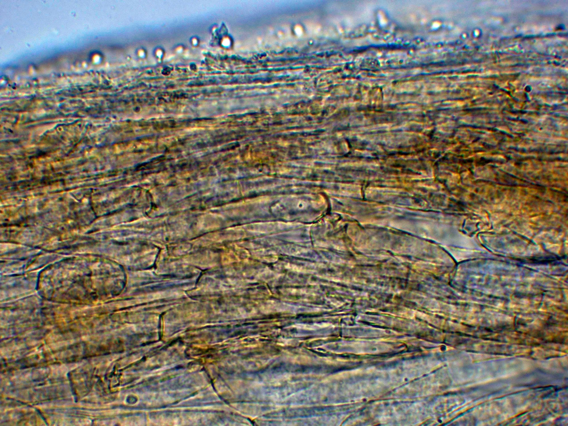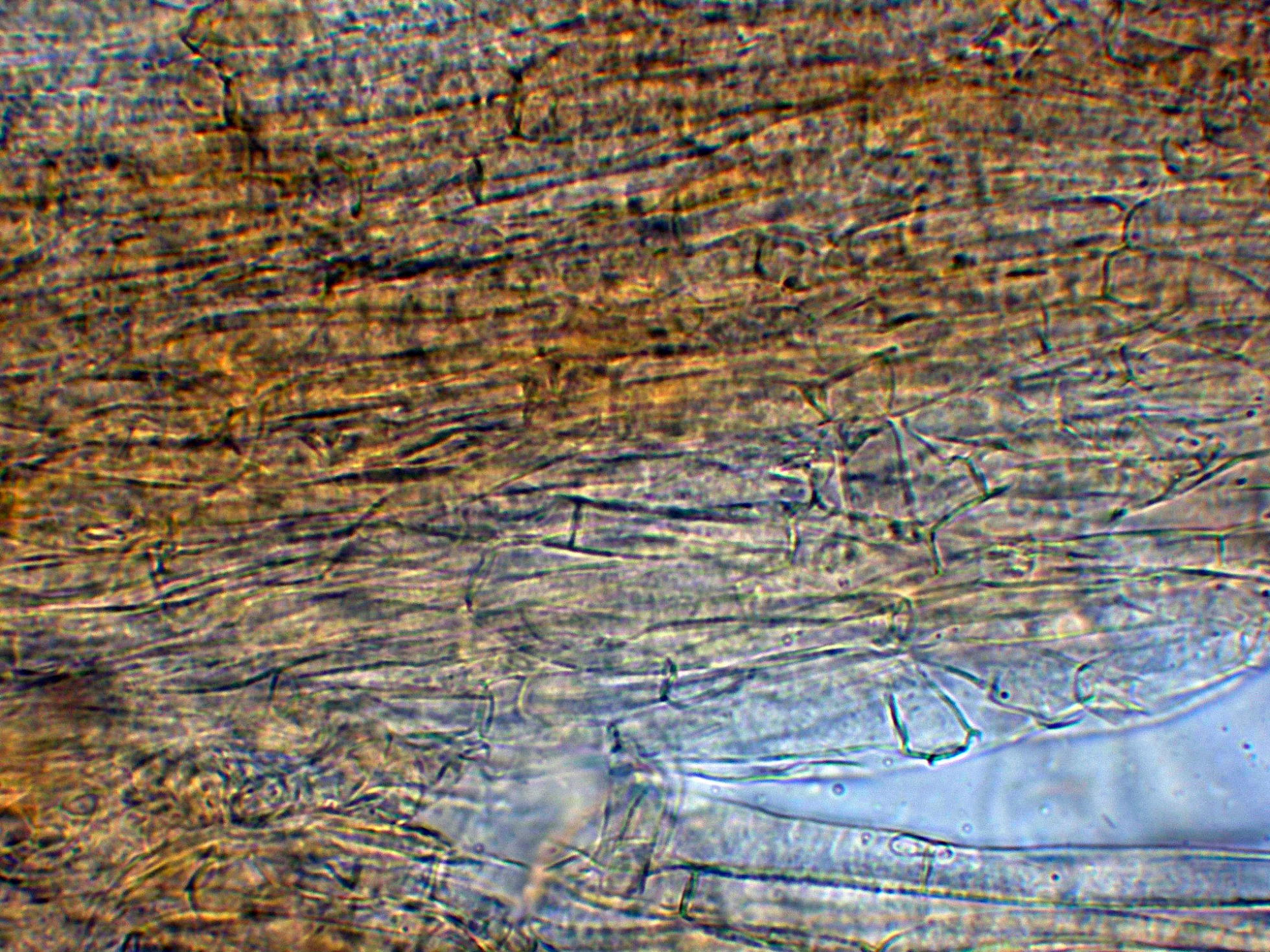 Suprapellis formada por hifas filamentosas con pigmento ocráceo: