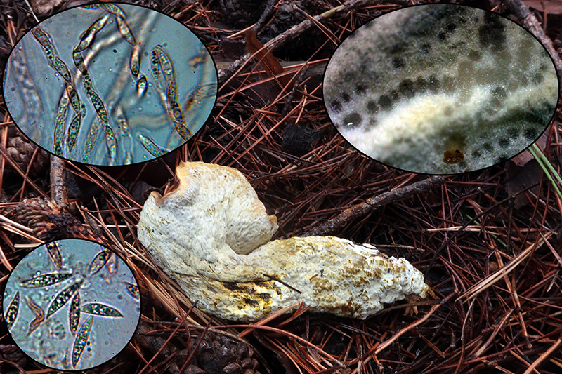 Sobre el himenio de una Fomitopsis pinicola, un Hypocreal que solo es la segunda vez que me lo encuentro, la Hypocrea pulvinata.