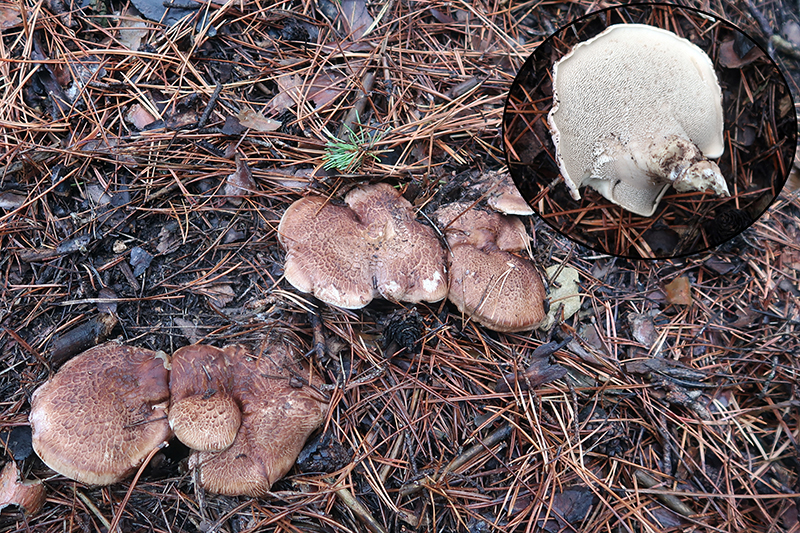 Muy abundante y bajo Pinus pinaster, el que antaño teníamos como Sarcodon imbricatus, y que parece ser que le debemos llamar como Sarcodon squamosus.
