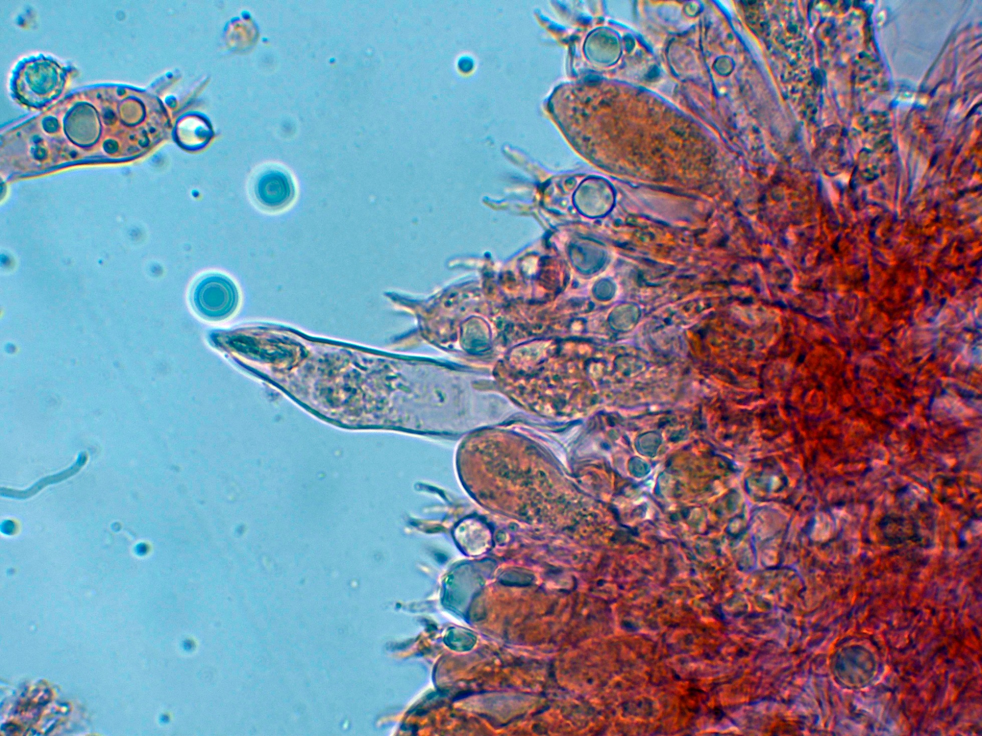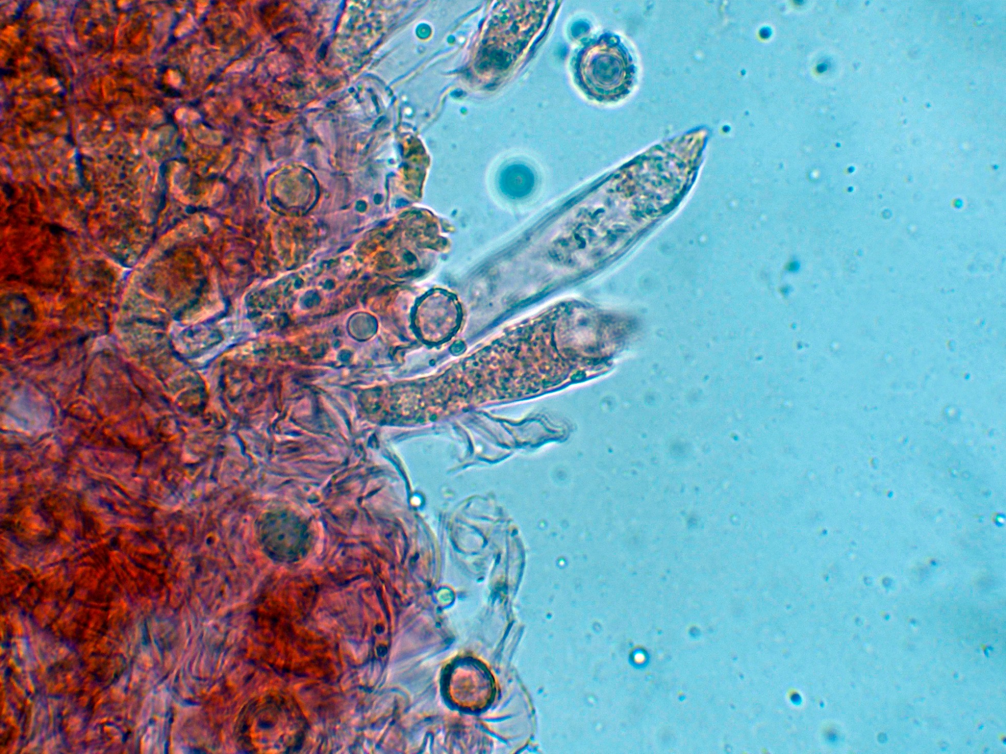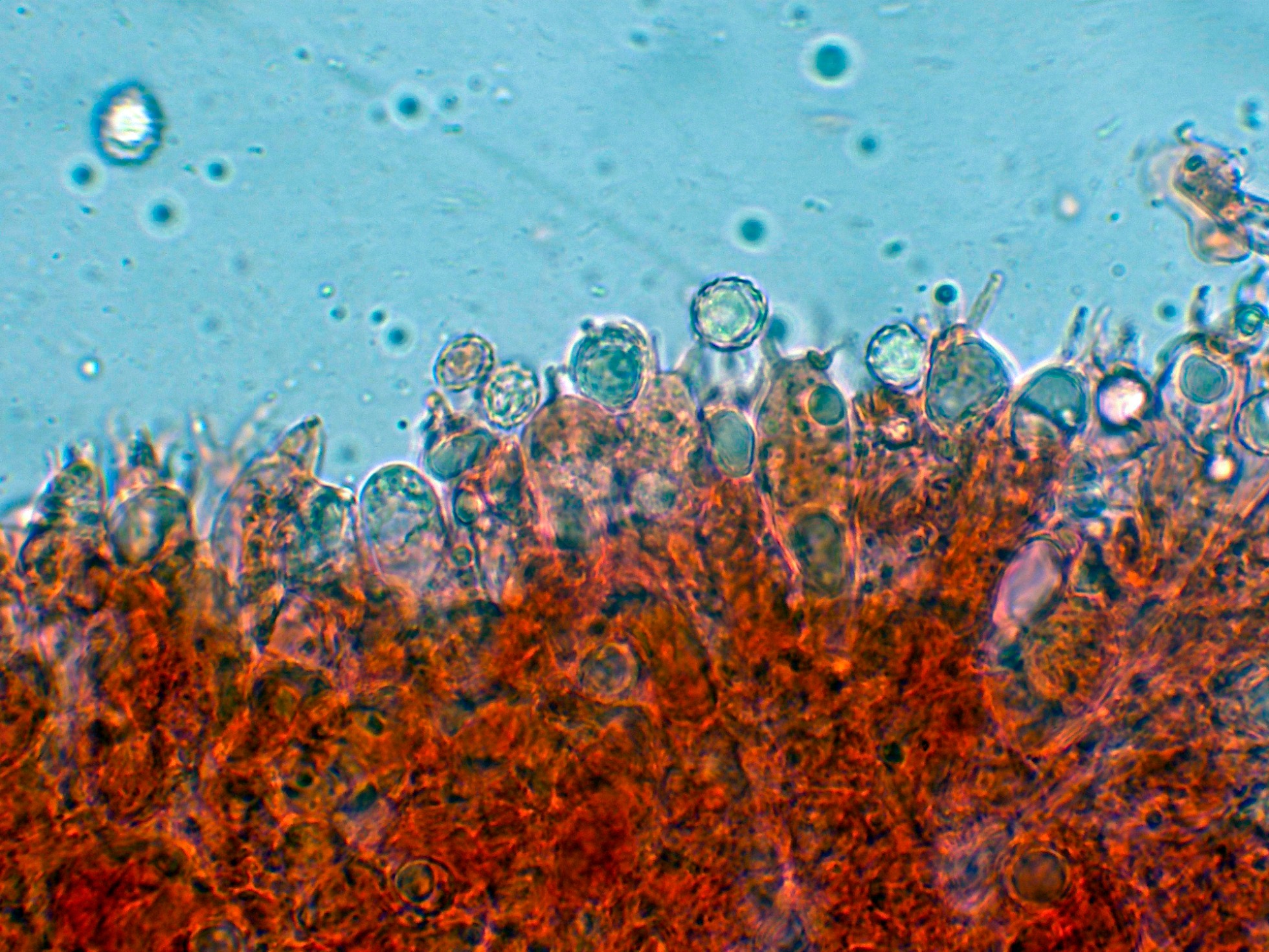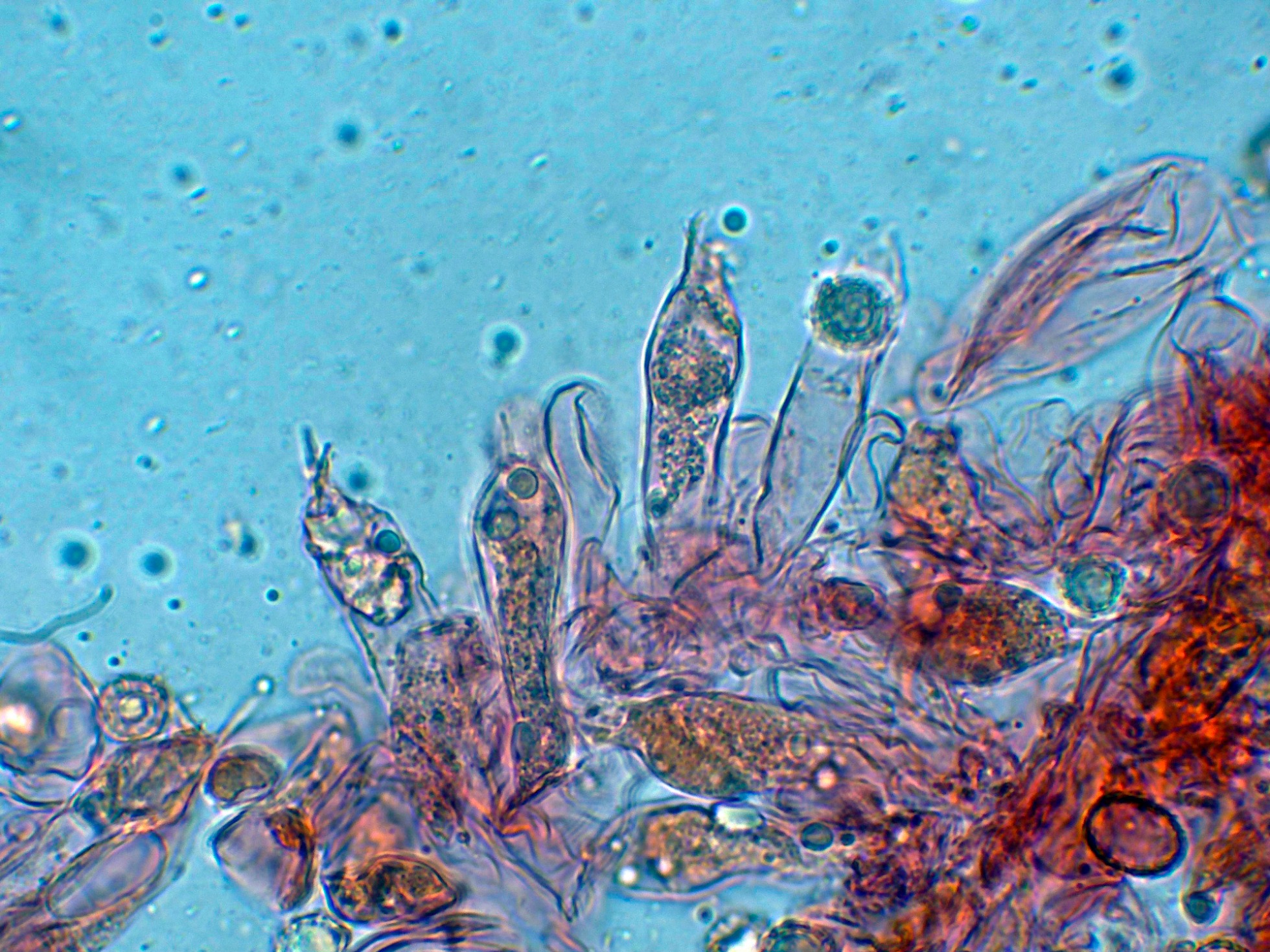 Pocos cistidios observados, dato que concuerda con la descripción del libro de Monedero.
