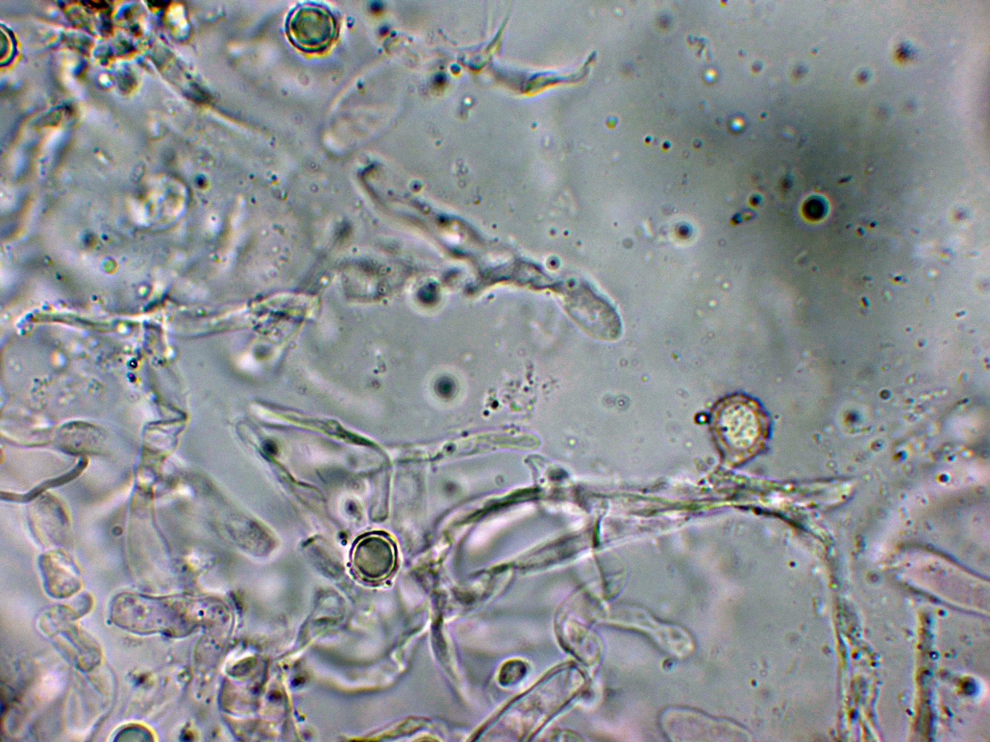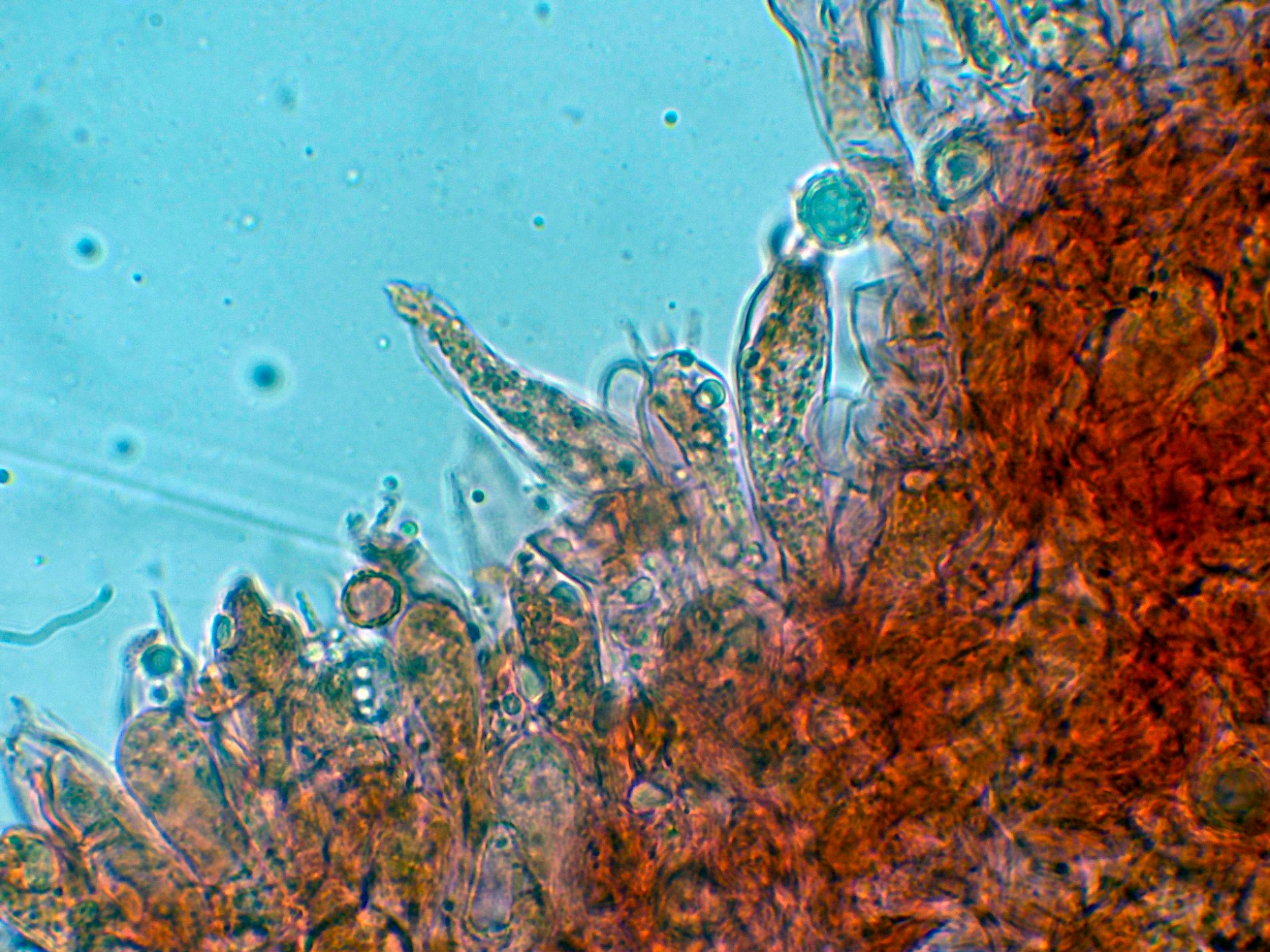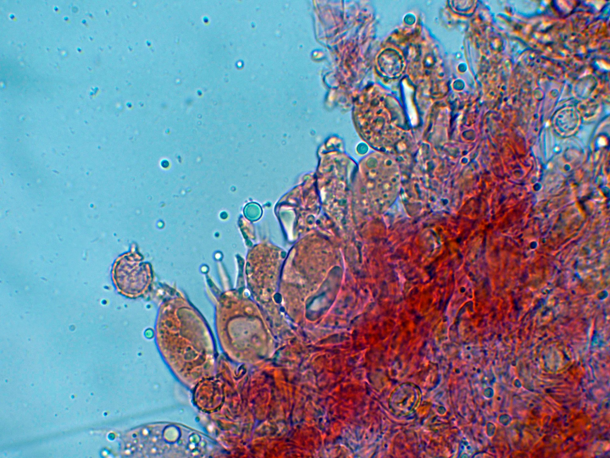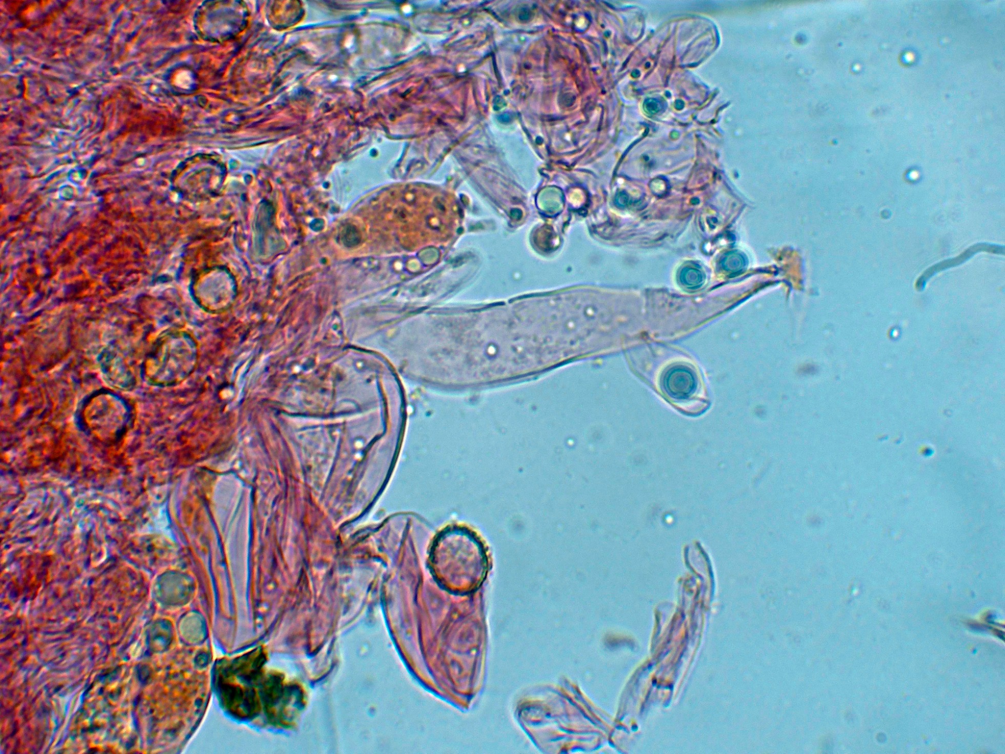 Pocos cistidios observados, dato que concuerda con la descripción del libro de Monedero.