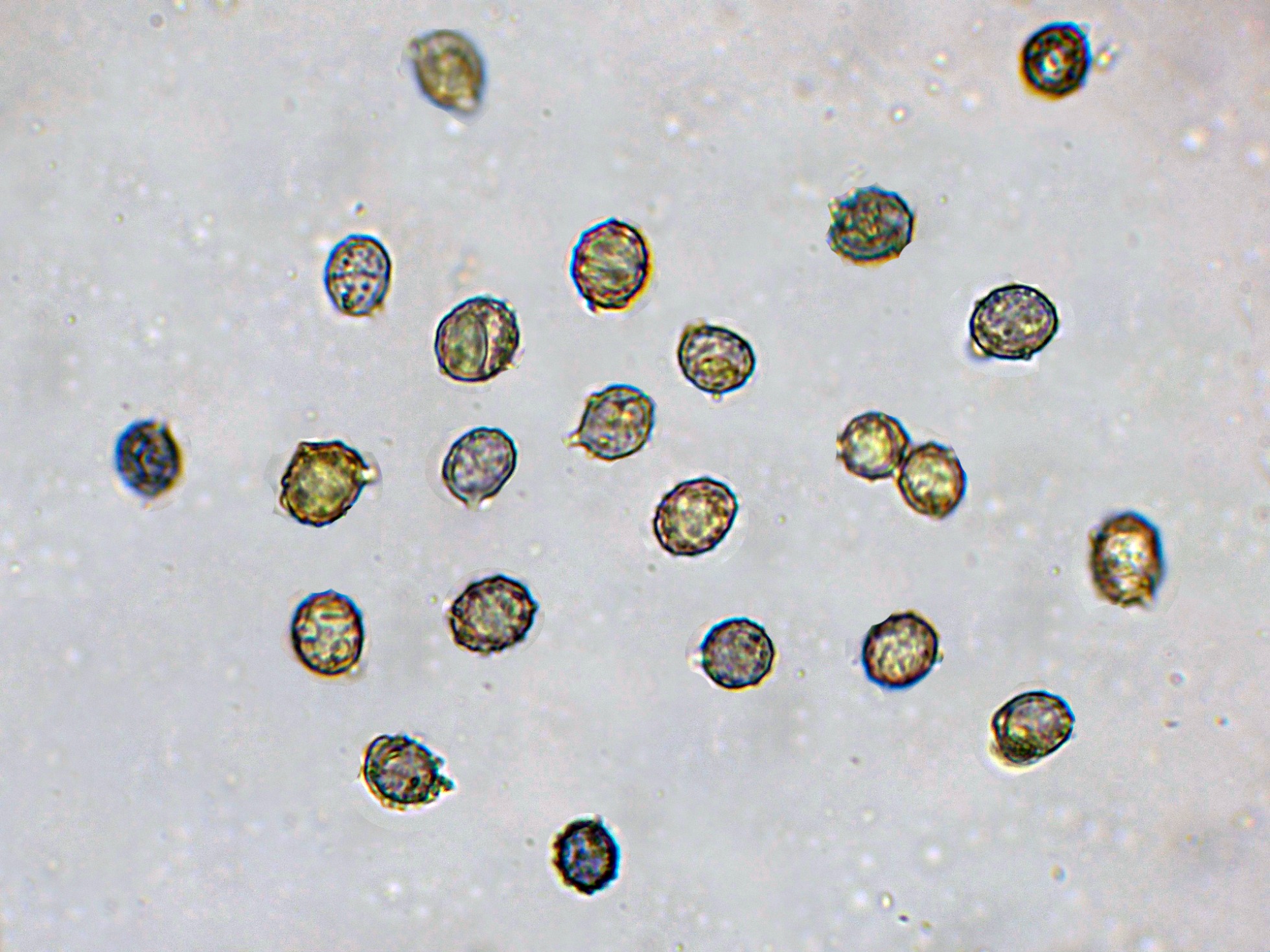 Las esporas con verrugas finas que se unen para formar algunas crestas cortas.
