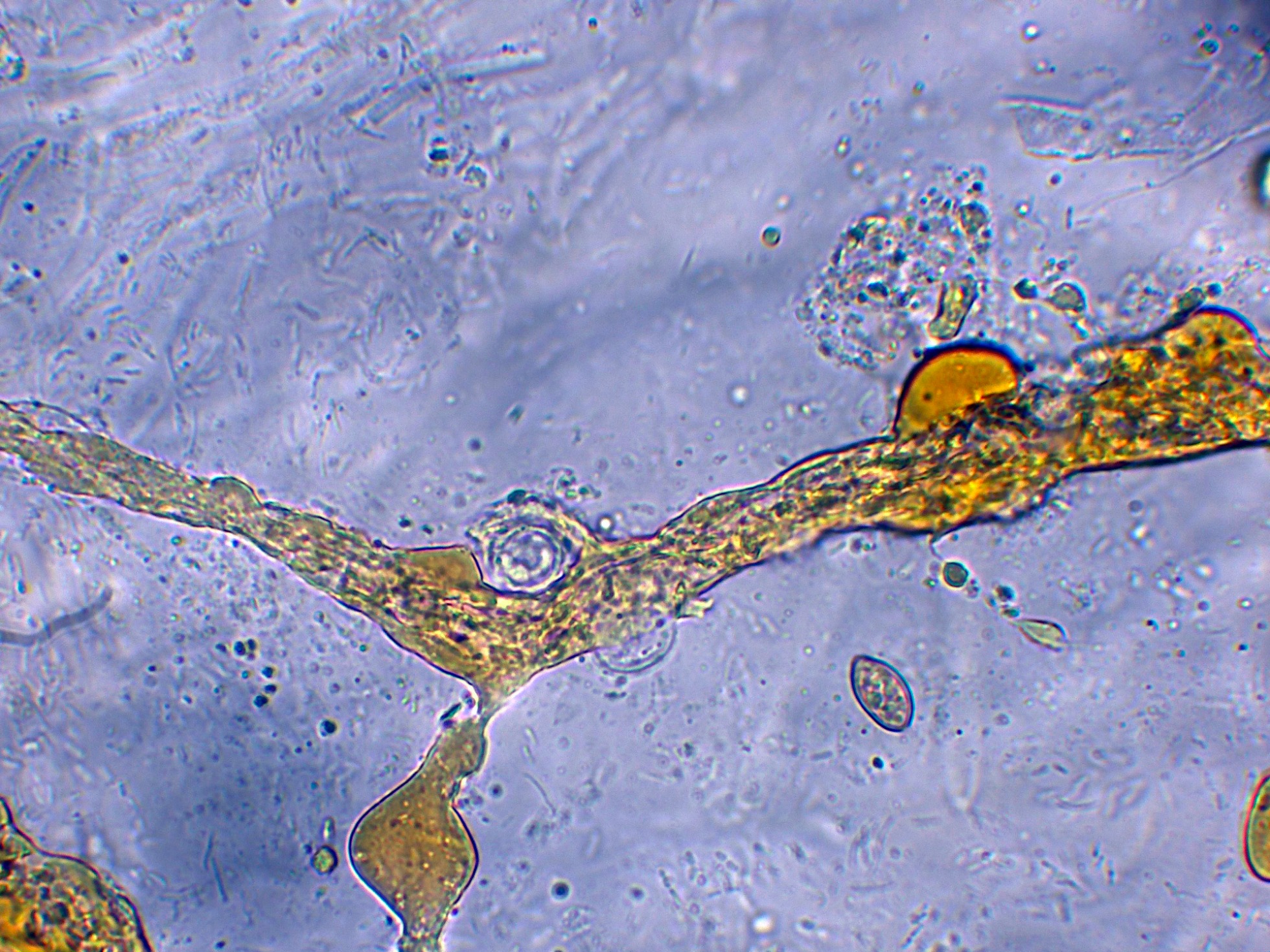 Hifas laticíferas fuertemente pigmentadas que son las causantes del color anaranjado muy vivo de su látex.