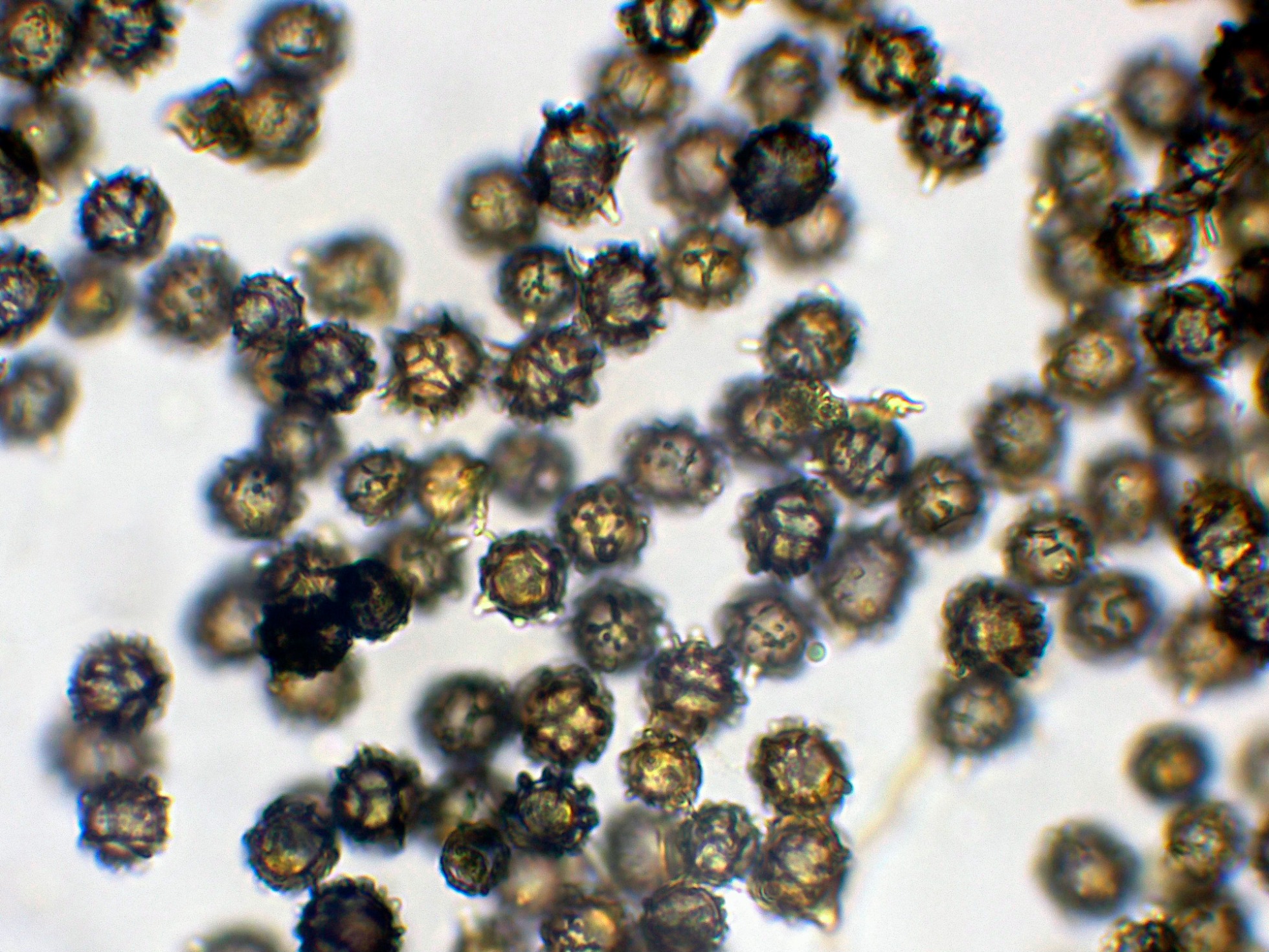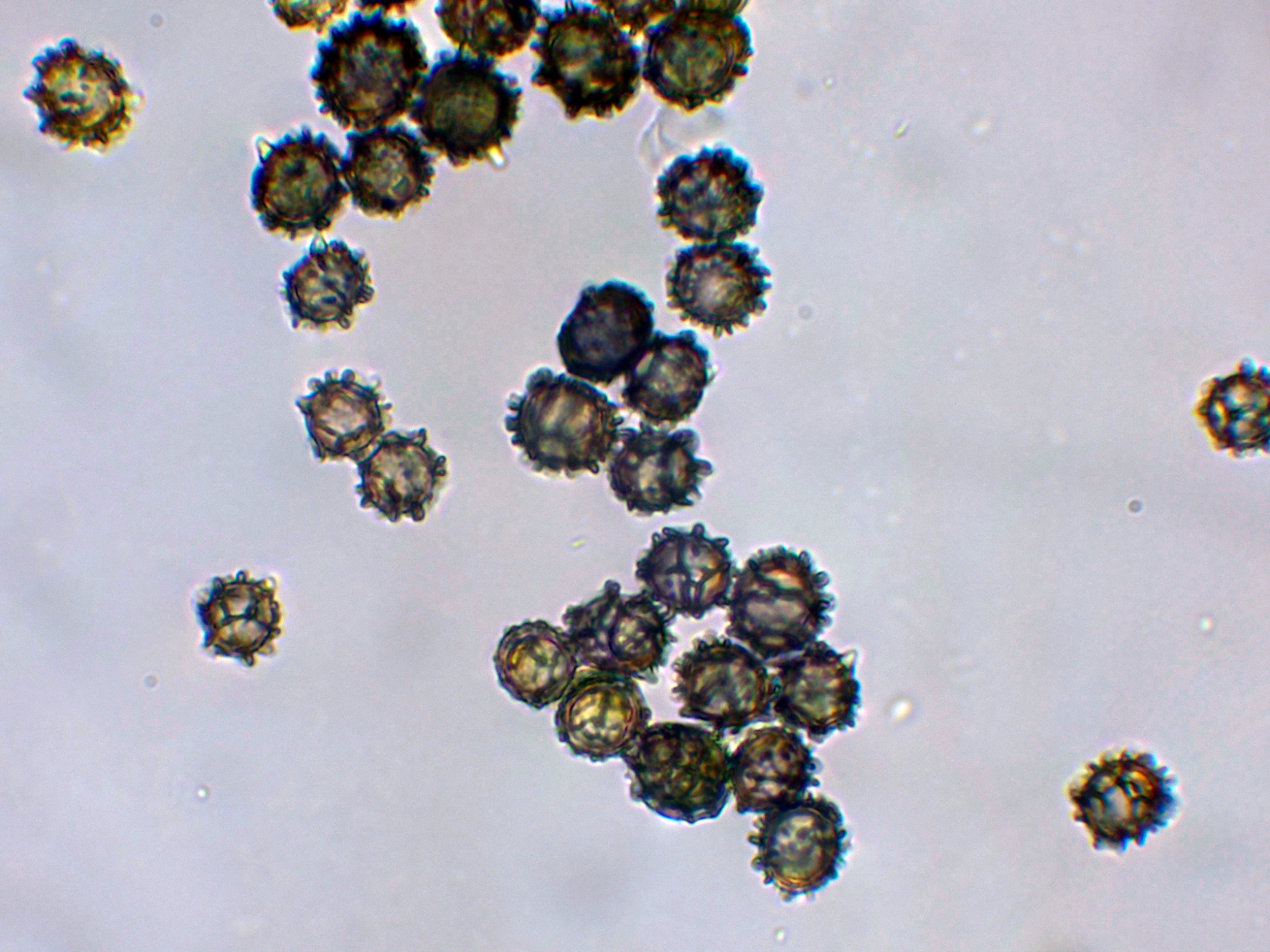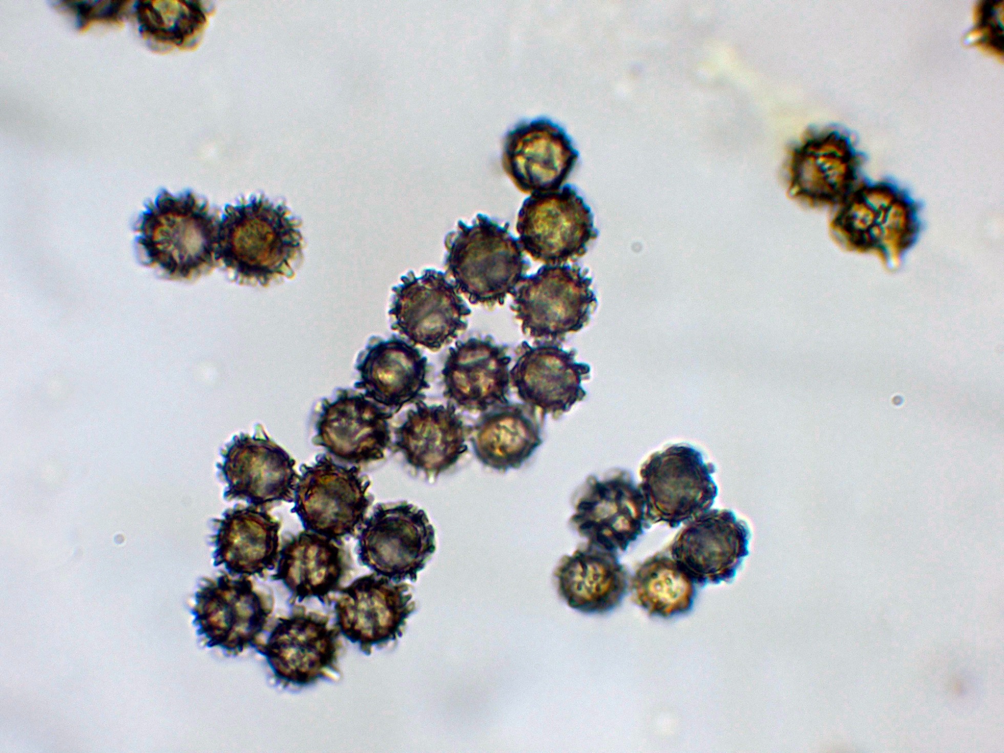 Esporas globosas con gruesas crestas de hasta 2 micras de altura que llegan a formar un retículo parcial.