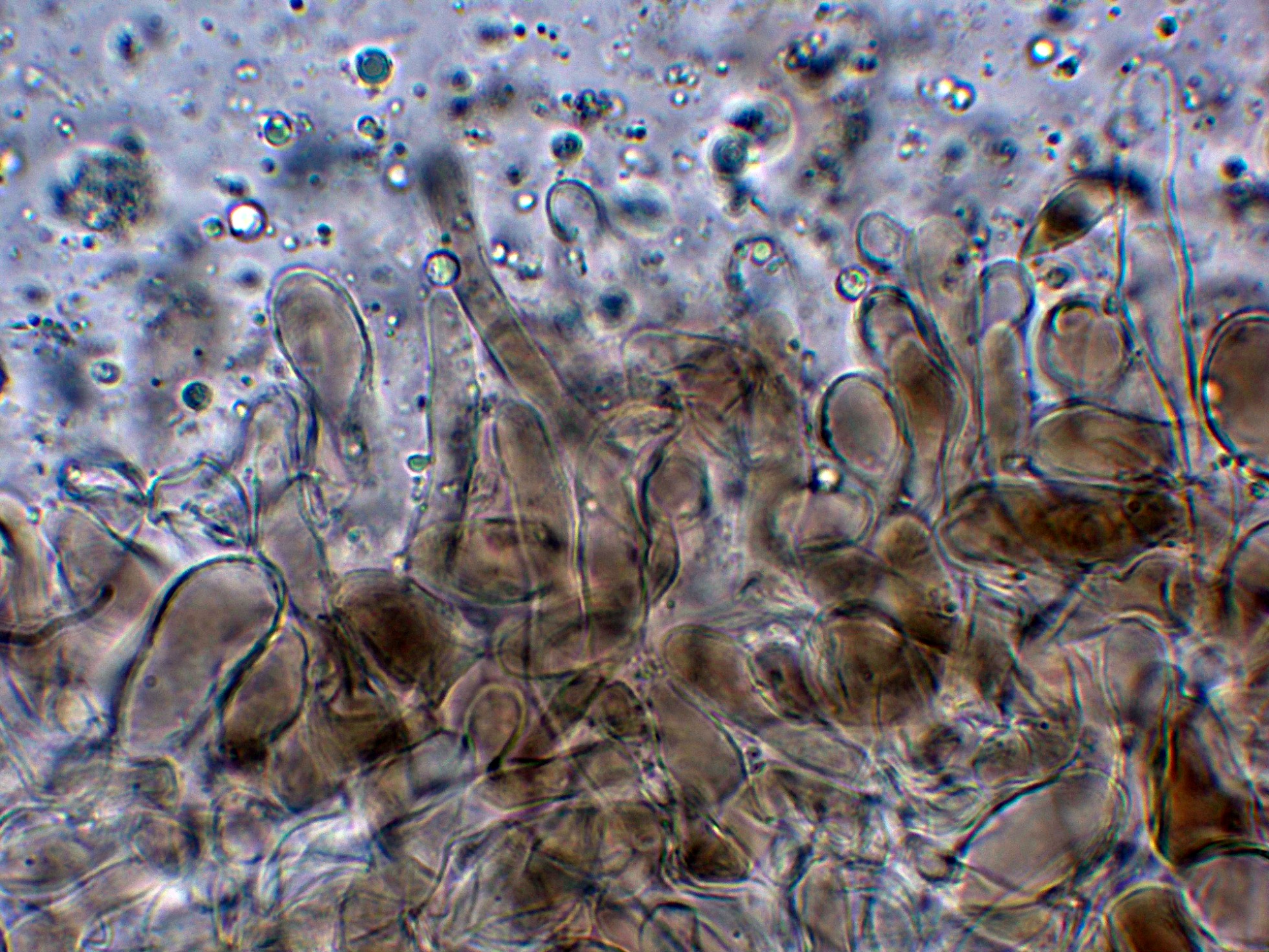 Suprapellis un tanto especial, con terminaciones hifales cilíndricas y pigmentadas de marrón.