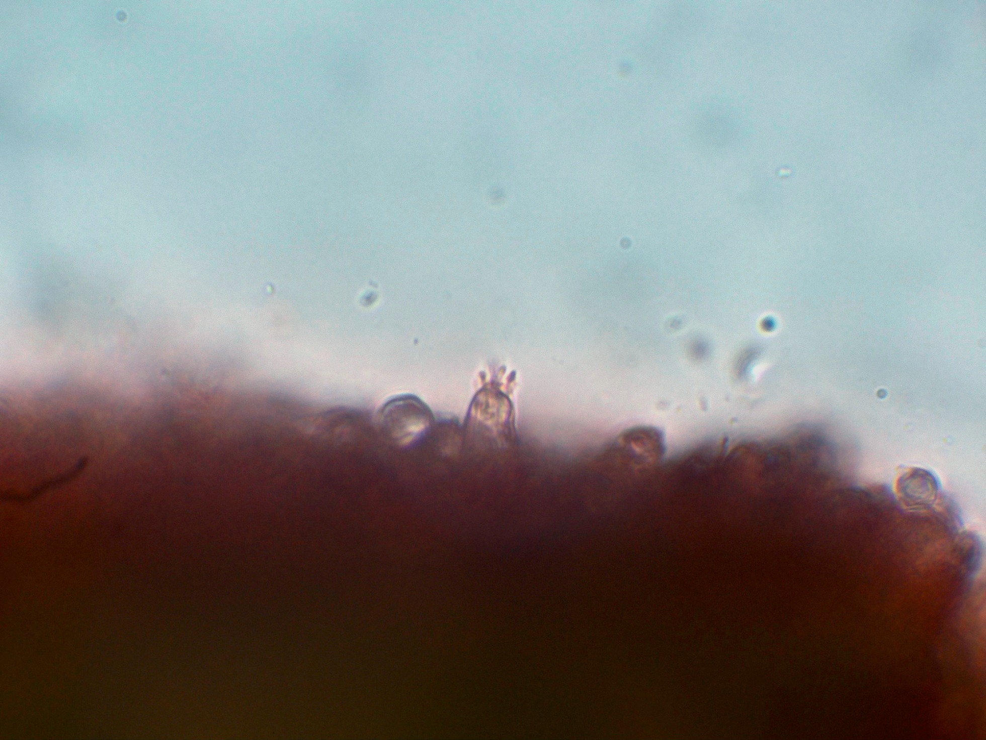 Sus basidios tetraspóricos y de difícil observación.
