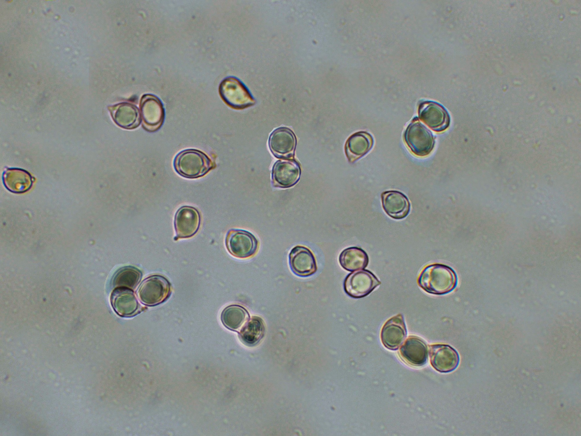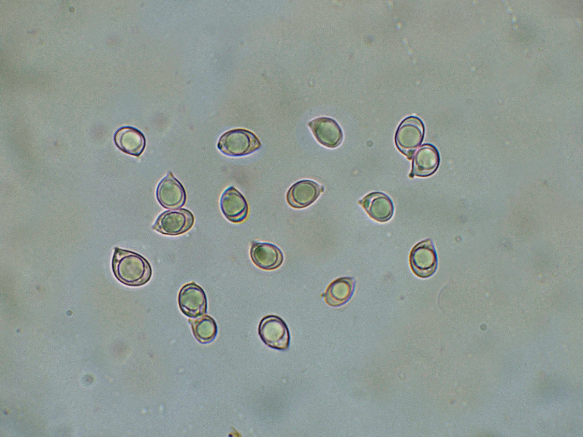 Y las esporas hialinas y con una gran gota de grasa en su interior.
