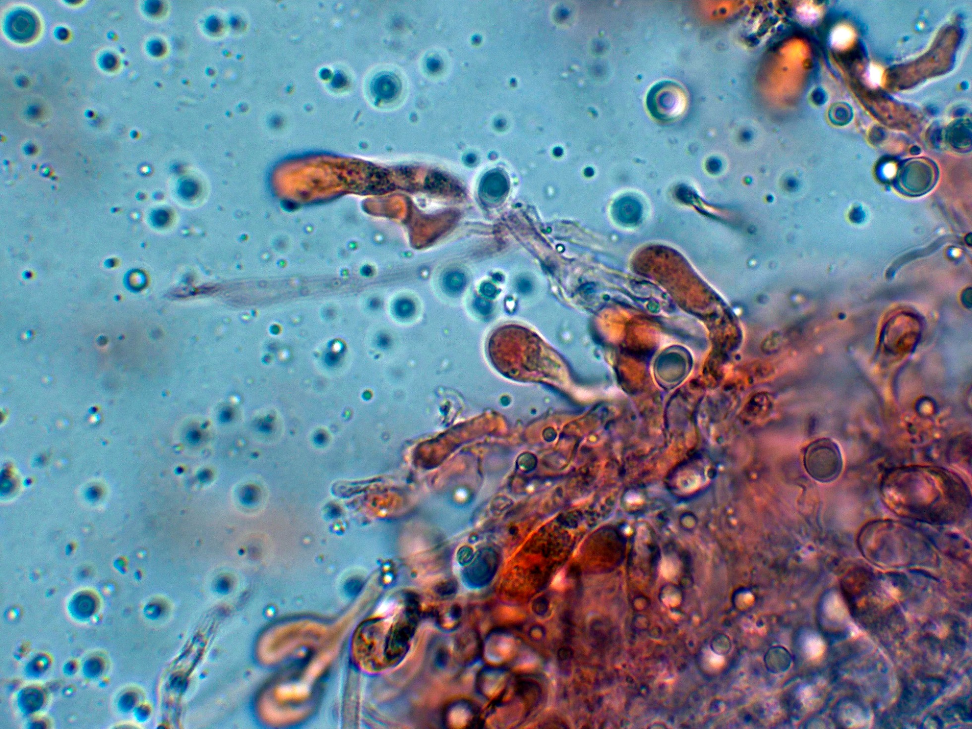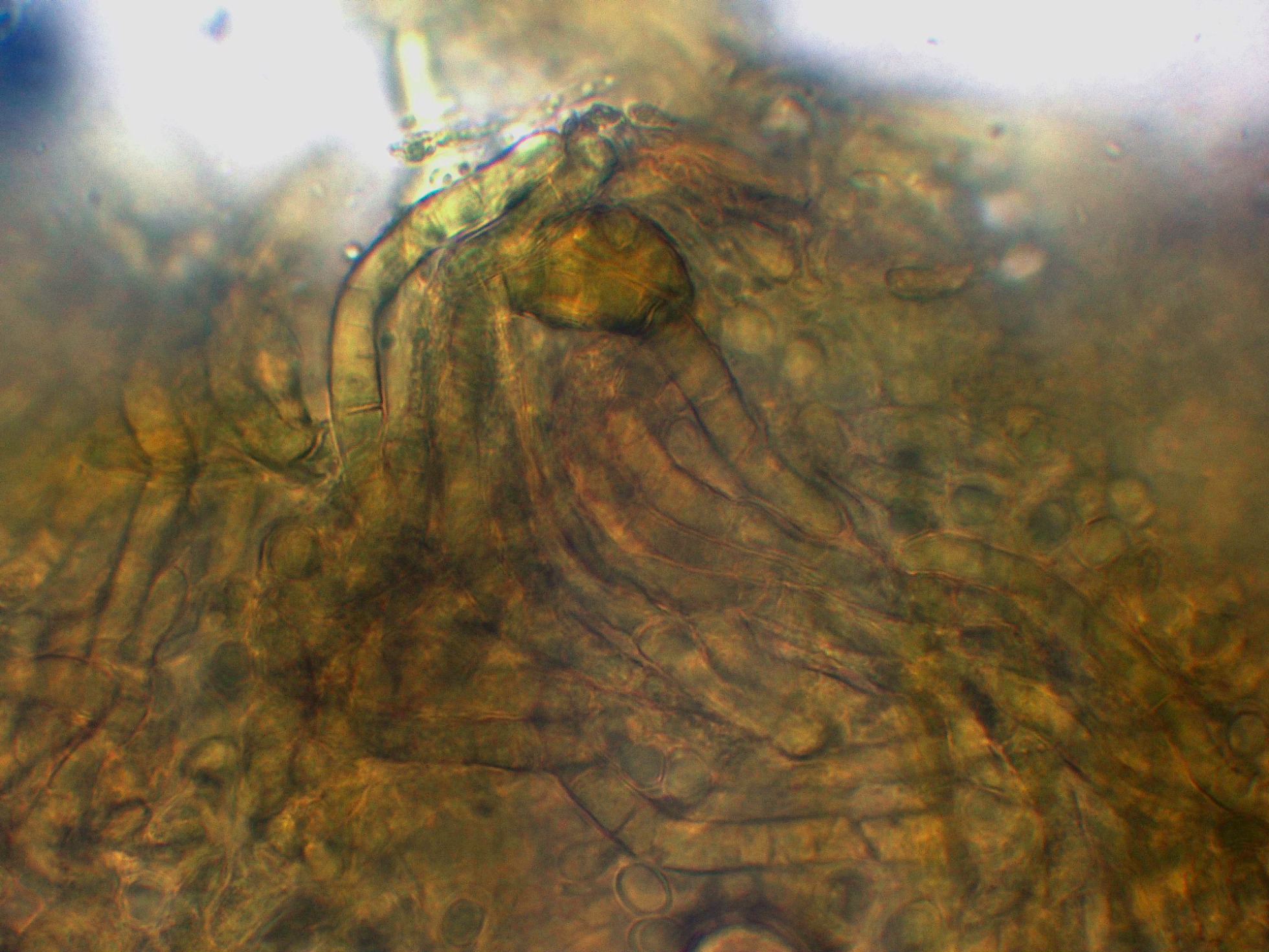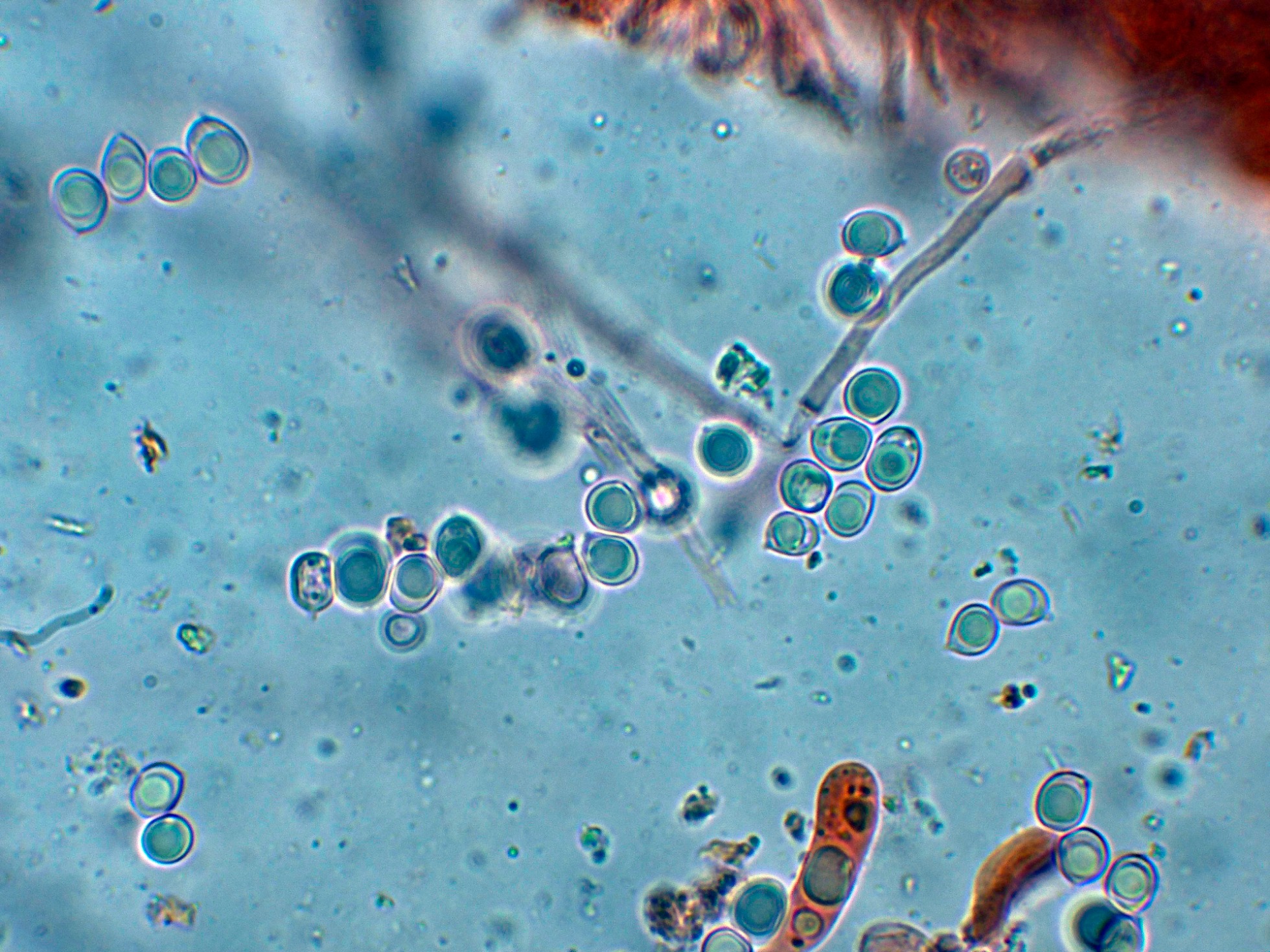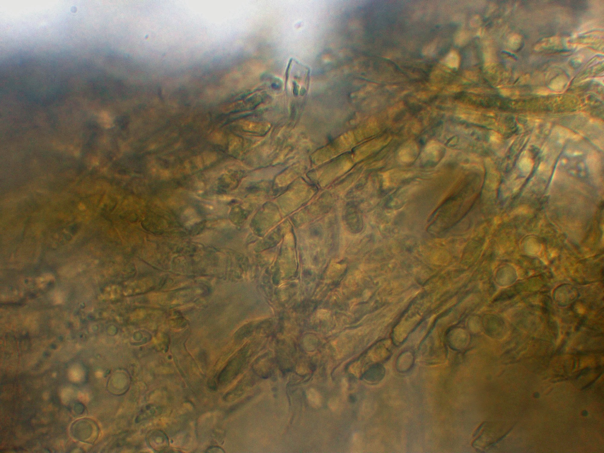 La suprapellis en agua con hifas fuertemente pigmentadas: