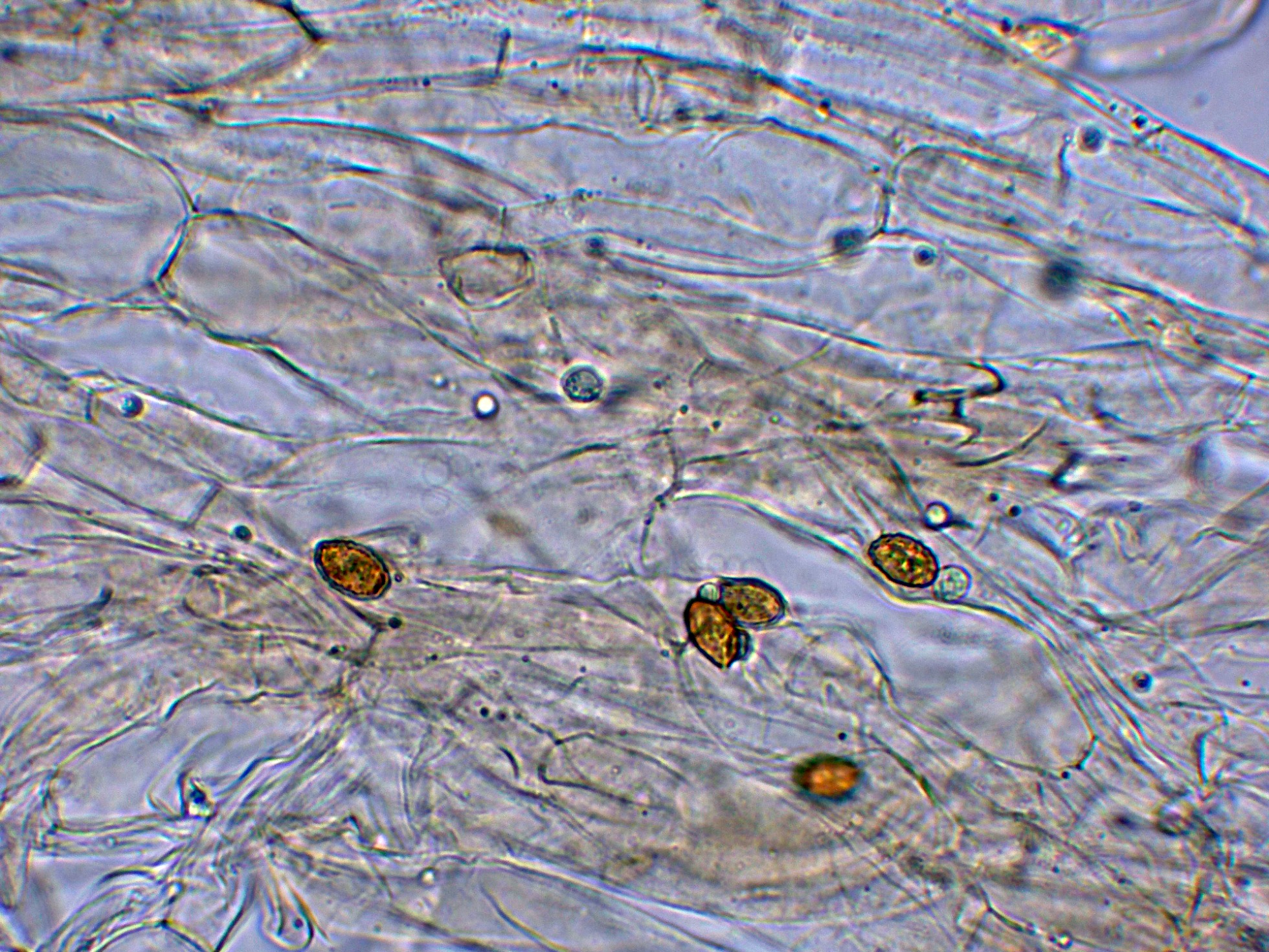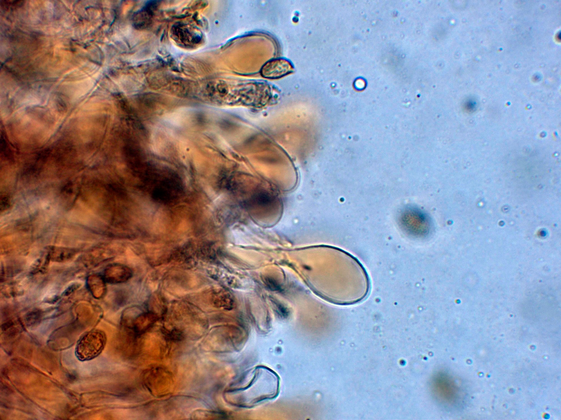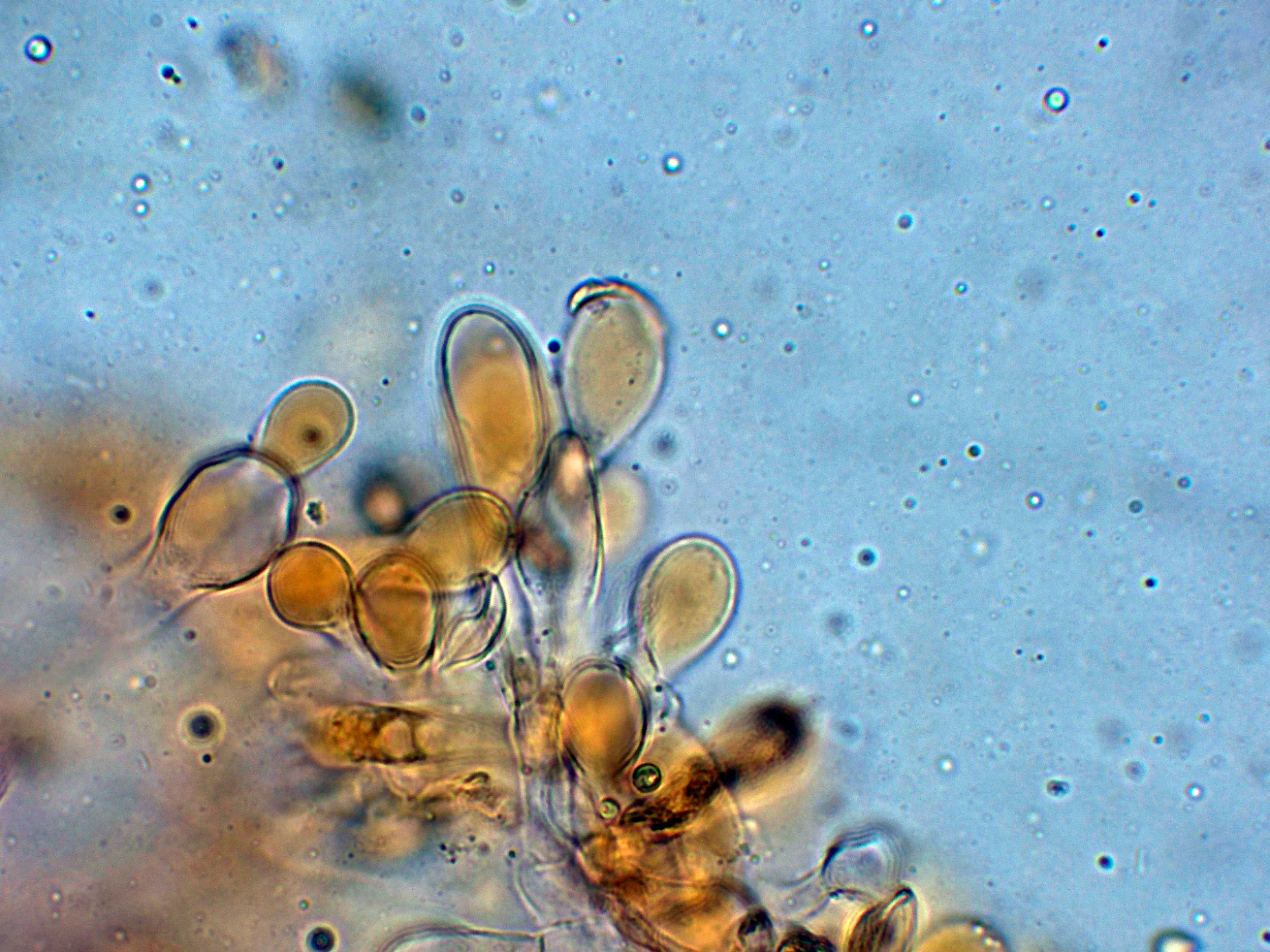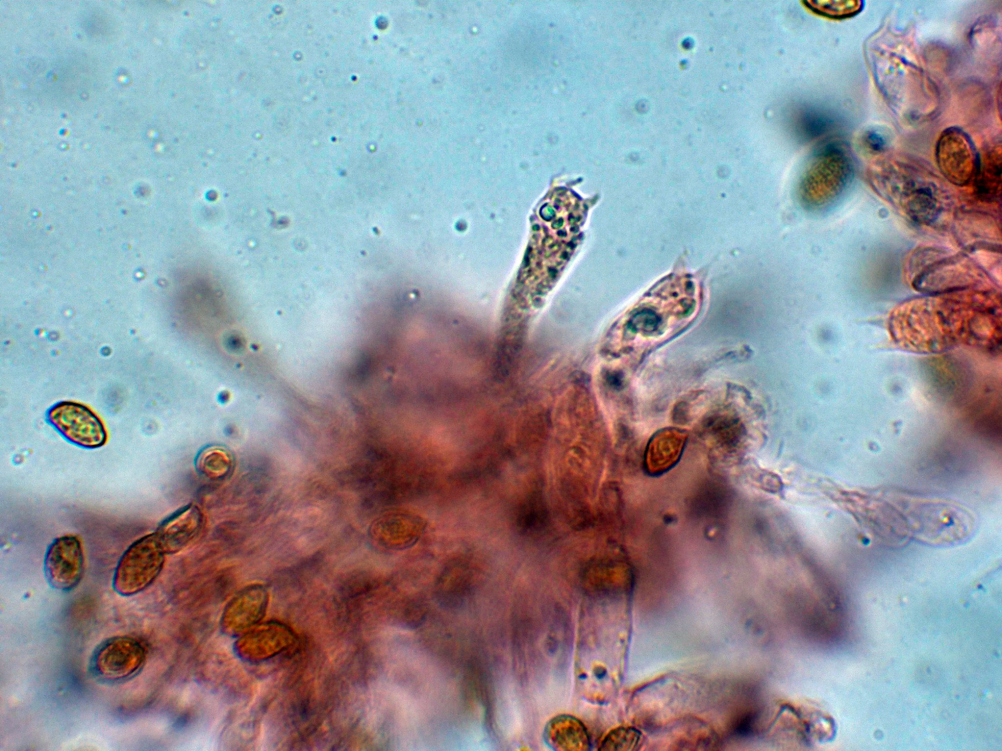 Y las esporas en Reactivo de Melzer, con reacción dextrinoide.
