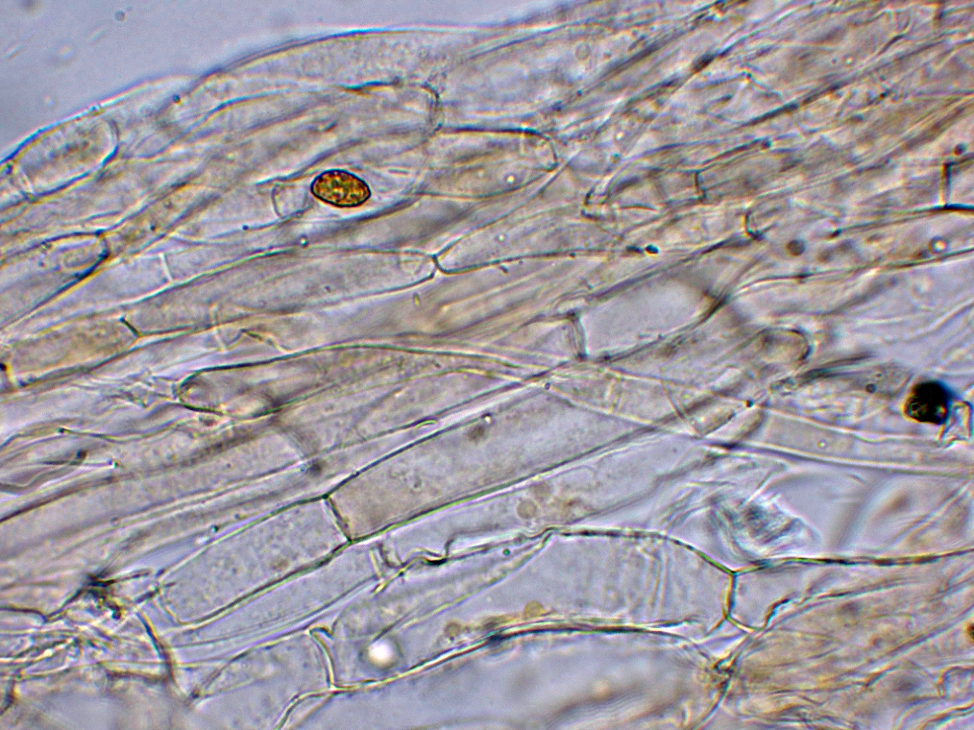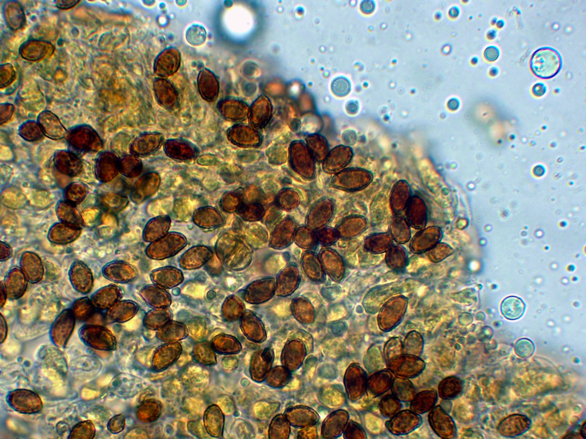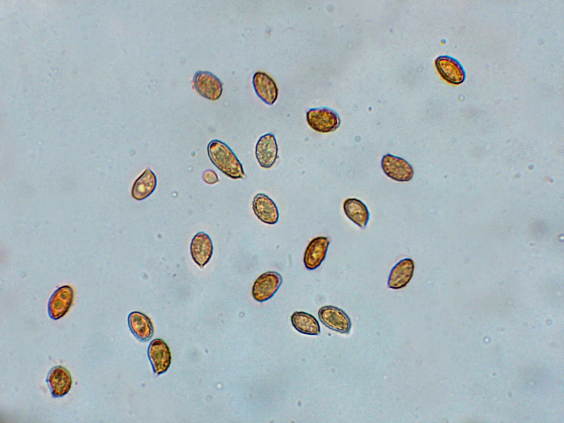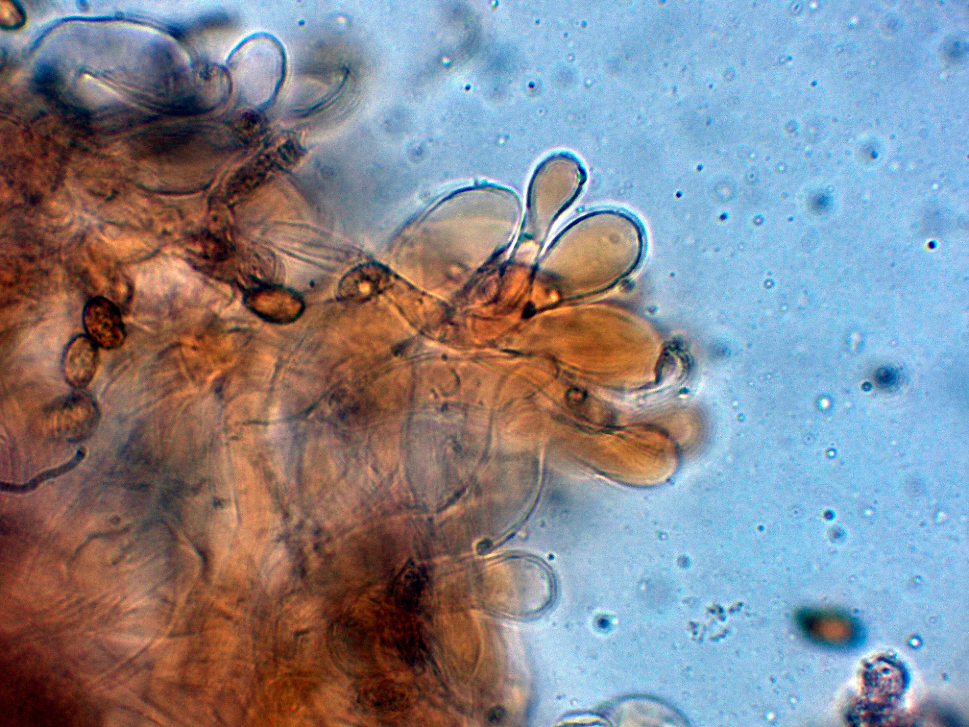 Y las esporas en Reactivo de Melzer, con reacción dextrinoide.