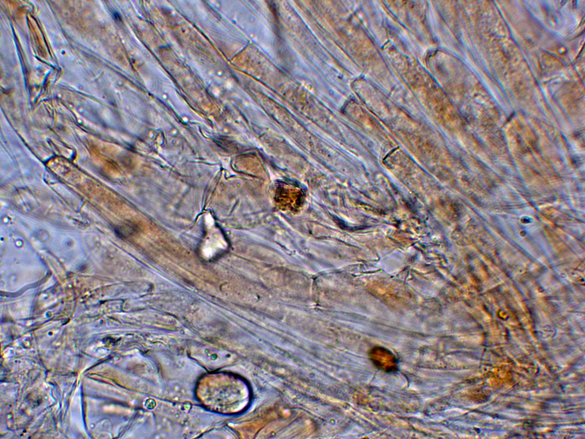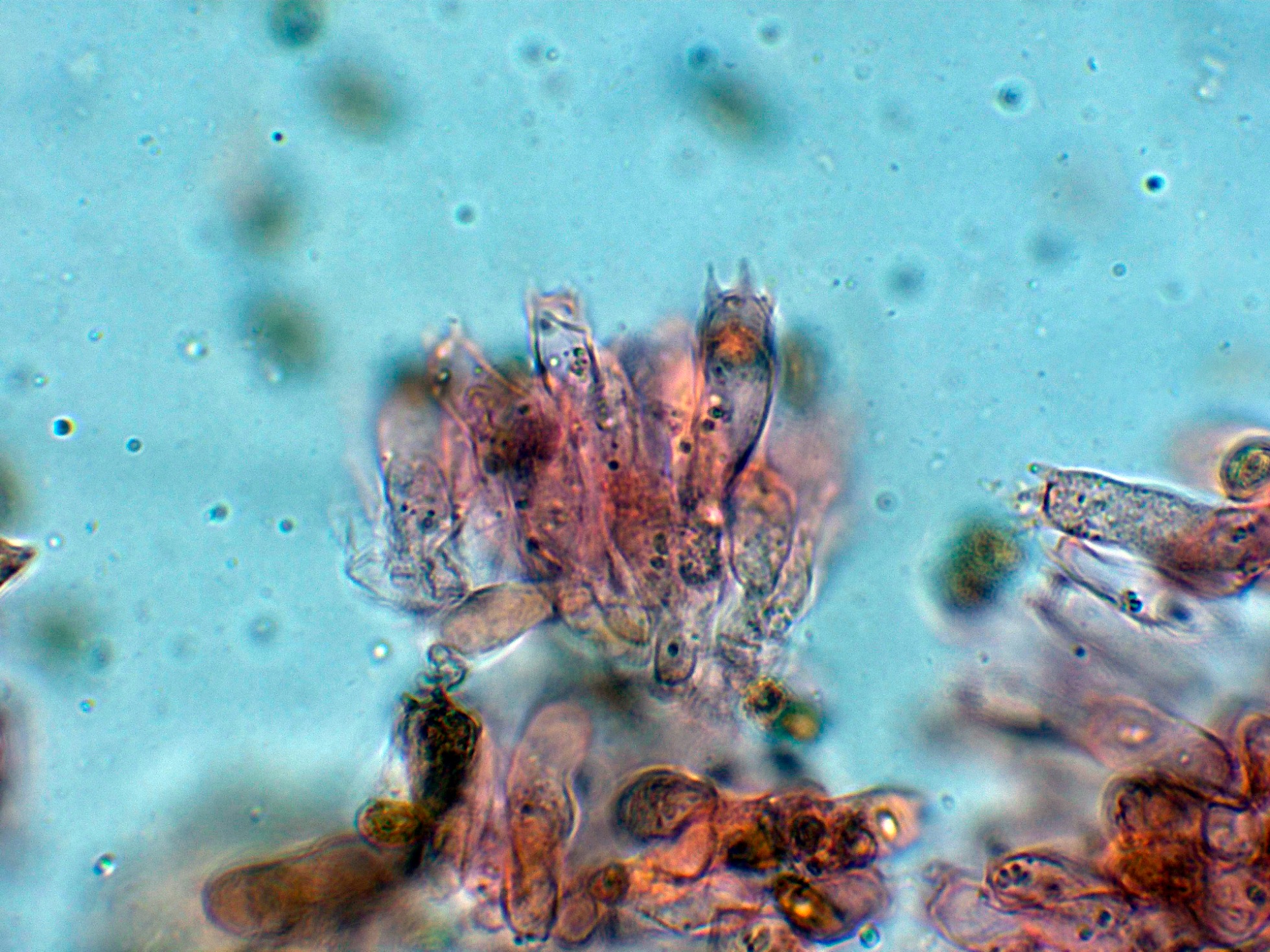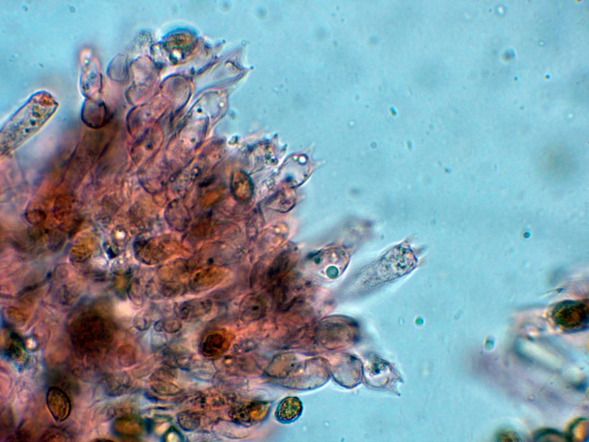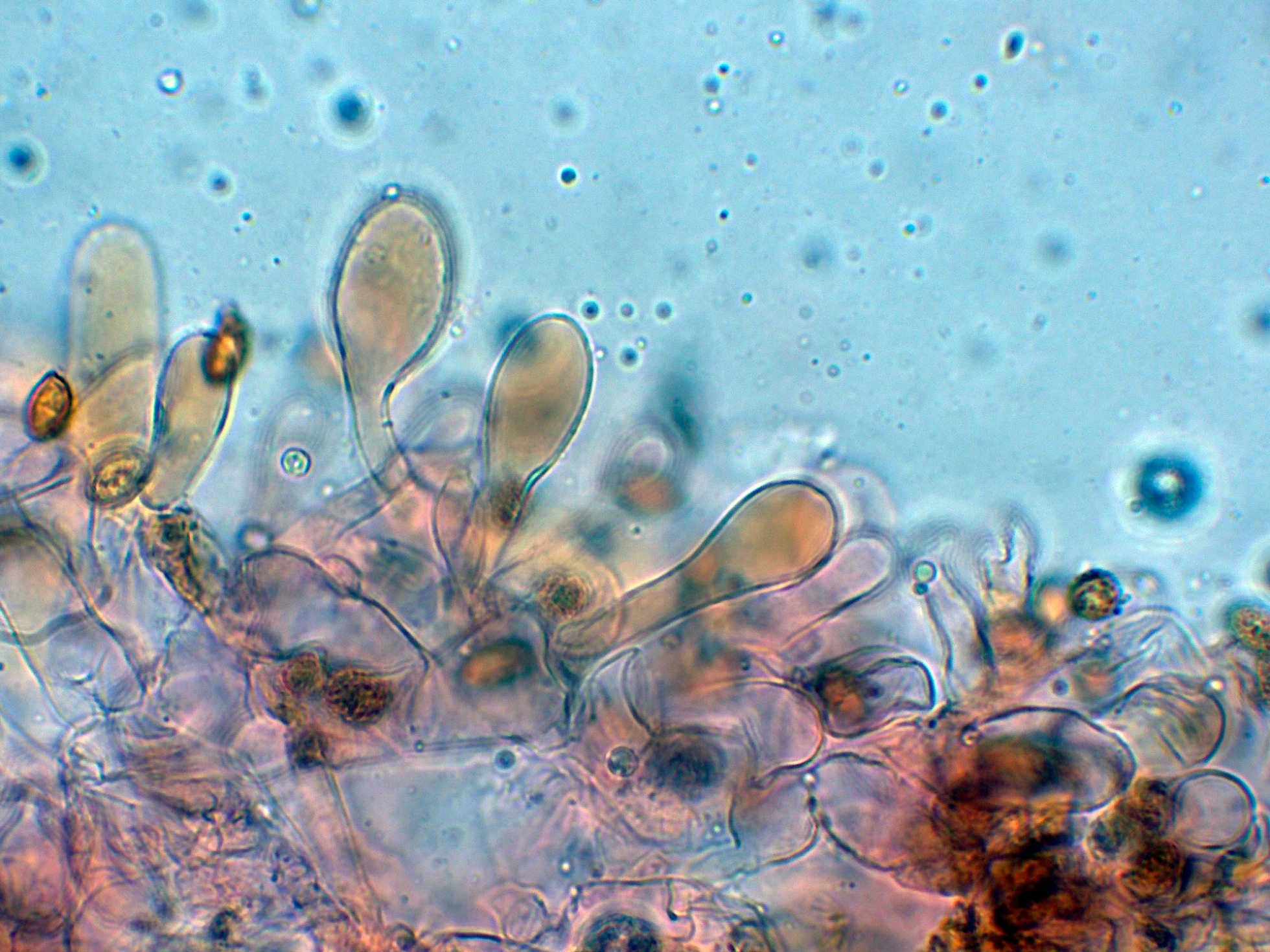 Arista laminar tapizada de hifas terminales a modo de queilocistidios fuertemente pigmentadas.