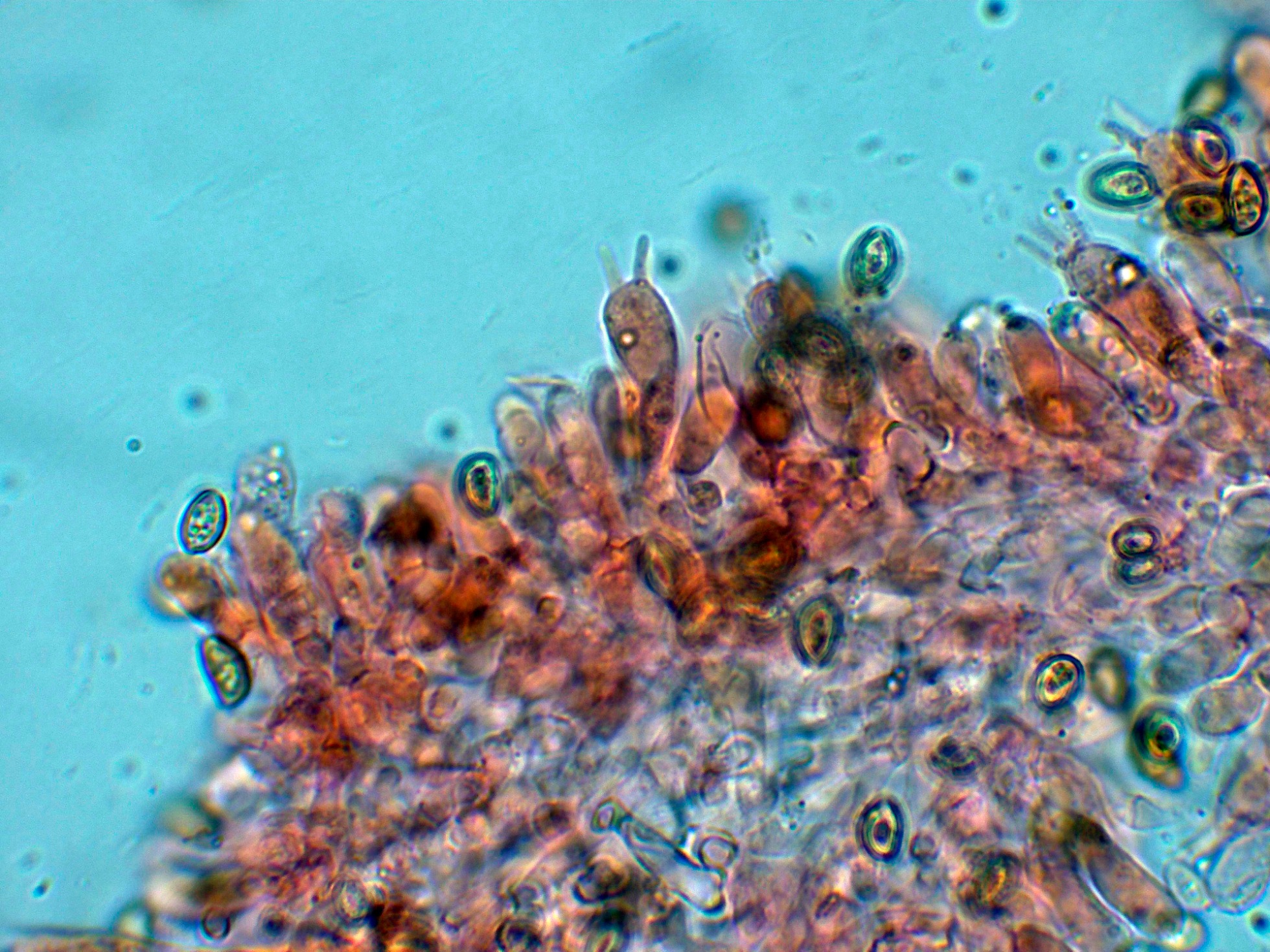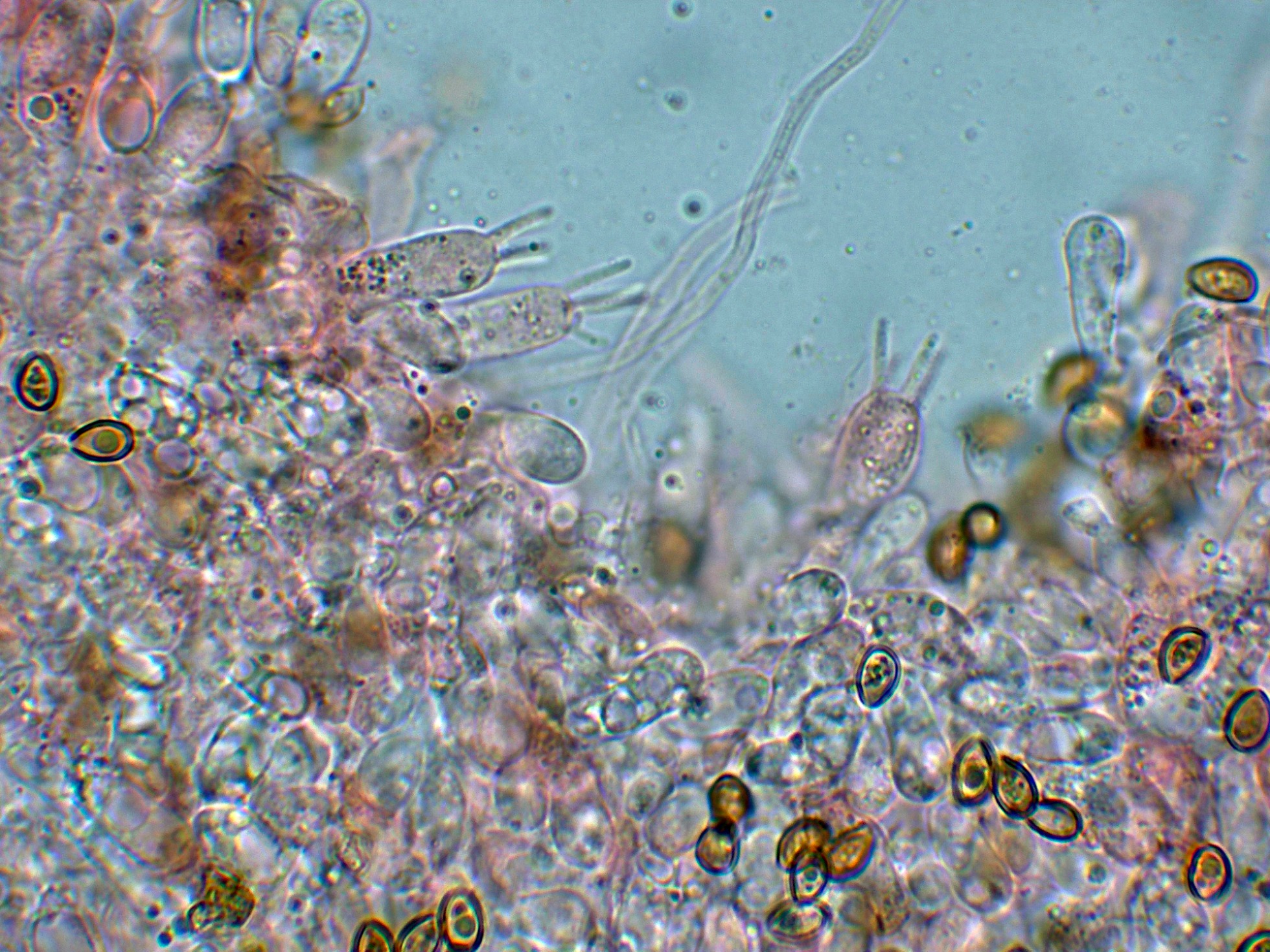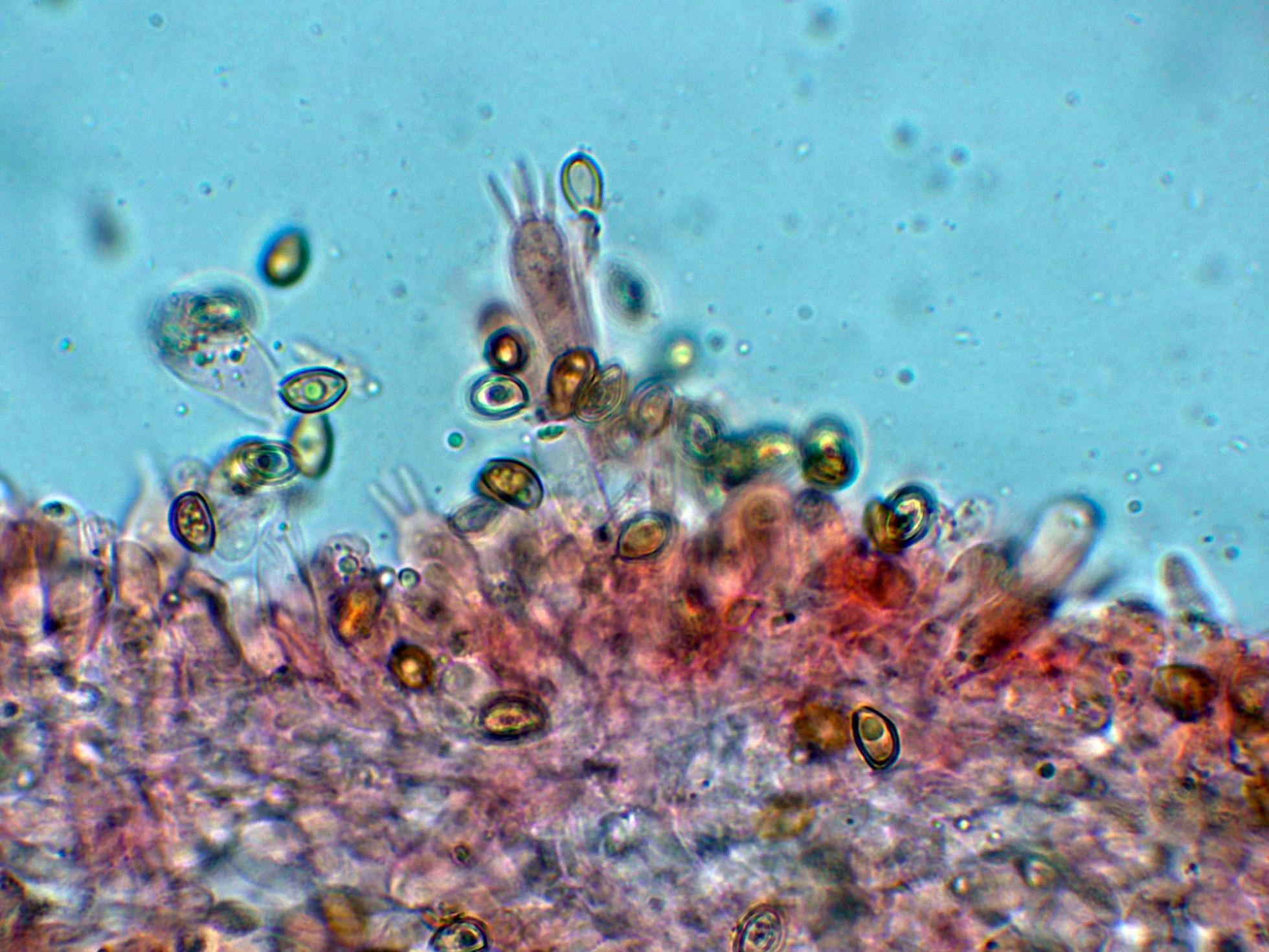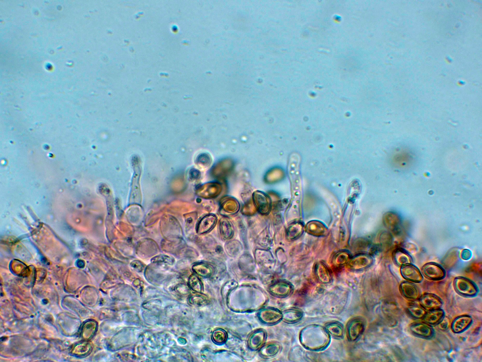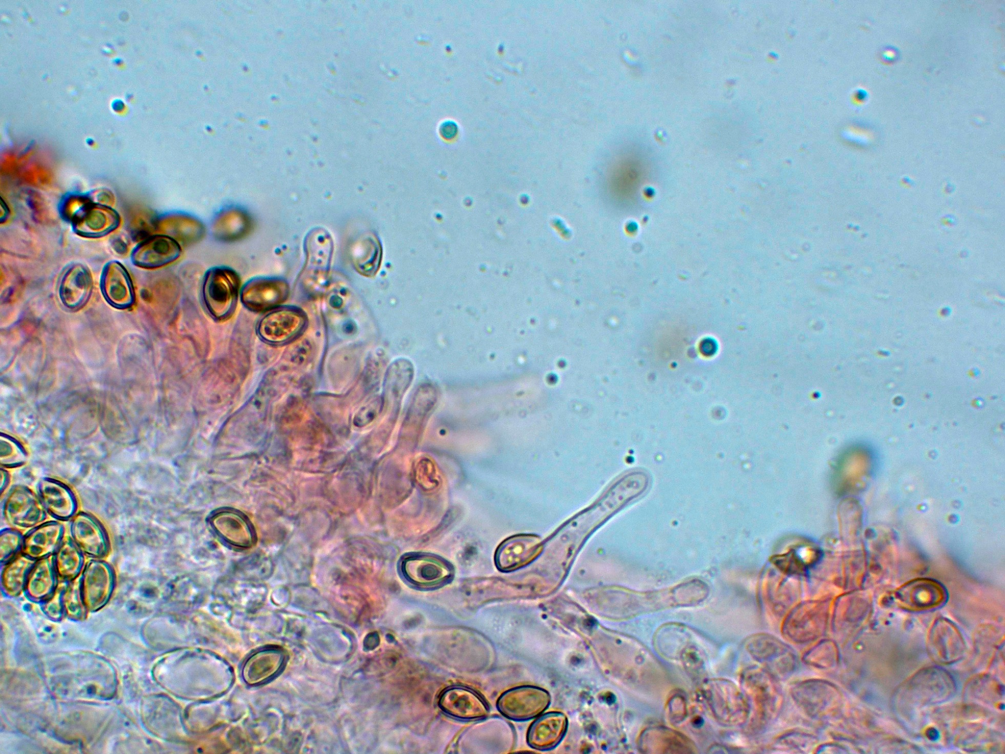 Arista laminar con abundantes hifas terminales a modo de queilocistidios de pequeño tamaño, cilíndricas y sinuosas.