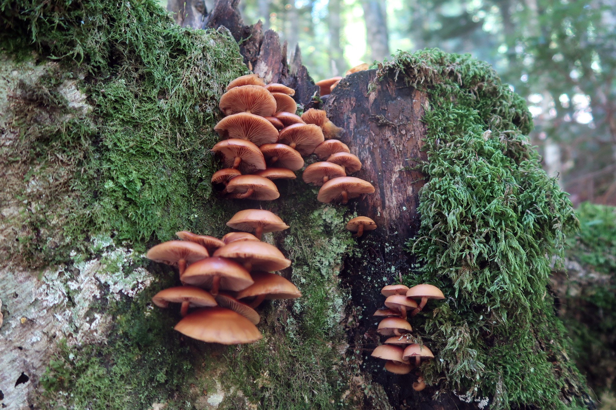 Una buena flotilla de hongos lignícolas fotografiados el pasado 5 de Octubre en Foret de Sansanet.