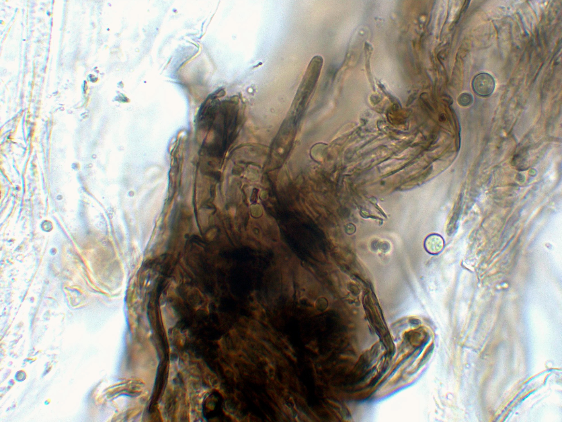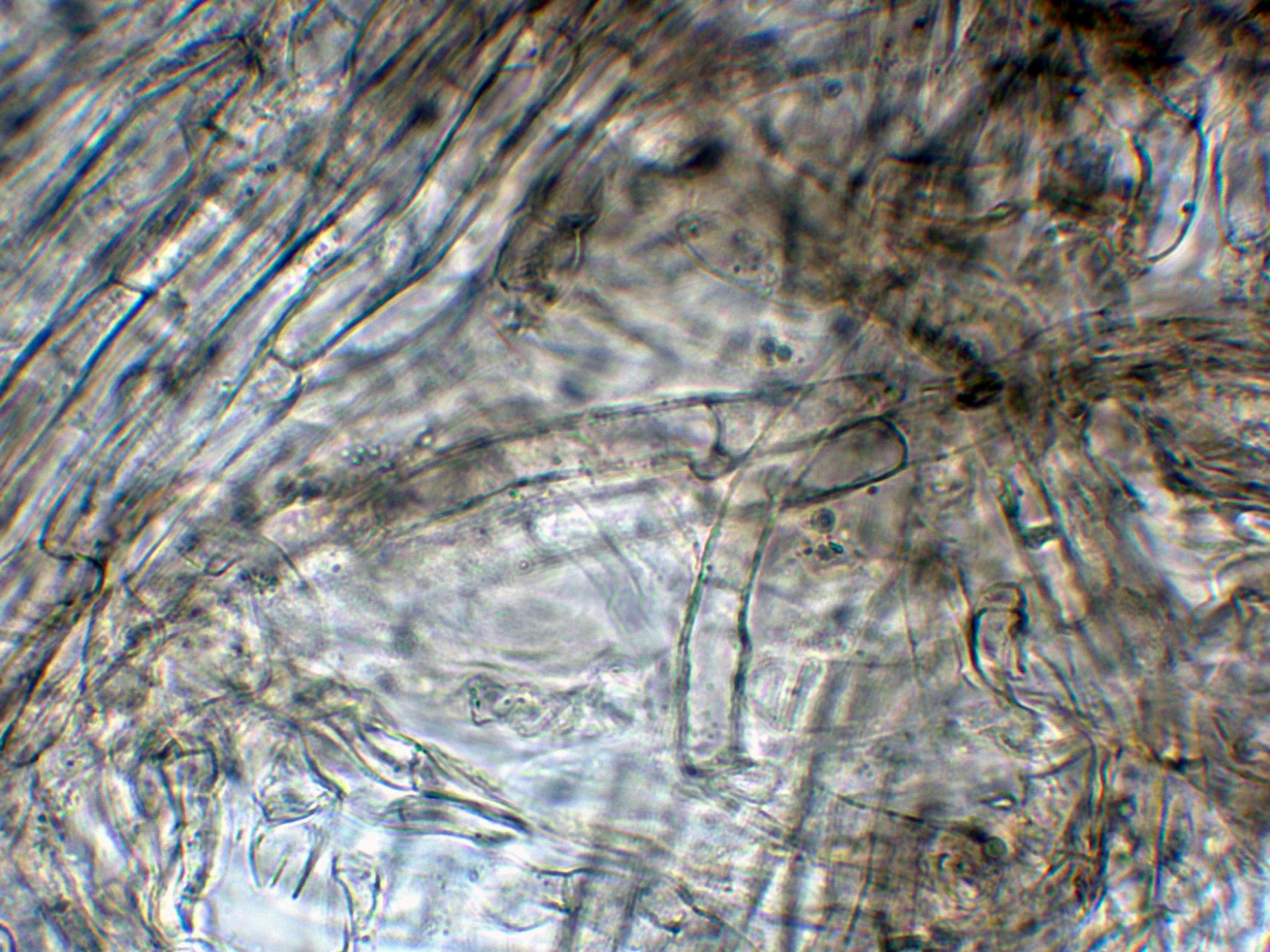 Estas hifas también estarían presentes en la cara laminar, quizás podrían corresponderse a basidios inmaduros.