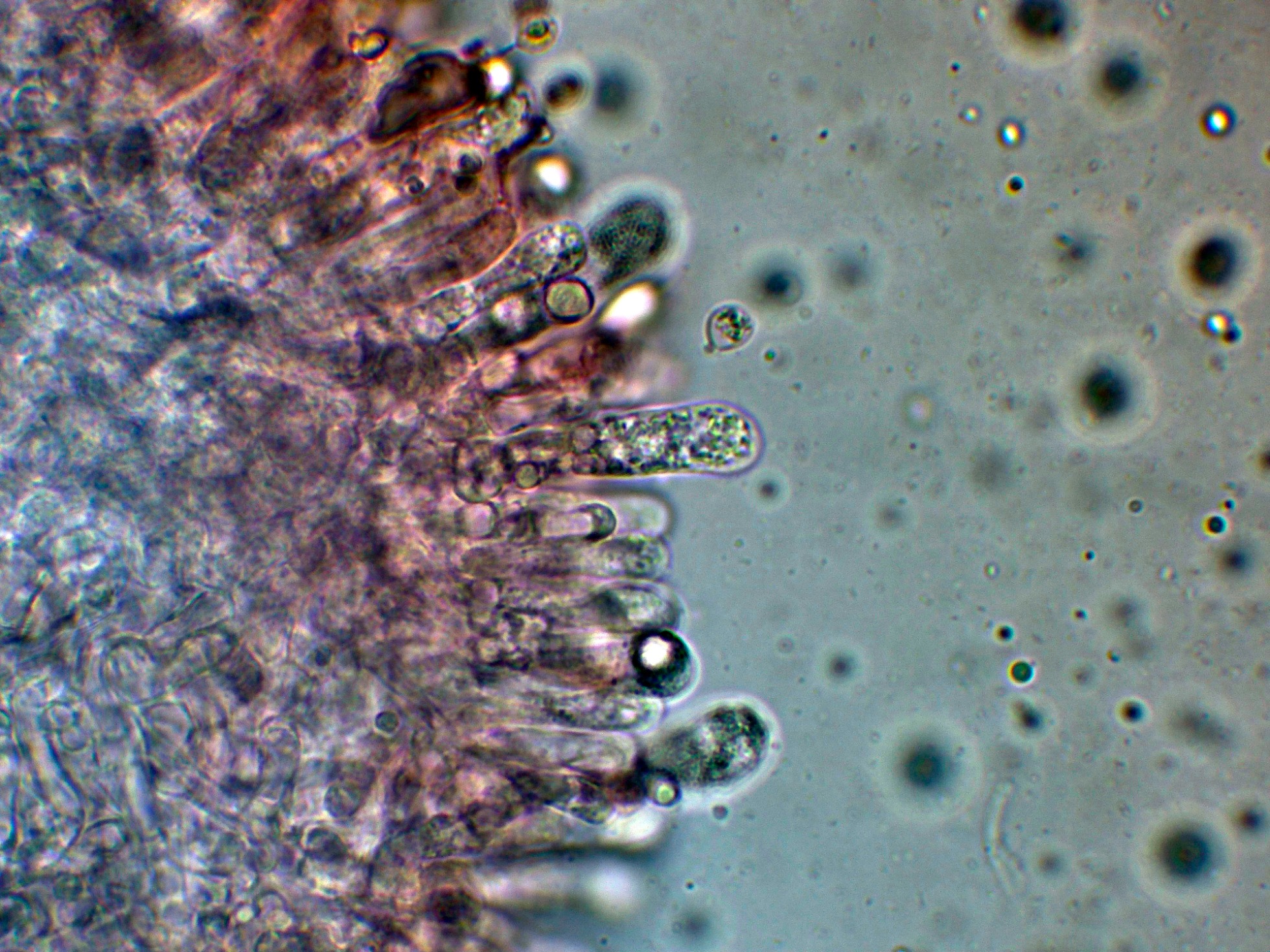 Ningún elemento diferenciado en el himenio a los basidios o basidiolos (sin cistidios).