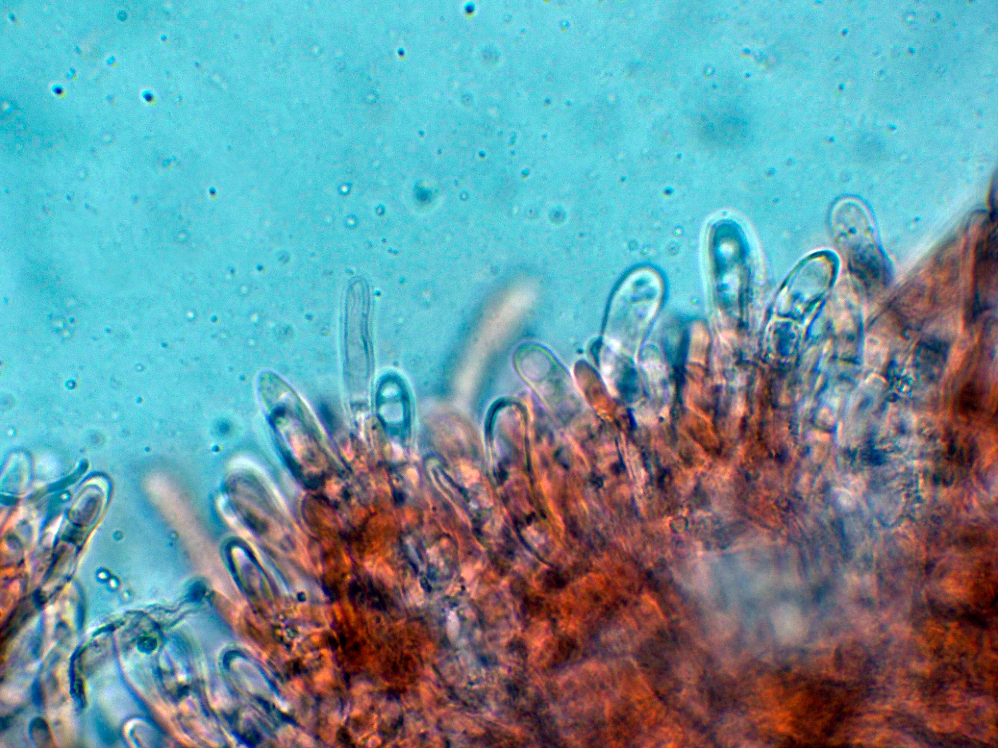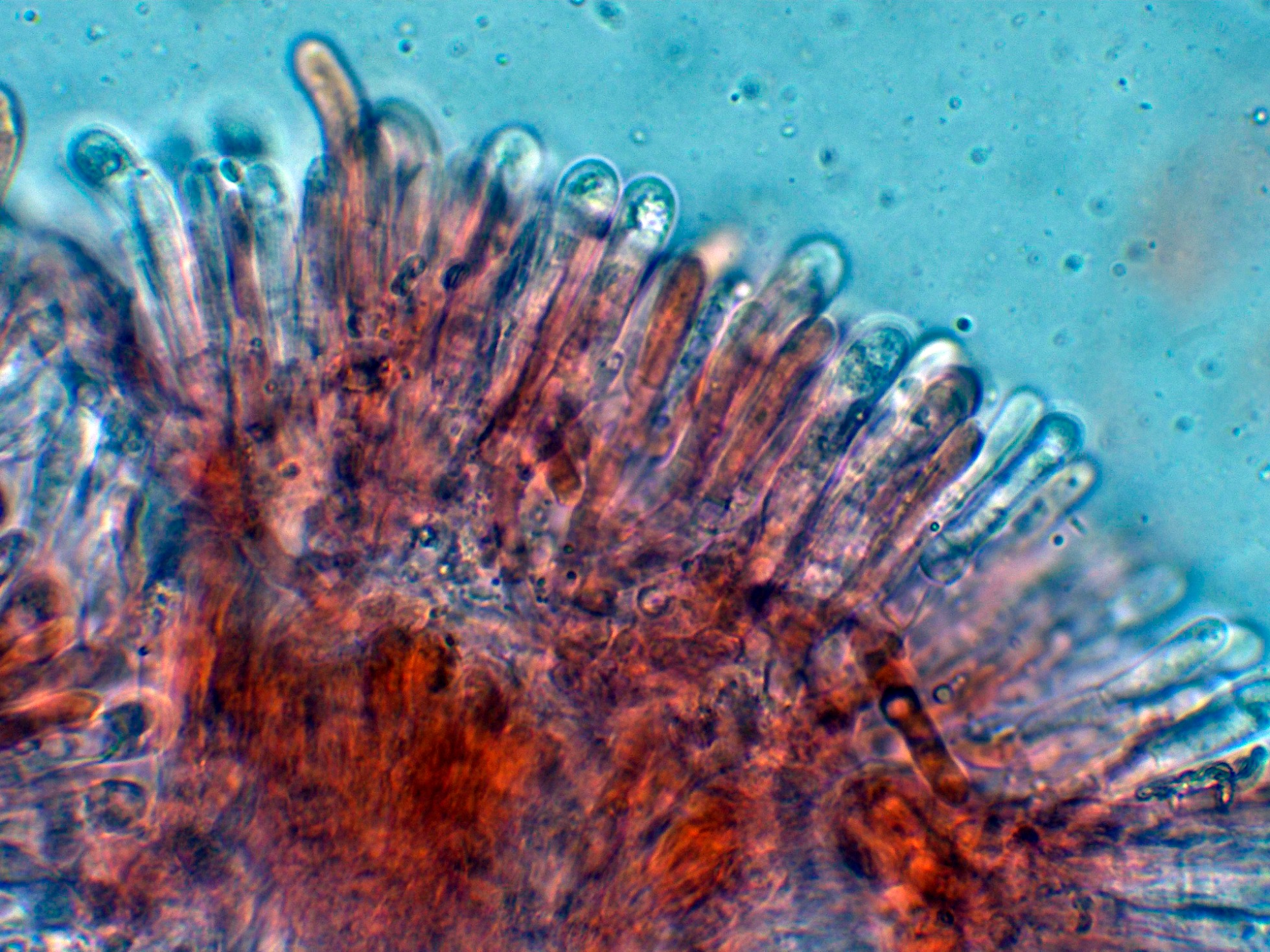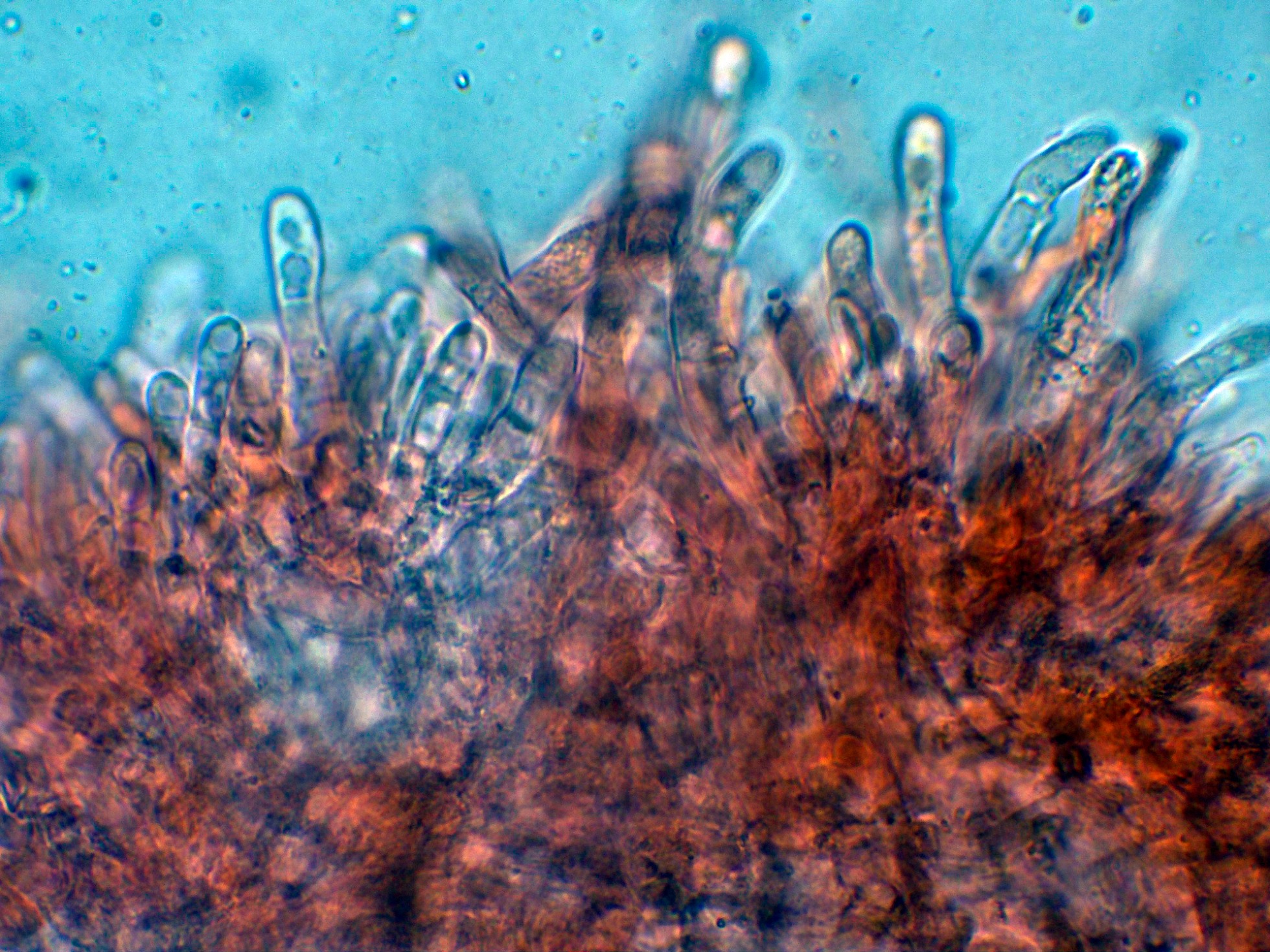 Subpellis con hifas con incrustaciones pero ya más hialinas.