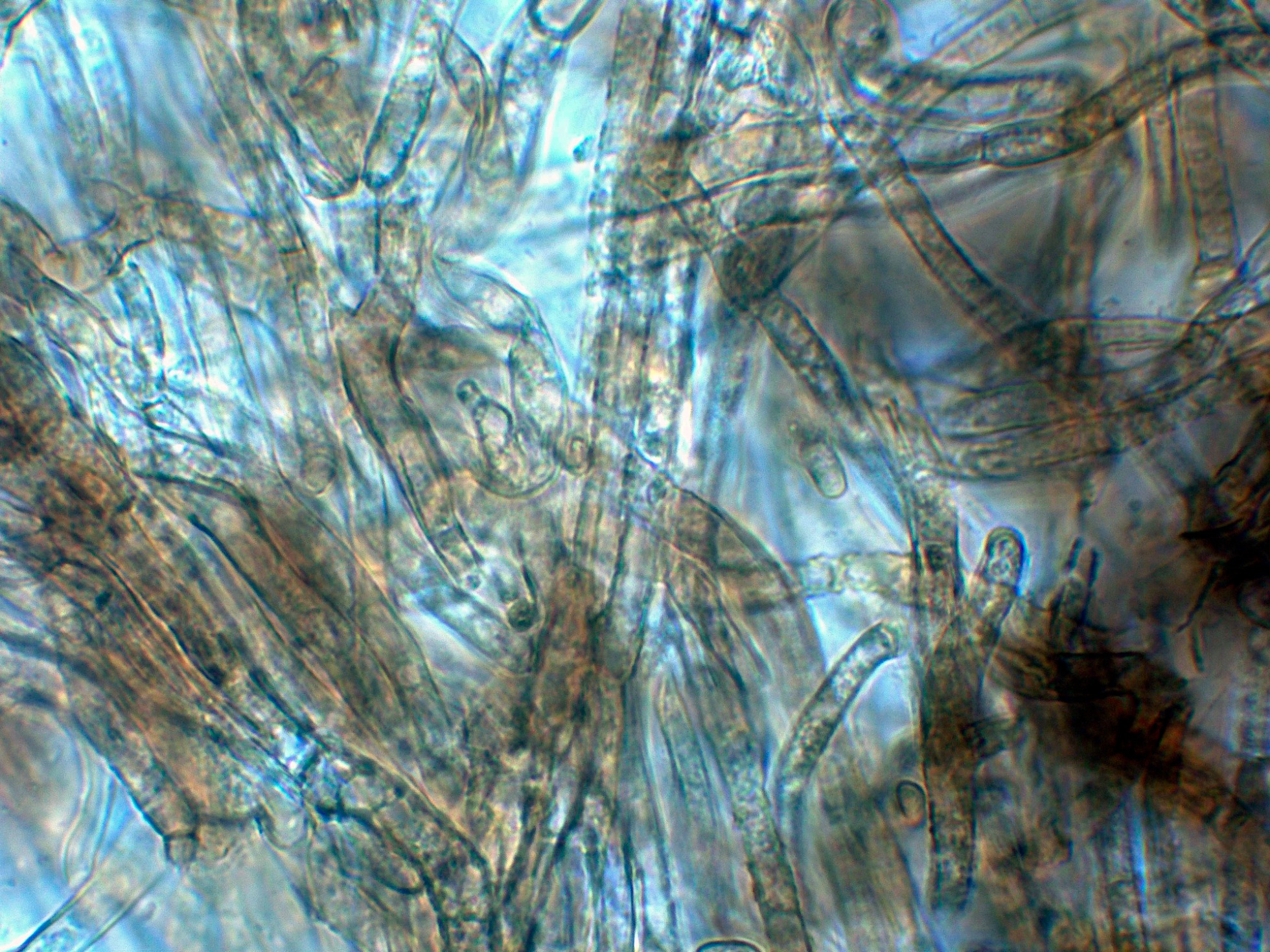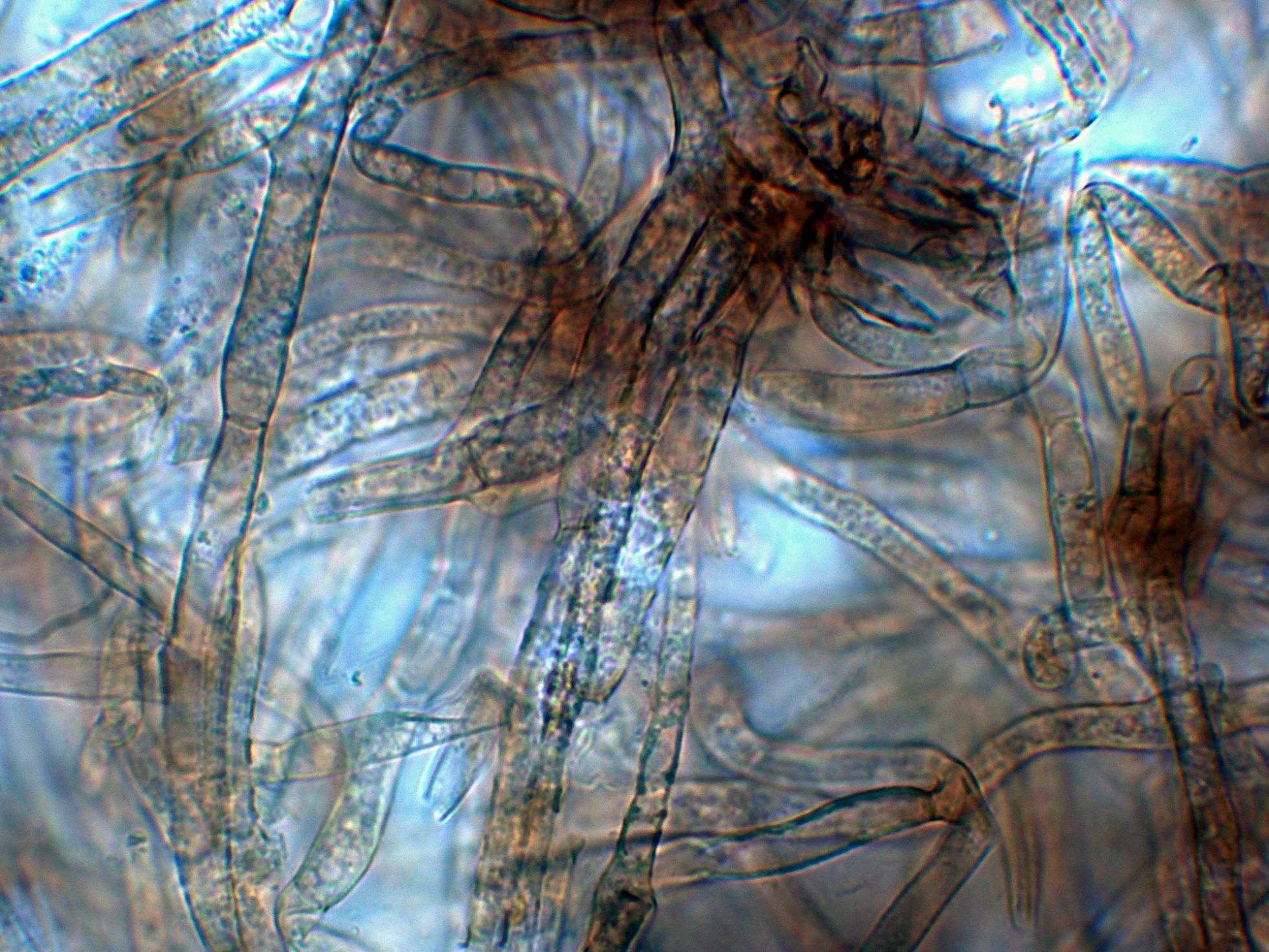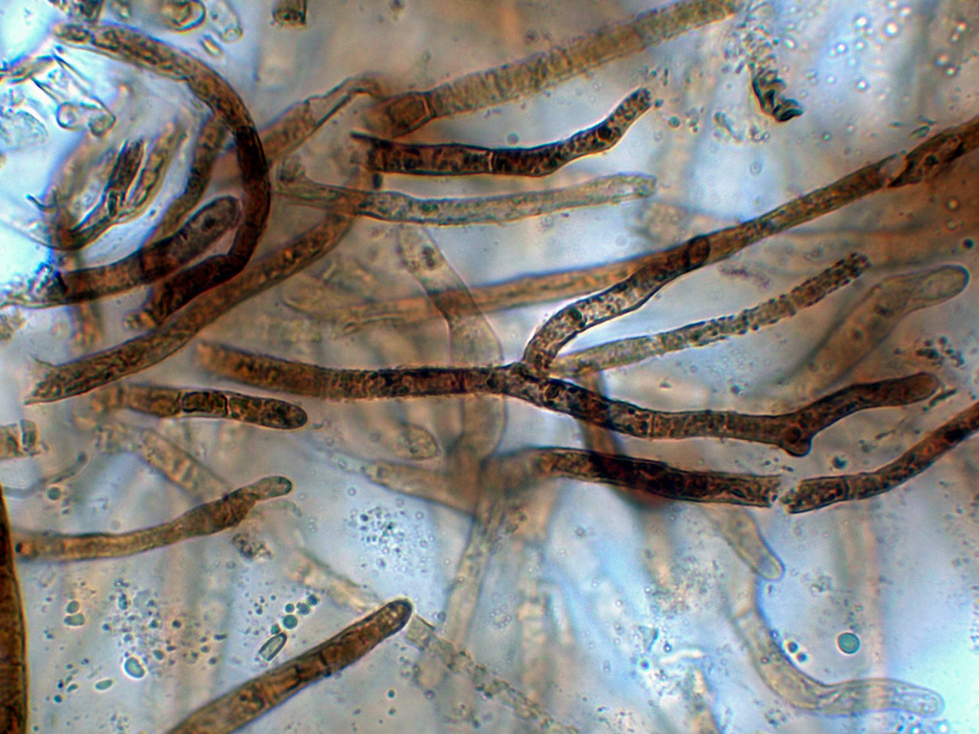 Suprapellis con hifas fuertemente pigmentadas, lagunas de ellas bifurcadas y sin fíbulas.