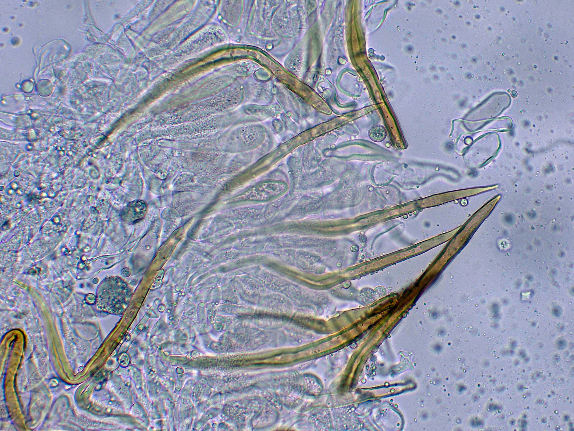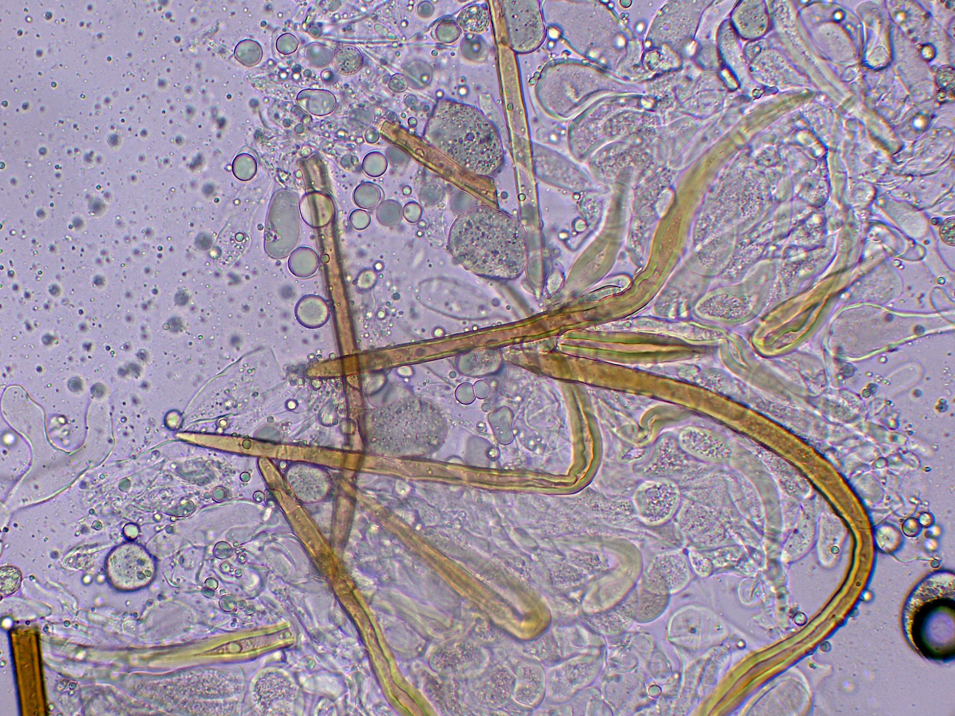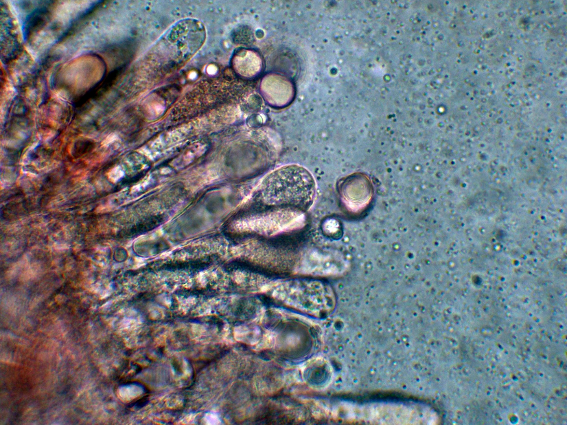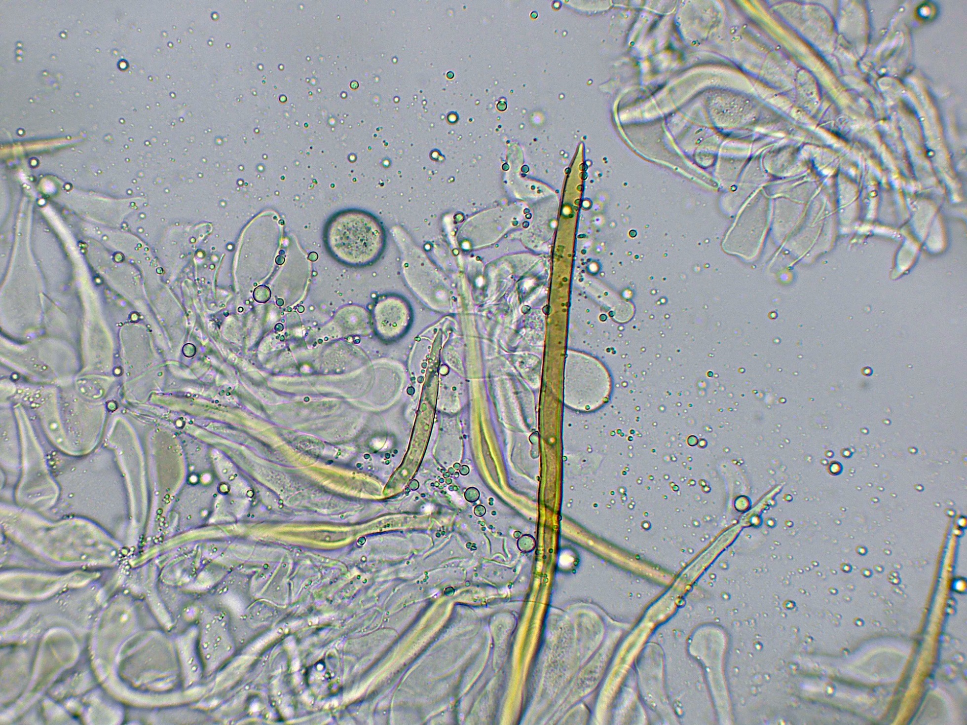 Arista laminar con solo basidios y unos pocos elementos fusiformes que se corresponderían a cistidios: