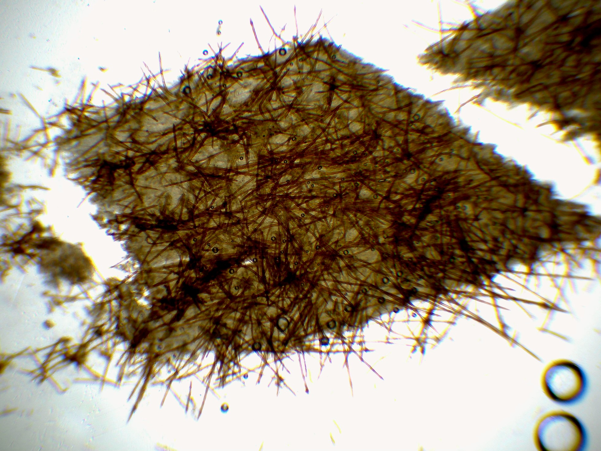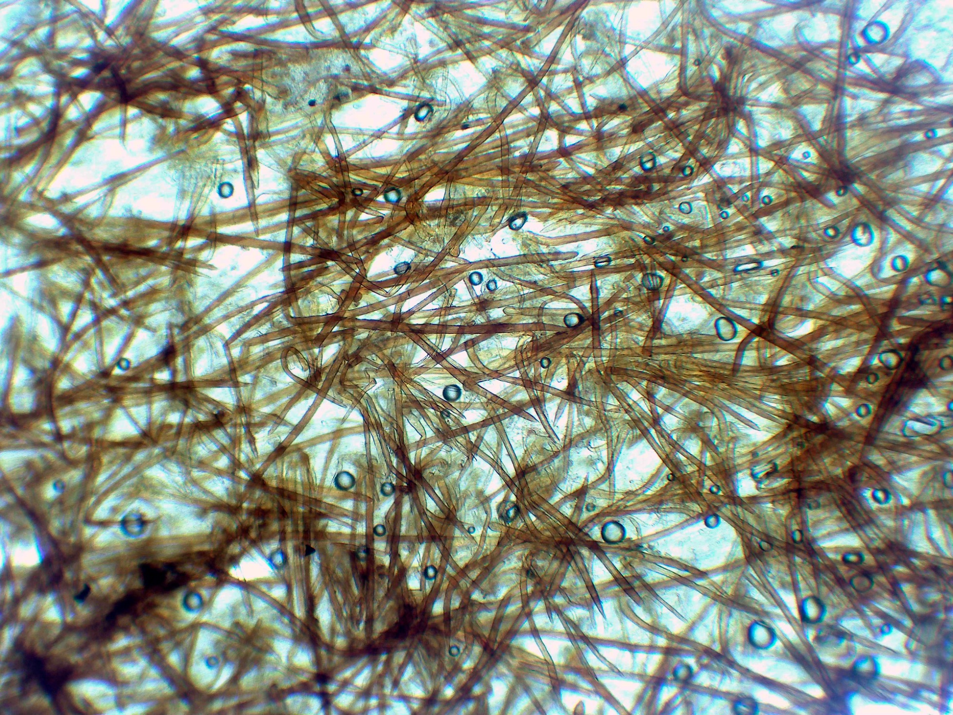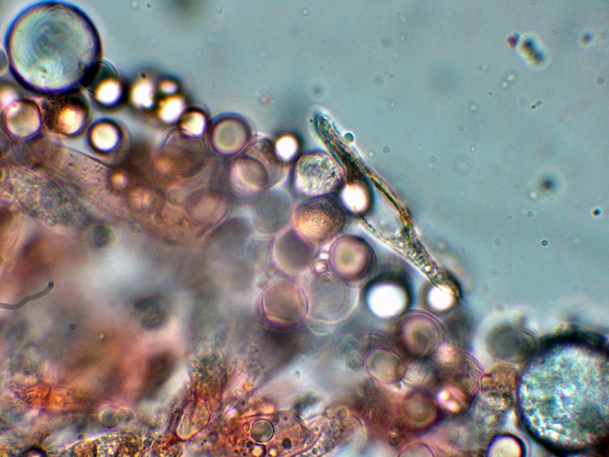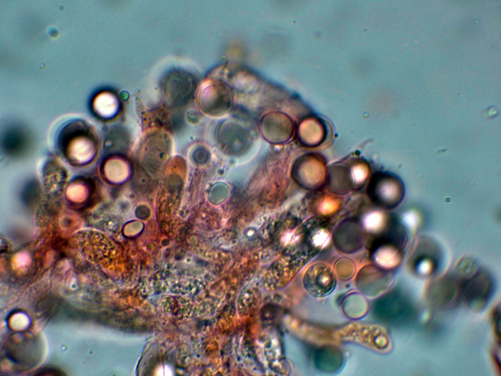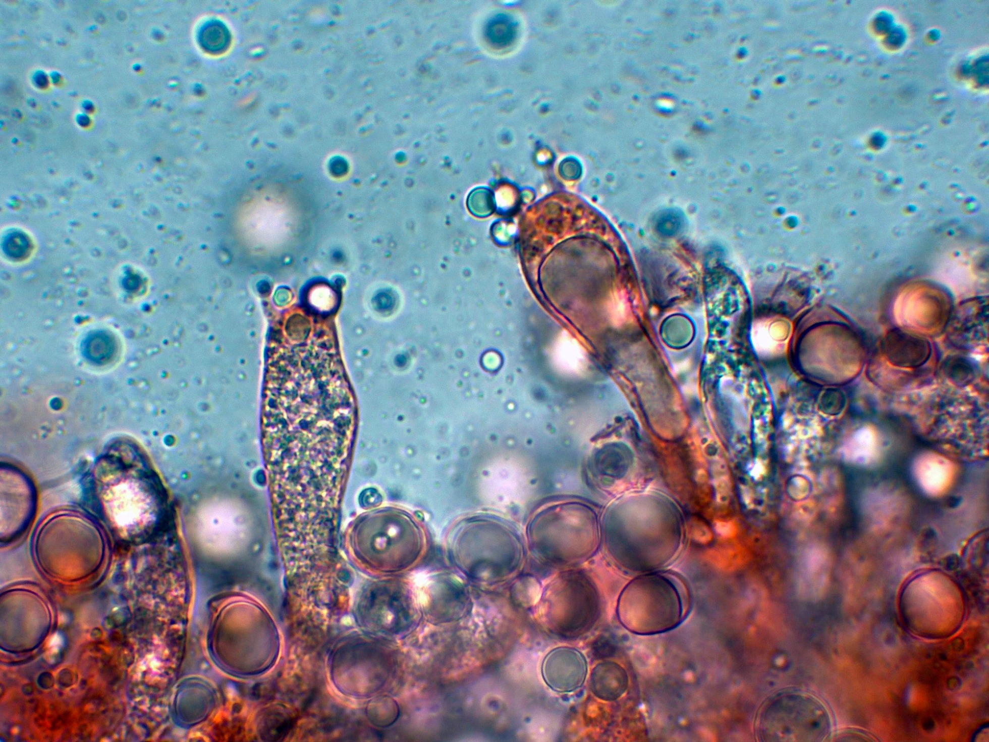 Arista laminar con solo basidios y unos pocos elementos fusiformes que se corresponderían a cistidios: