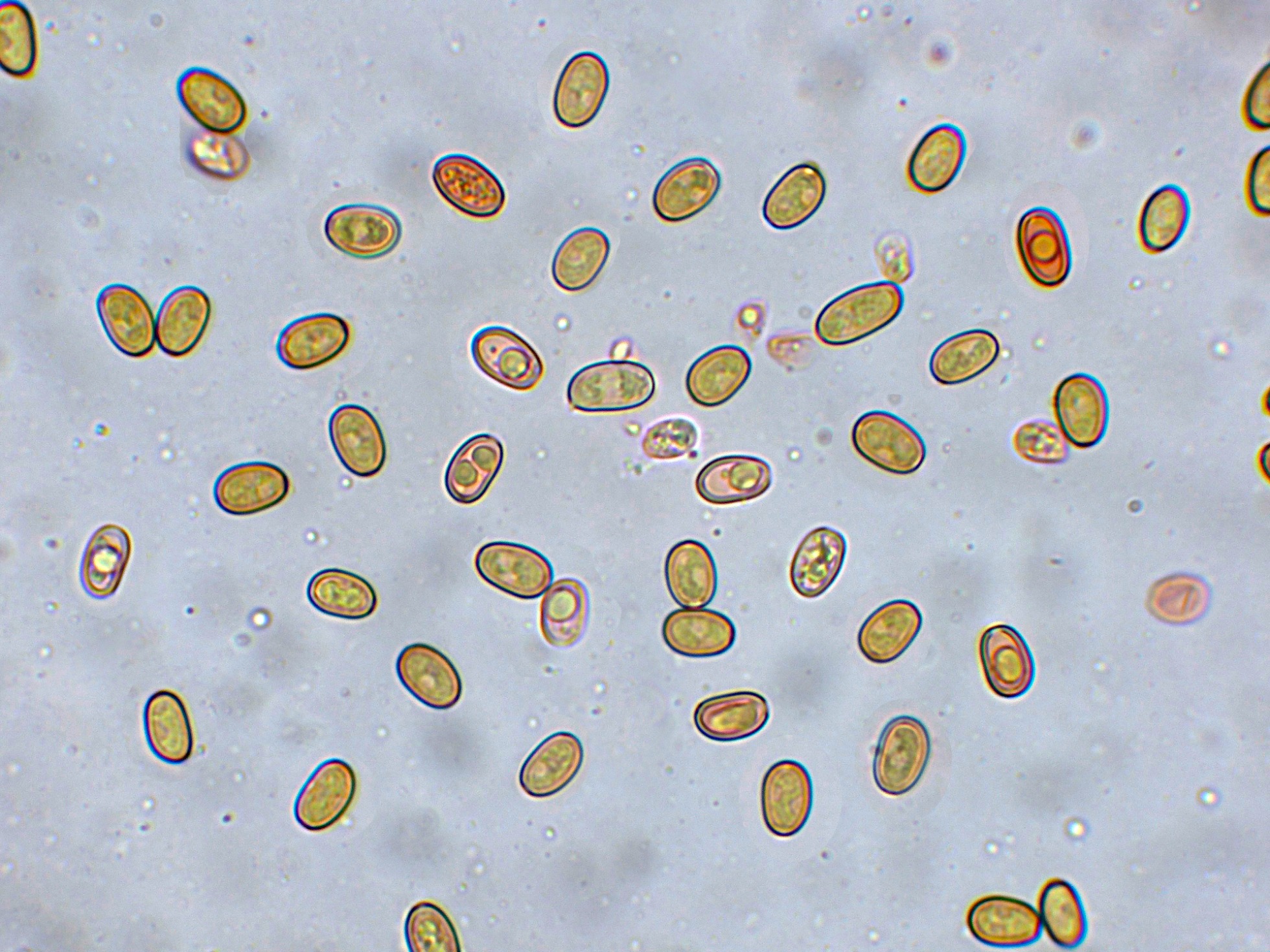 Observaciones: Determinación hecha según las Claves de Funga Nórdica en las que se indican unas medidas esporales para la Pholiota cerifera, sinonimizada con la Pholiota aurivella de 7.5-11 x 5-6.5 μm, este dato y el resto de la microscopía parecen coincidir muy bien con la especie propuesta. Una de las características de la Pholiota aurivella sería el gran tamaño de sus esporas considerando el género.