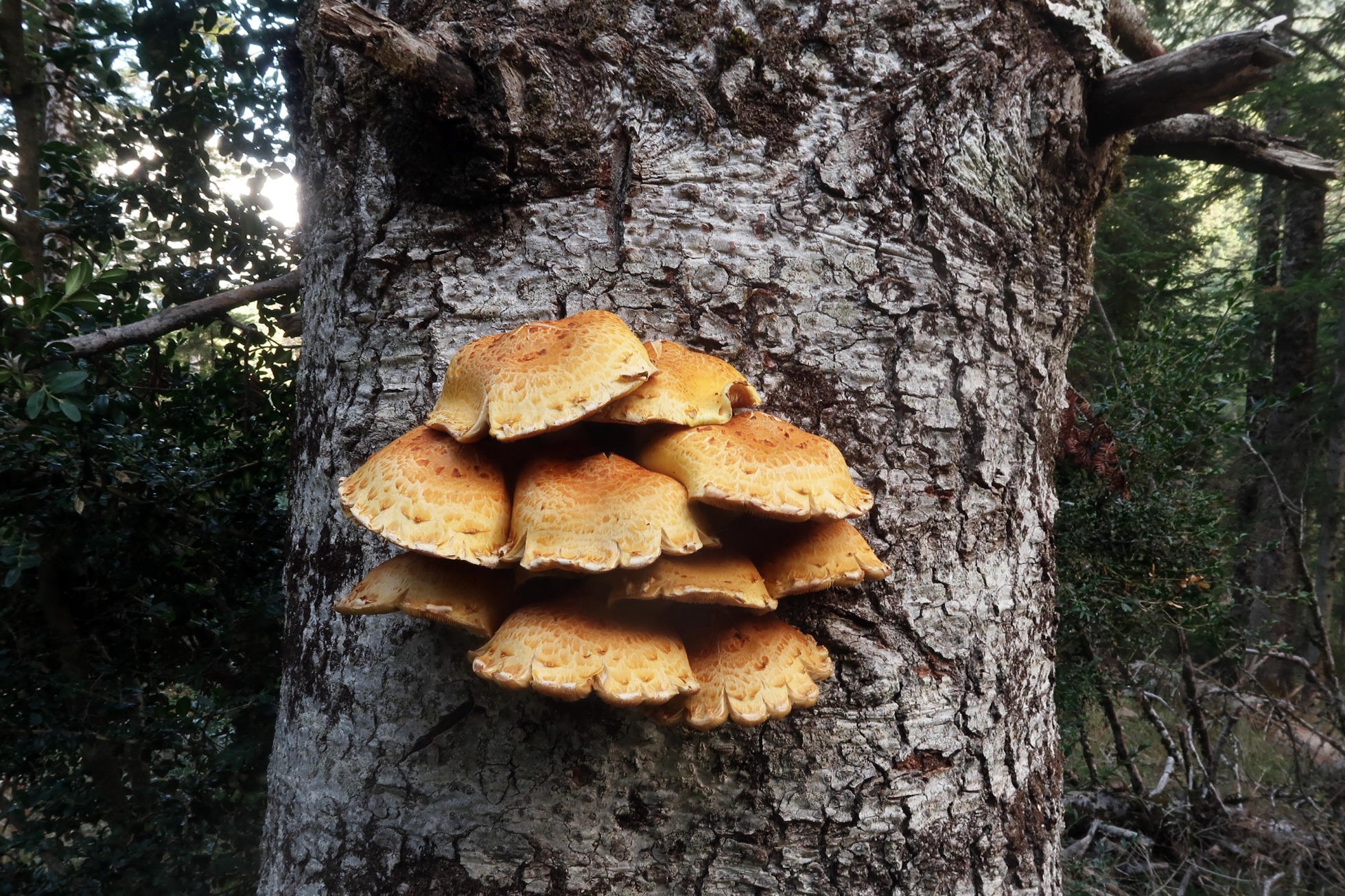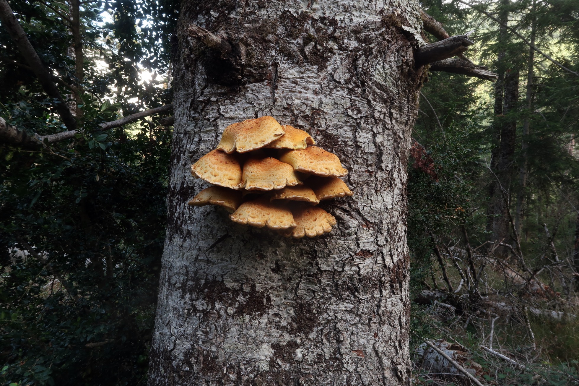 Un bello grupo de Pholiota sobre un tronco de Abies alba, fotografiados el 7 de Octubre en Fuente de Paco (Huesca).