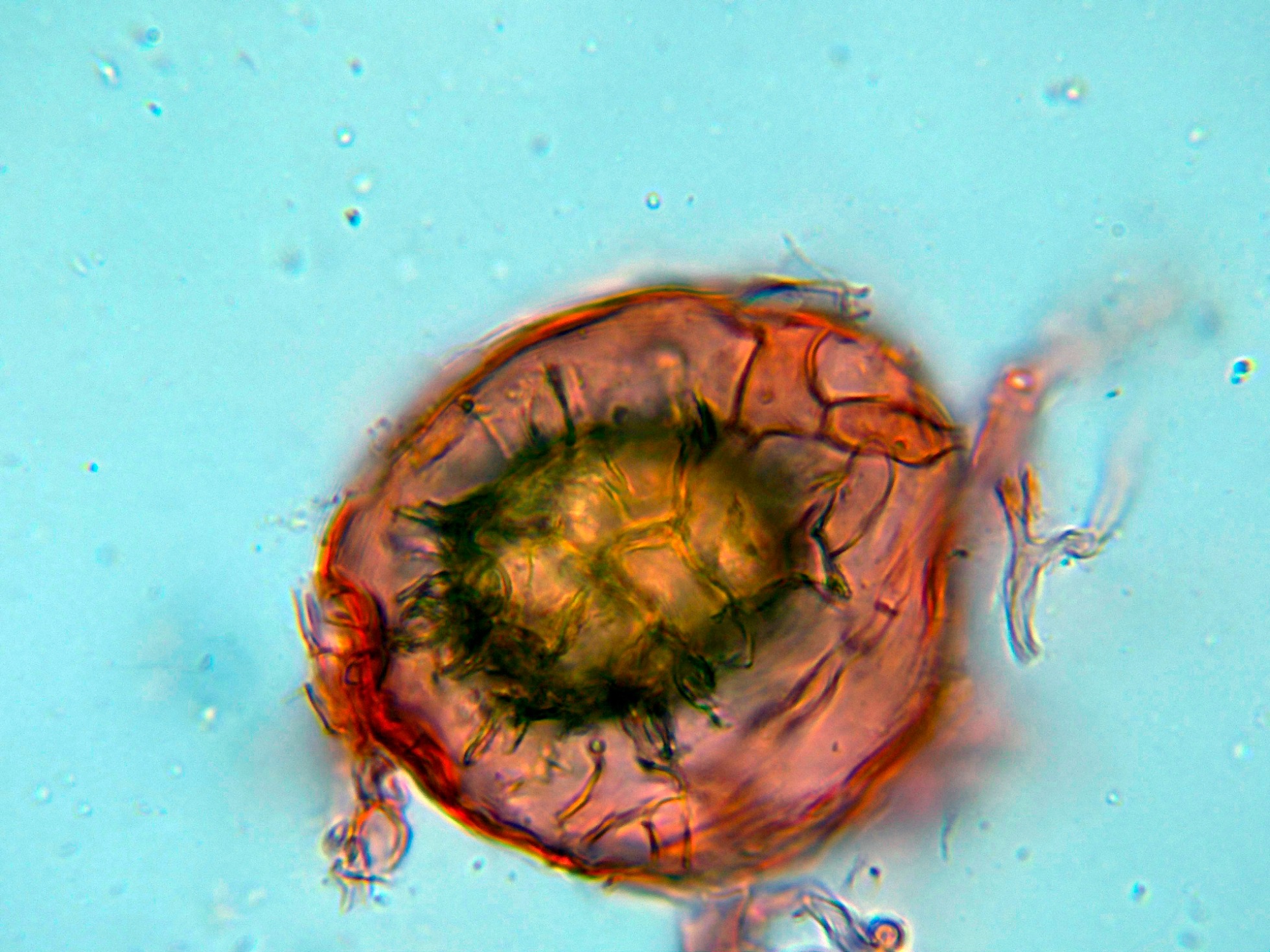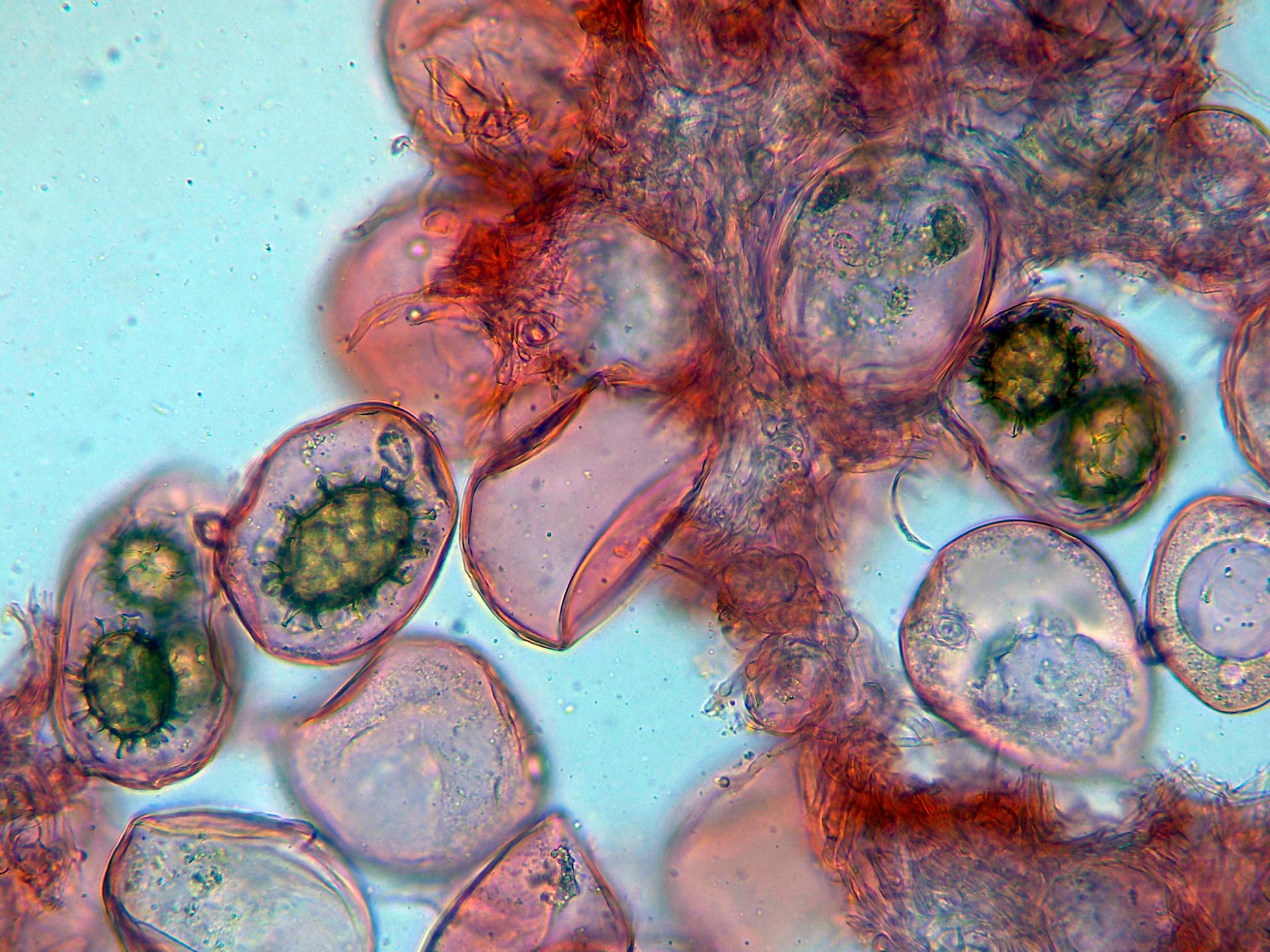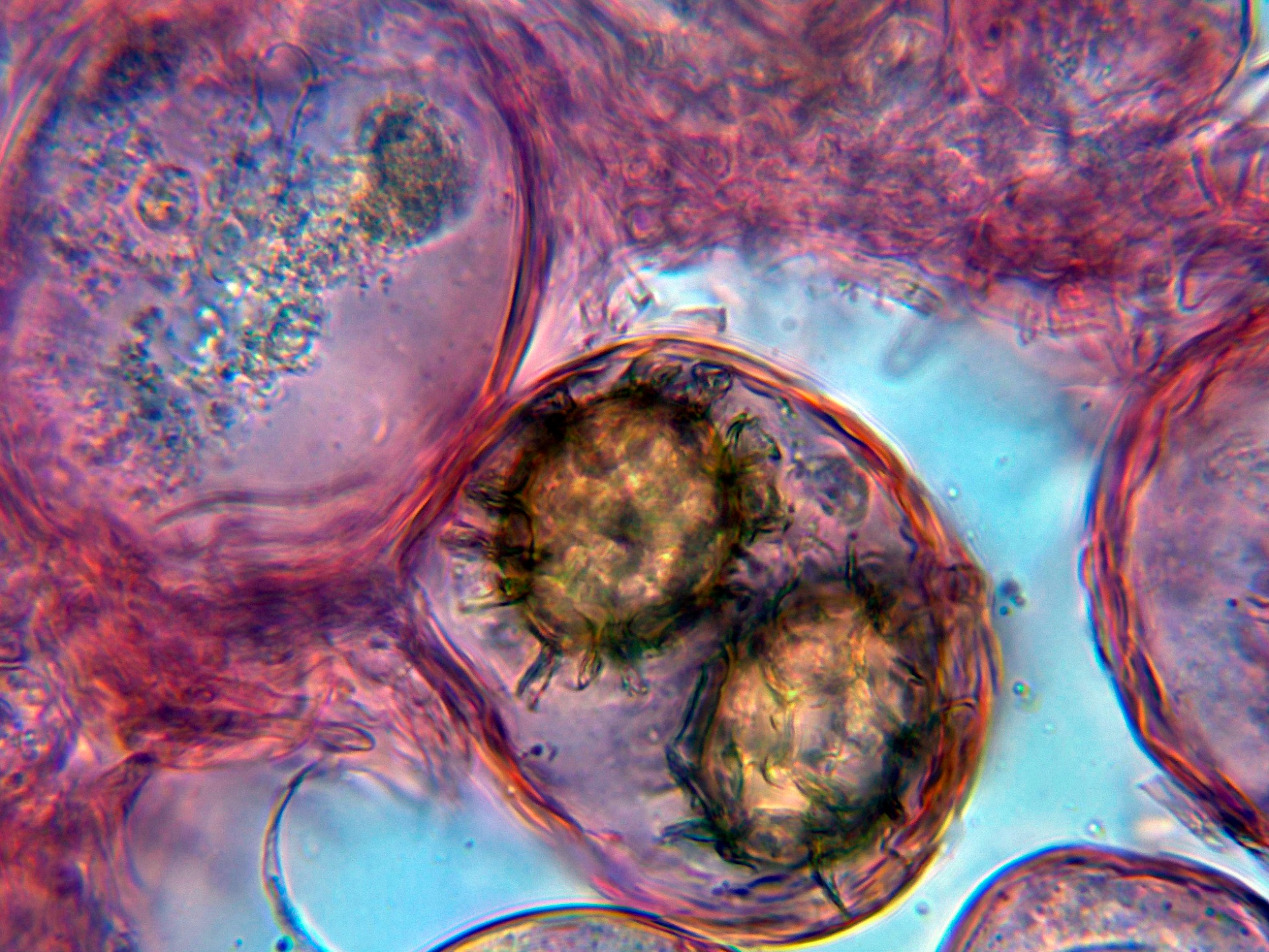 Ascos con 1, 2 o 3 esporas a 400 aumentos.
