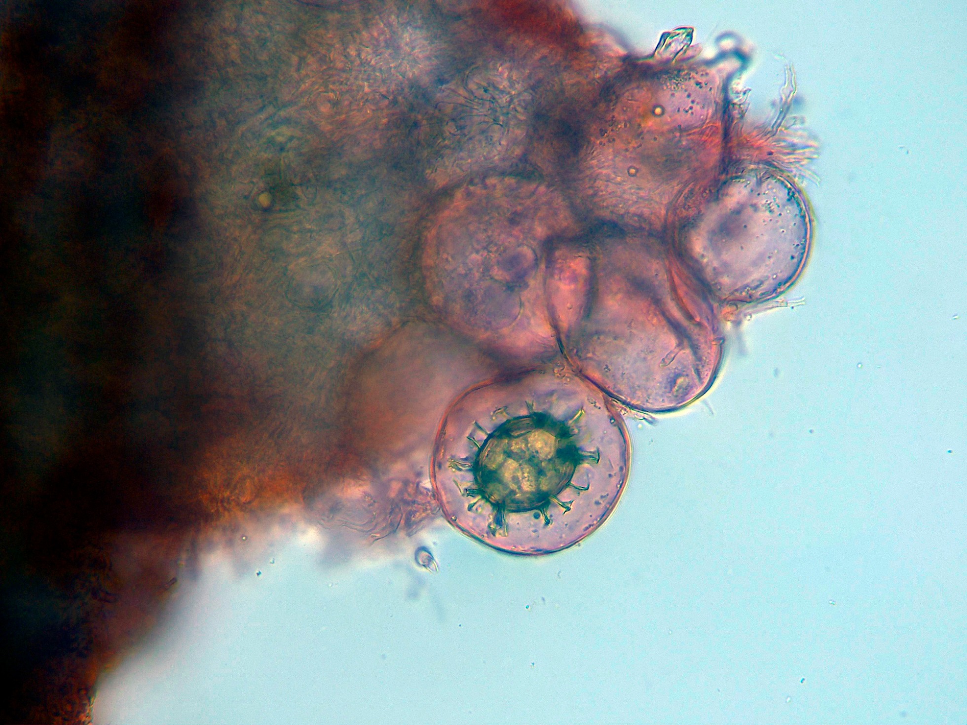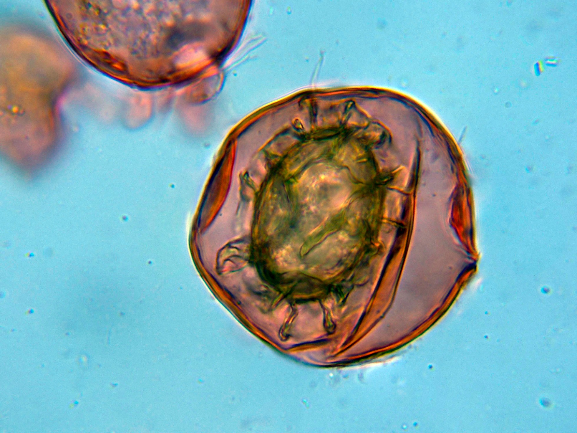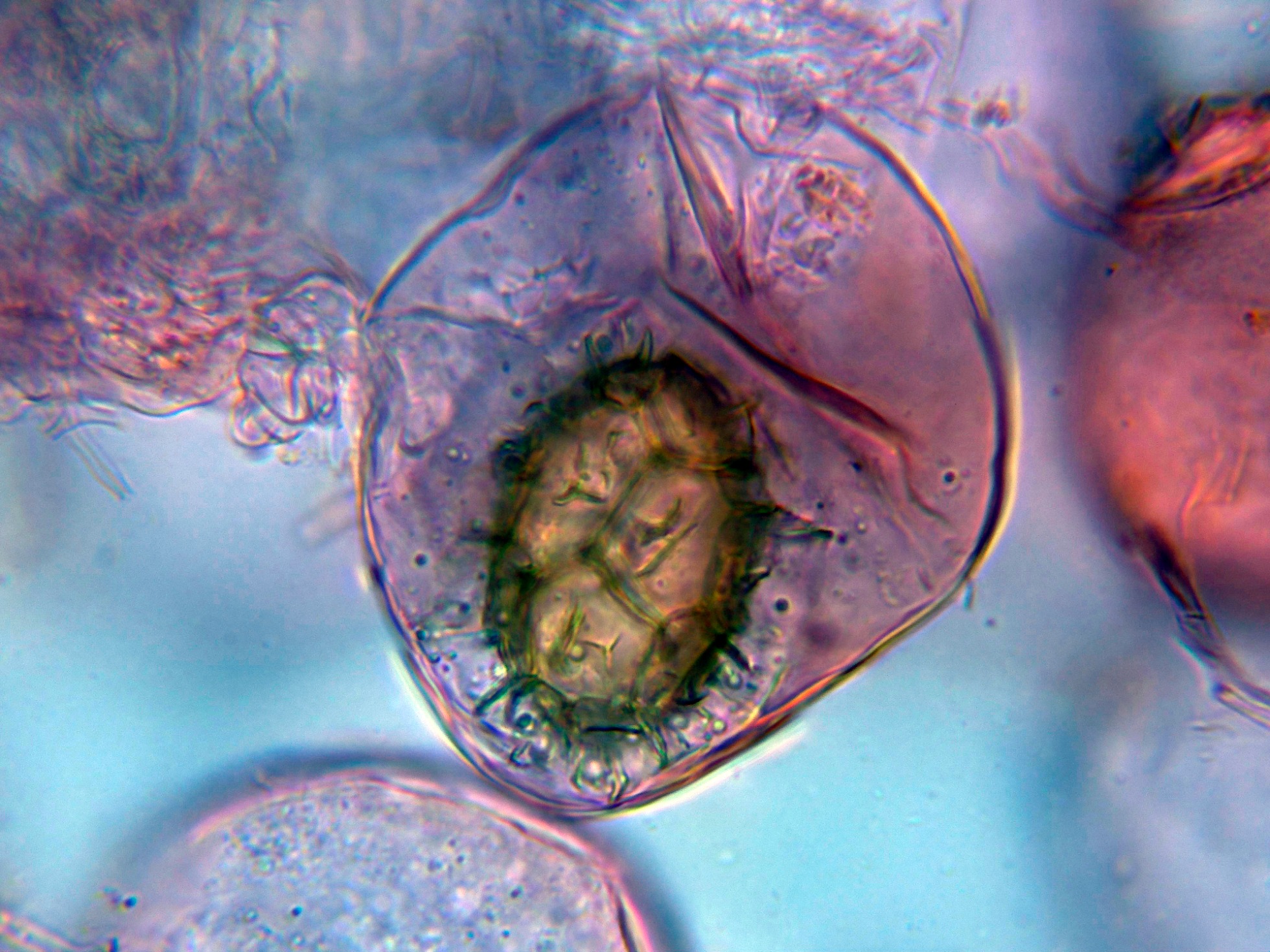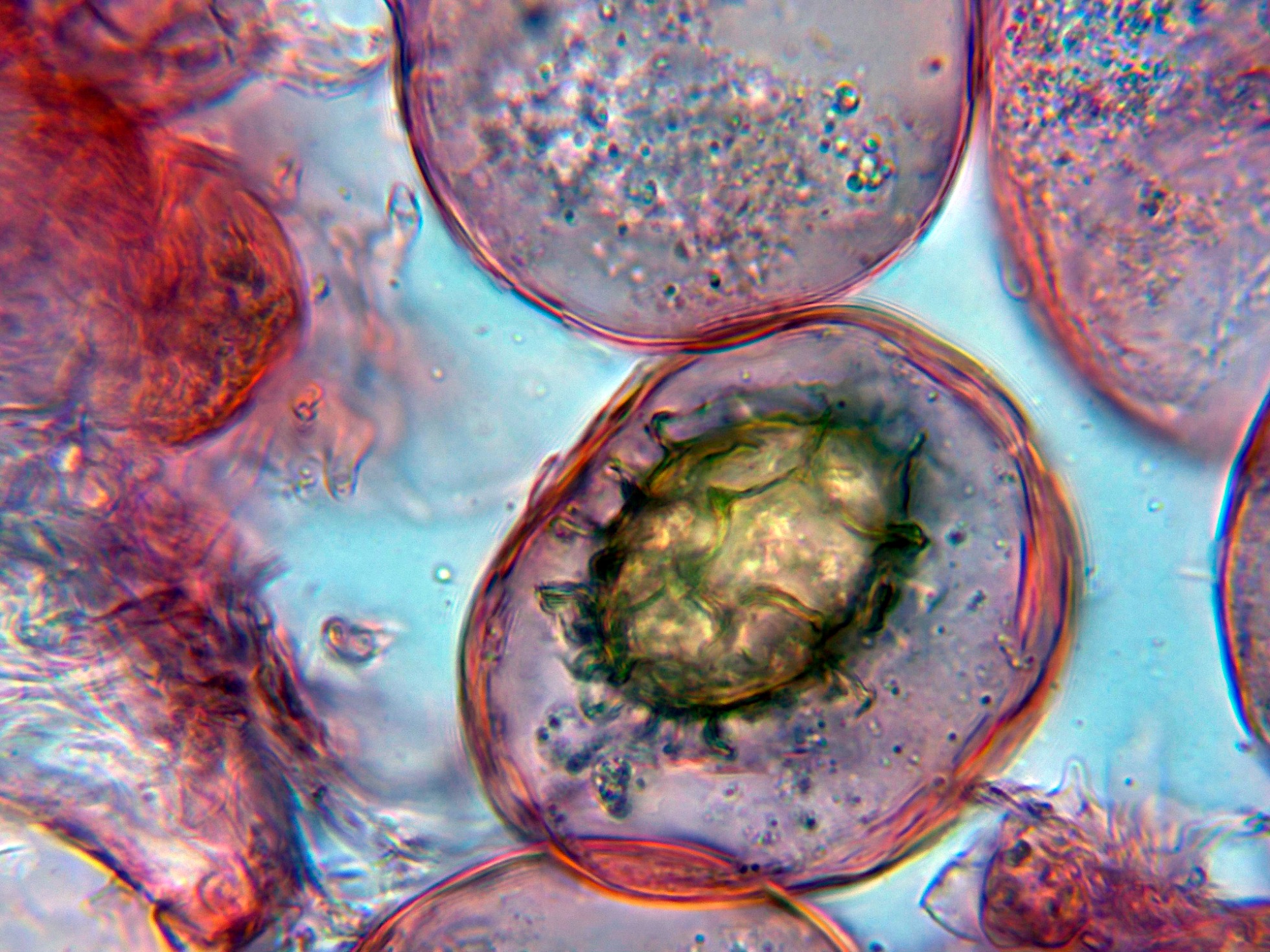 Ascos con 1, 2 o 3 esporas a 400 aumentos.