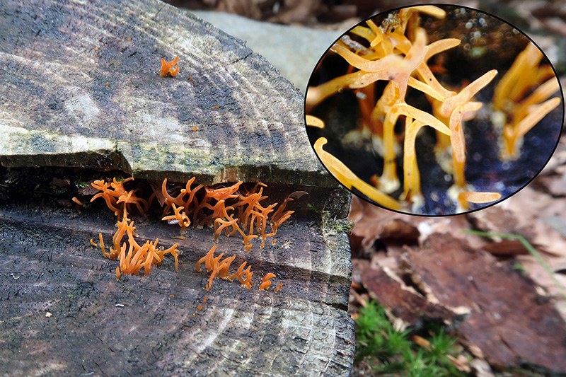 Una Calocera que sospeché de furcata, esta me la pasó un experto por el micro (yo tenía demasiado trabajo), determinó que sin duda se trataba de la Calocera cornea .