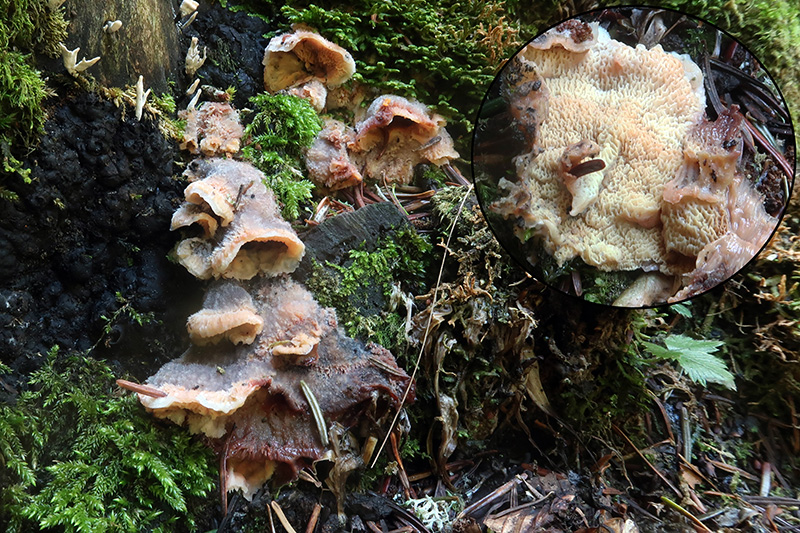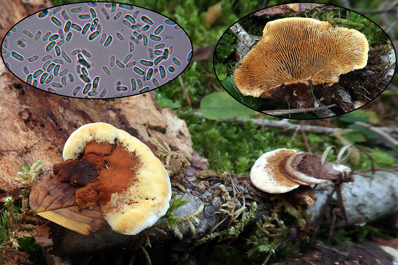 Un Gloeophyllum bajo abetos, pensé en el Gloeophyllum abietinum del que no tengo la micro, pero me salió el abundante Gloeophyllum sepiarium