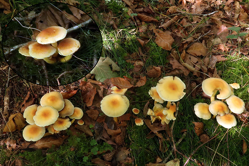 Apareciendo por cualquier parte y de manera abundante, el Hypholoma fasciculare.