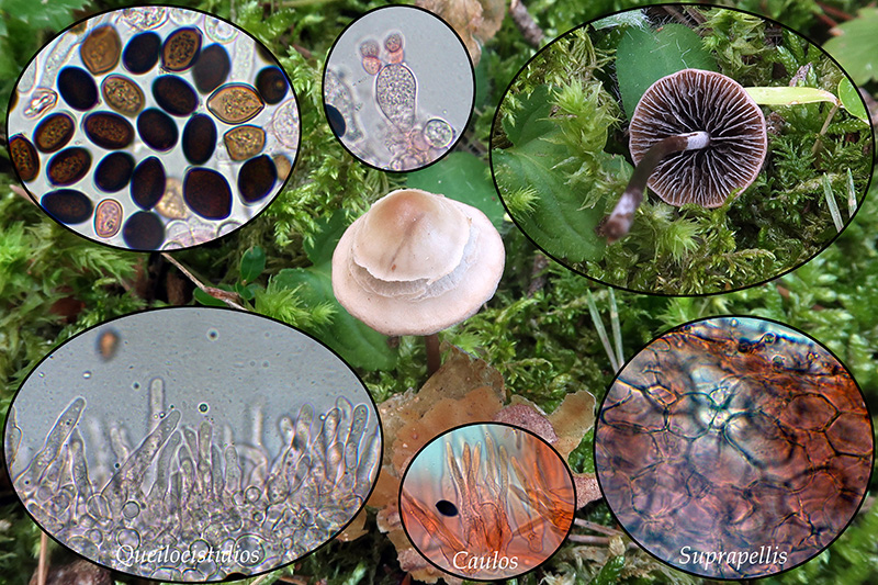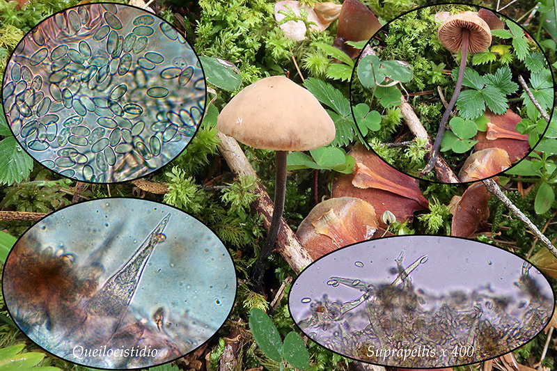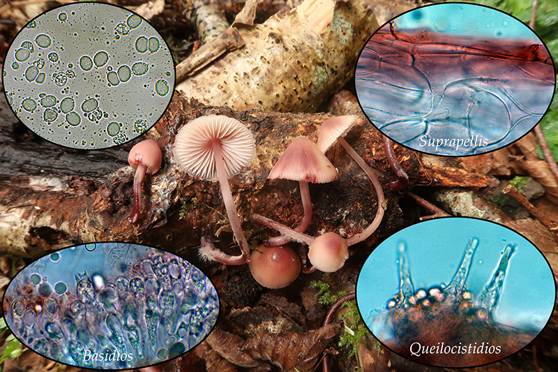 Una Mycena sangrante que por unos momentos pensamos en Mycena sanguinolenta, el micro determinó que se trataba una vez más de la Mycena haematopus.