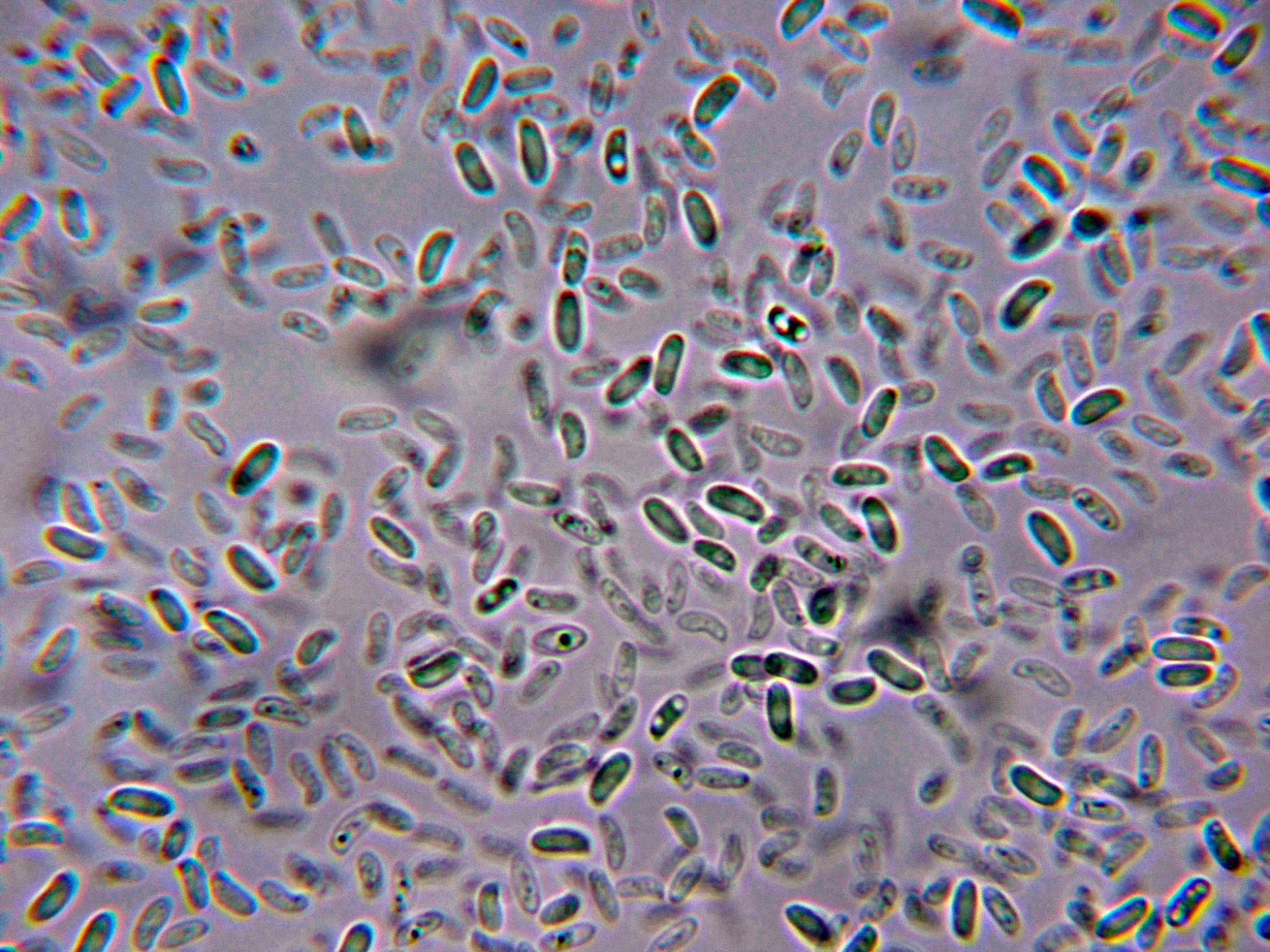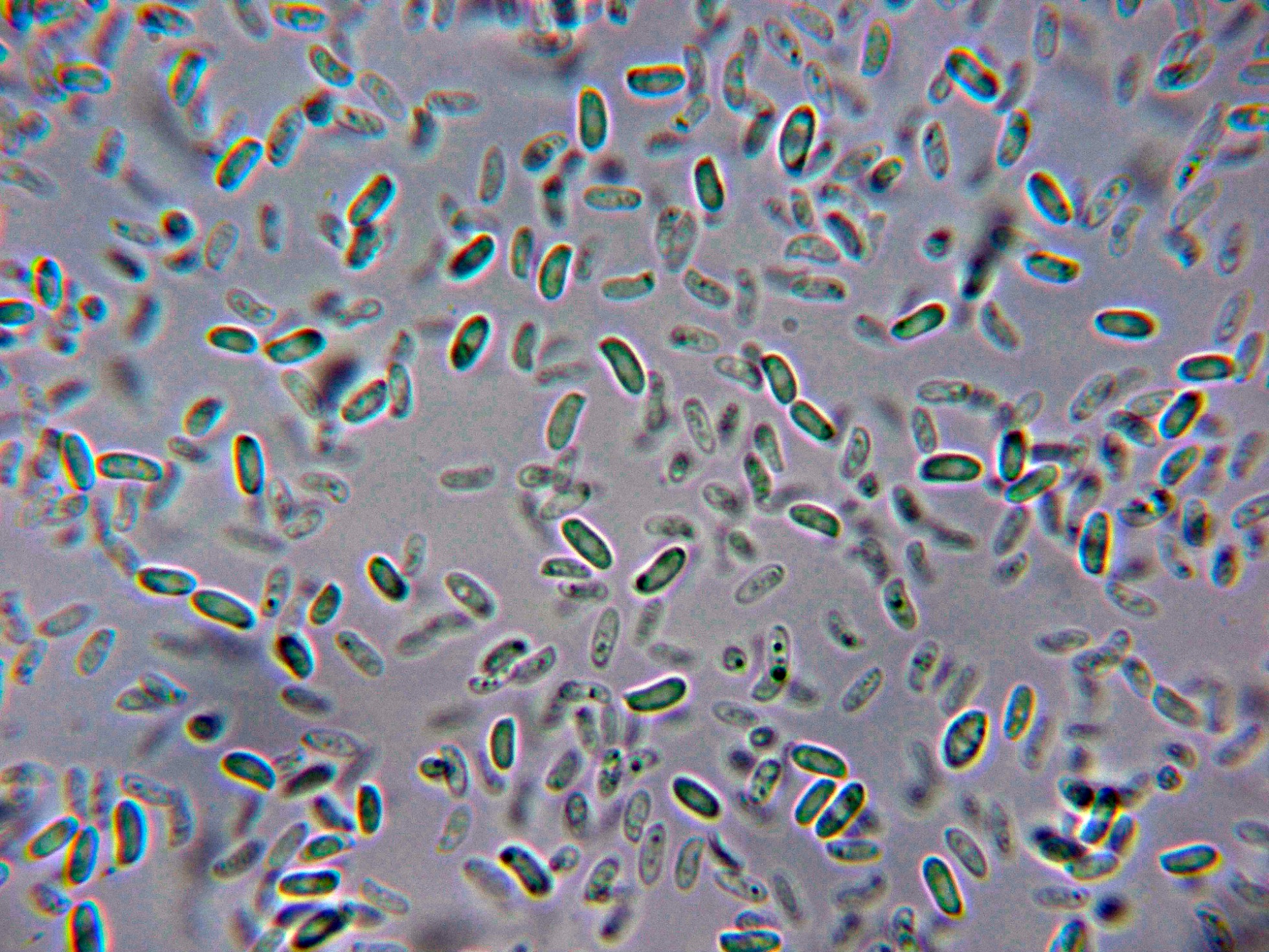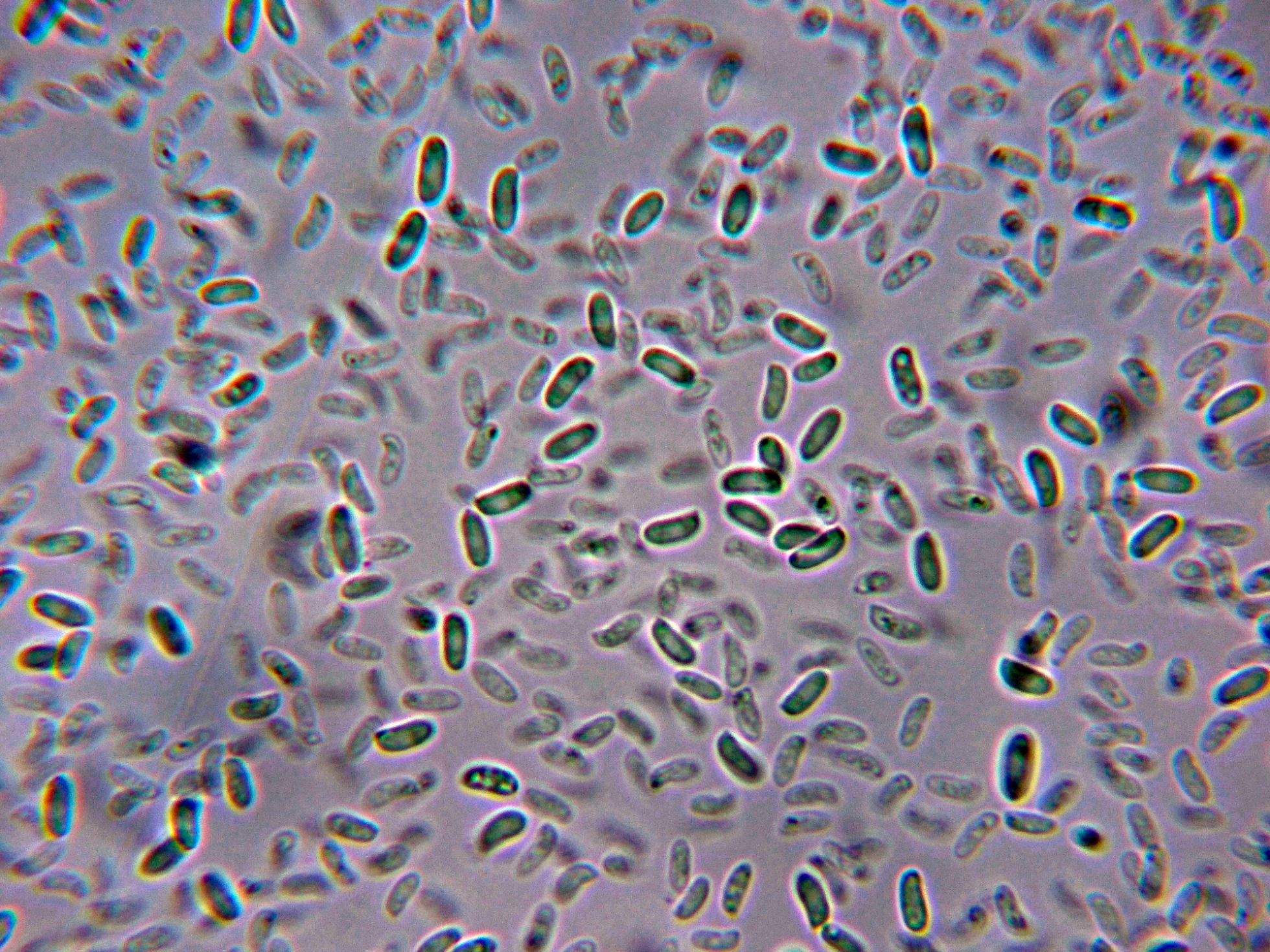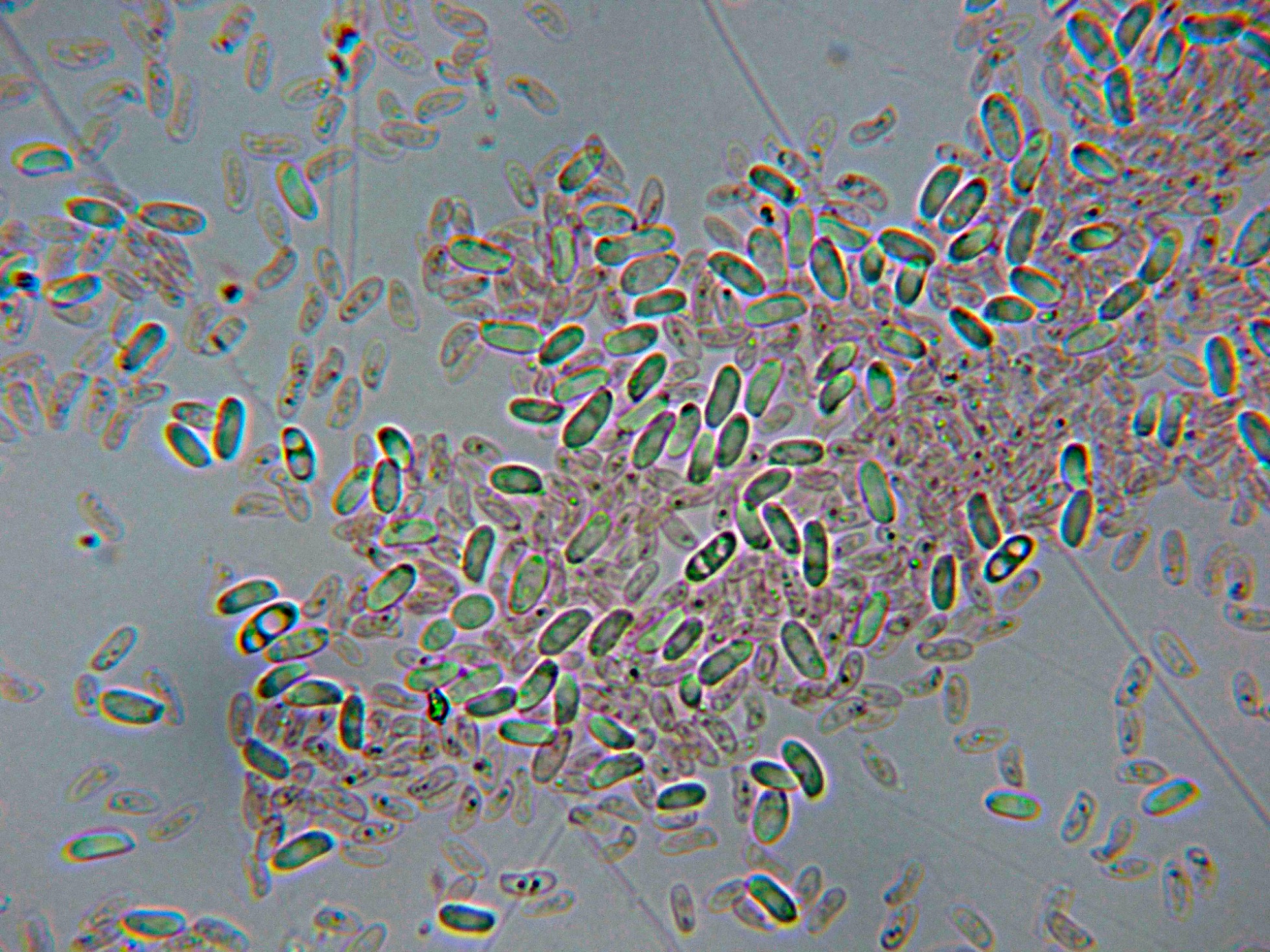 Esporas con gran tendencia a agruparse en todos los medios, lo que hace extremadamente difícil el sacar una imágen buena de las mismas.