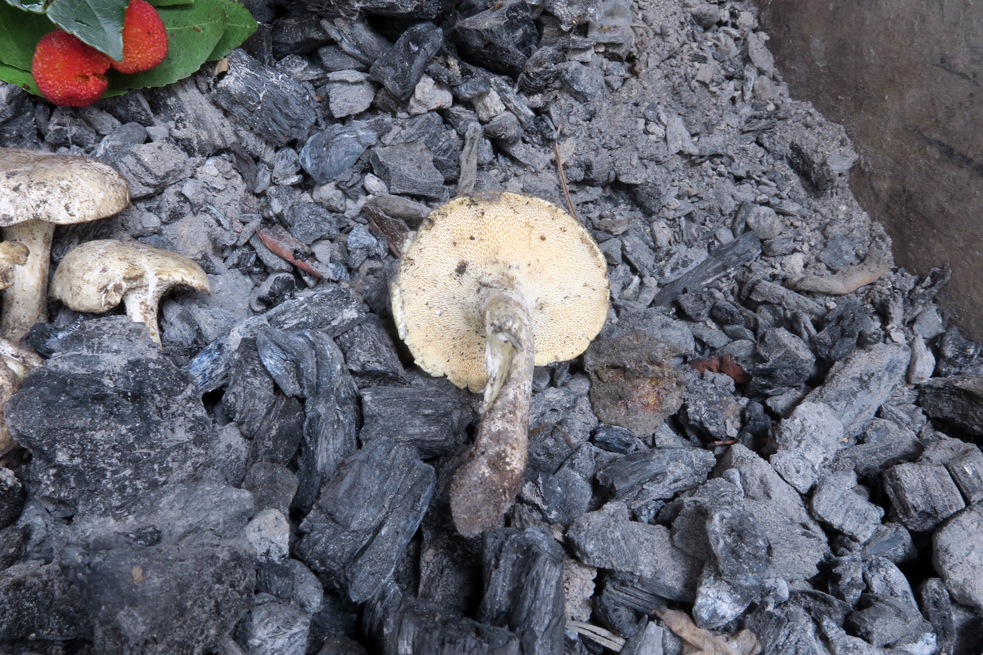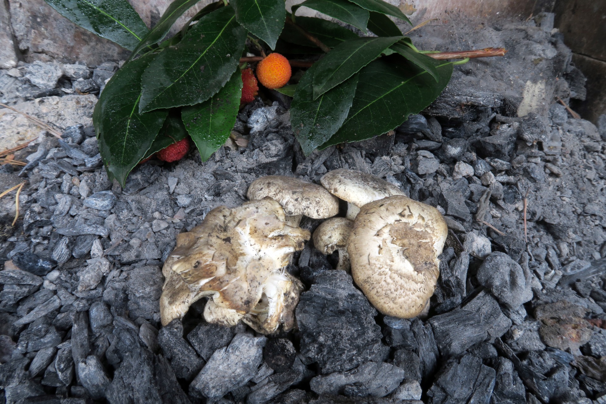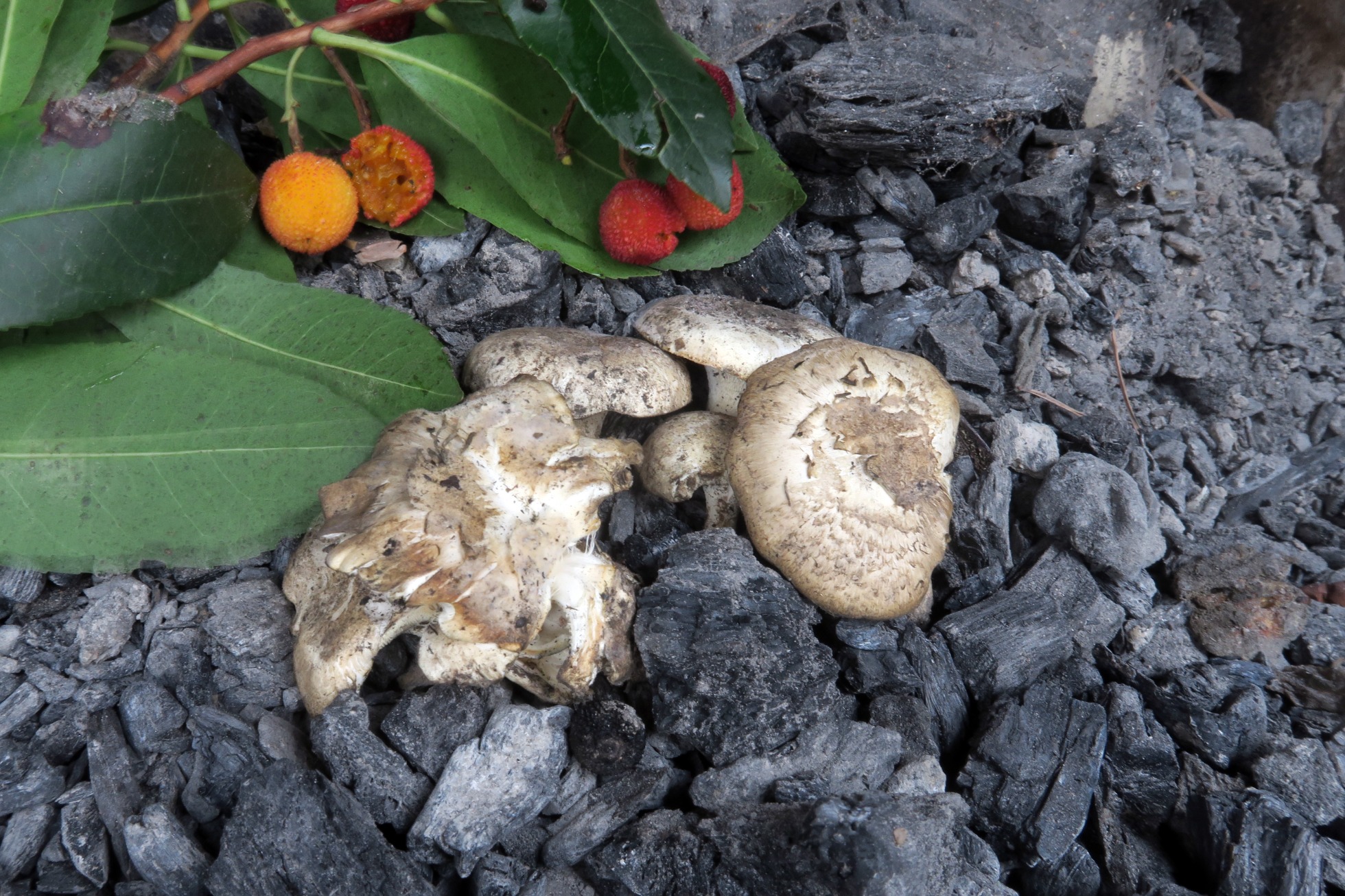Sobre troncos y restos quemados de Arbustus unedo, denominado comúnmente como "madroño".