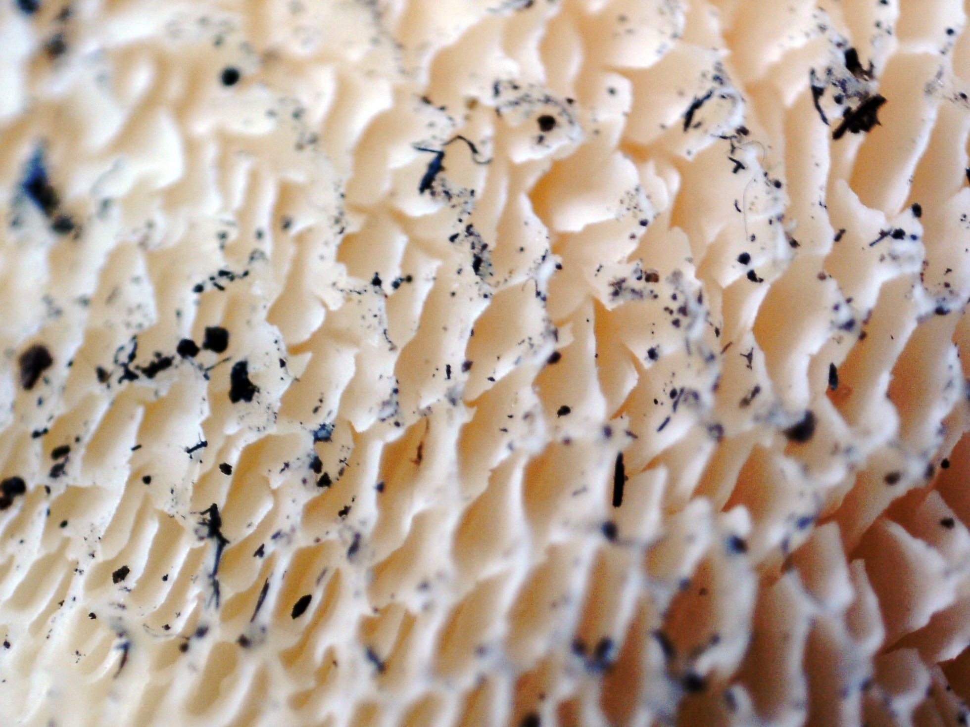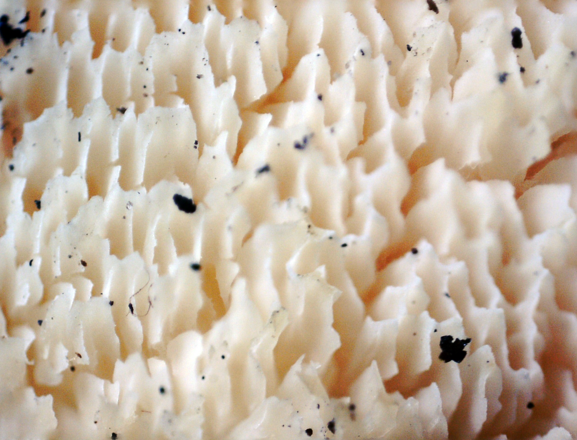 La parte alta del pie al ser tan decurrentes los poros, actuaba a modo de himenio, un par de imágenes de la superficie de la parte alta del pie: